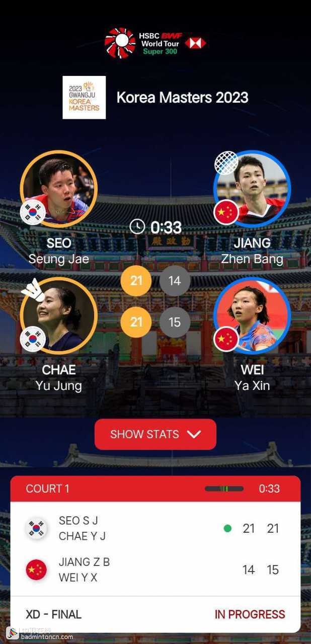 1/16决赛:21-17、21-11 崔贤范/尹玟娥
