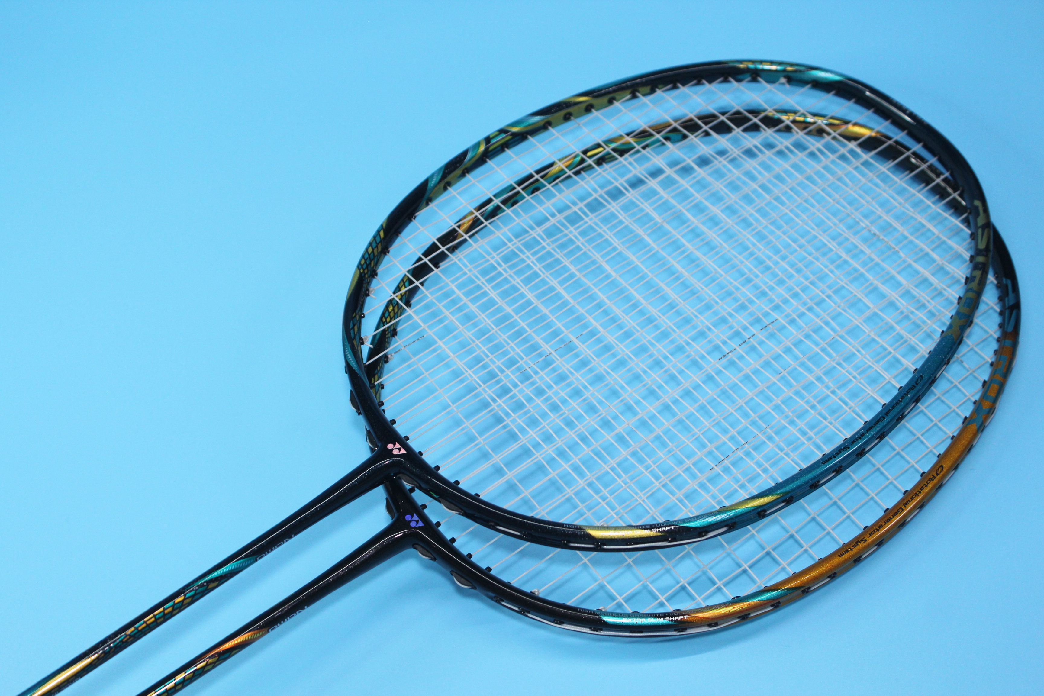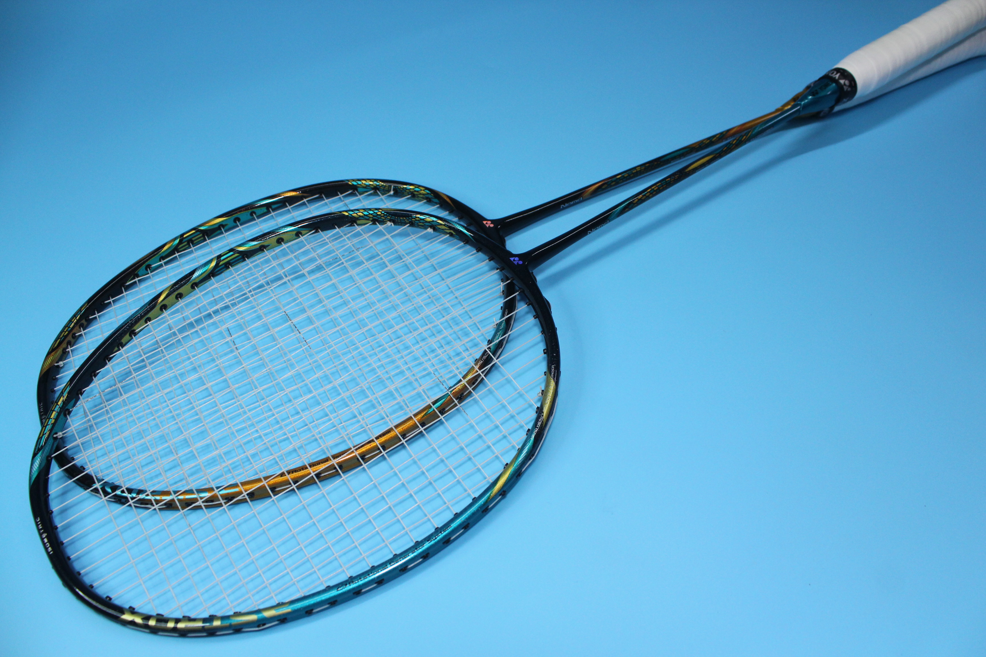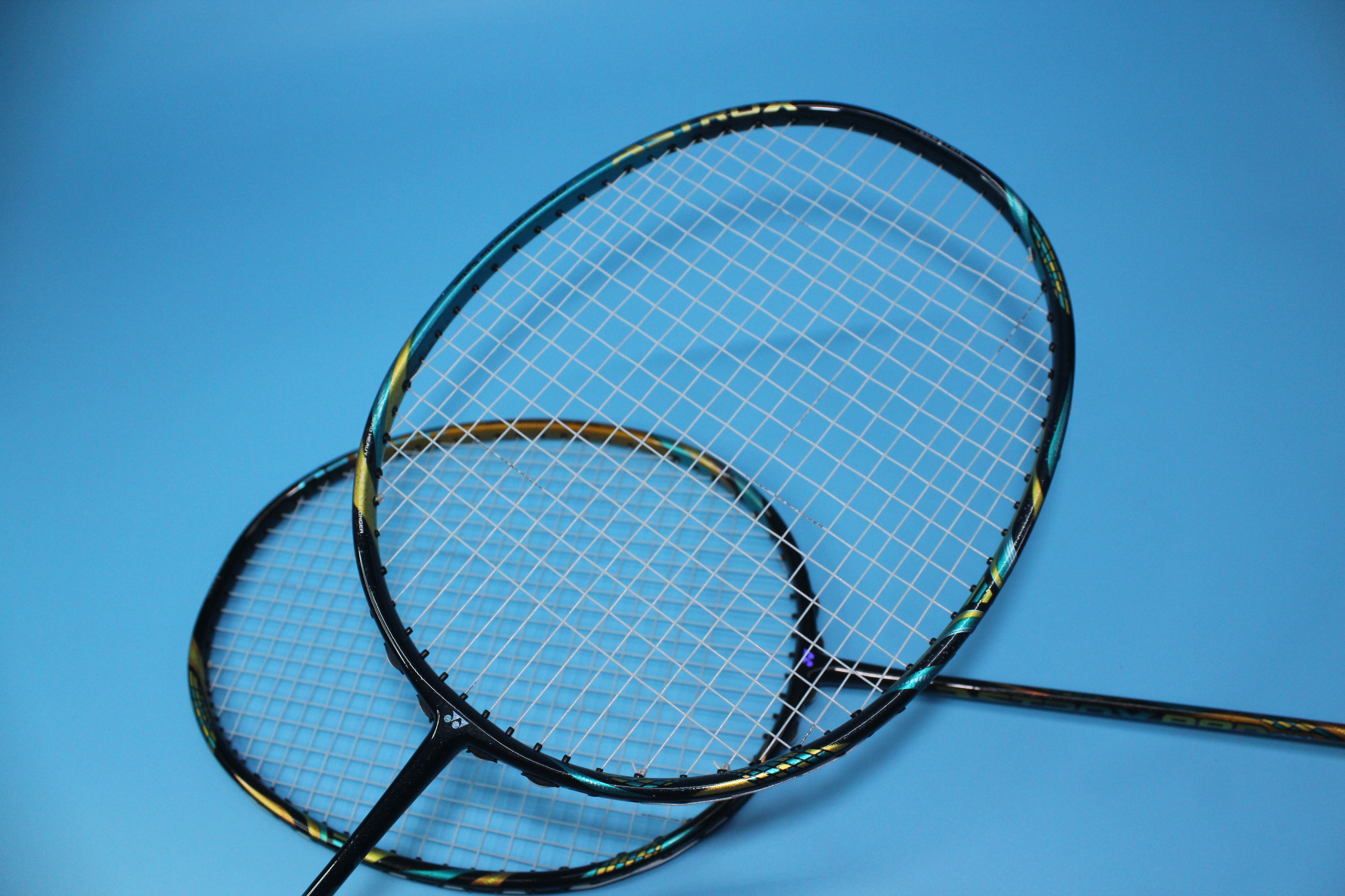 两支球拍均采用星空黑的烤漆为底色。 以活泼灵动的青绿来作为分工前场的主打灵动组织进攻的AX88SPRO再好不过了, 而以雍容华贵的黄金作为担任后场的稳定输出一锤定音的AX88DPRO也合情合理。