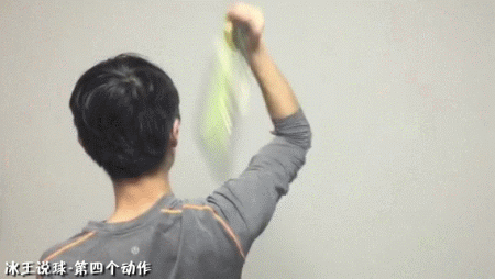 2)摆肩砸地 在身体未完全转正时,提前启动鞭打发力,摆动持拍肩部参与鞭打过程,大臂配合完成下砸式挥拍动作,是挥拍启动时间上的加速,同时肩部的摆动一定程度增加了击球前的挥拍加速,因动作与大力砸地板神似可称为砸地发力,属于挥拍后期的加速,是用于快杀时的进阶动作。