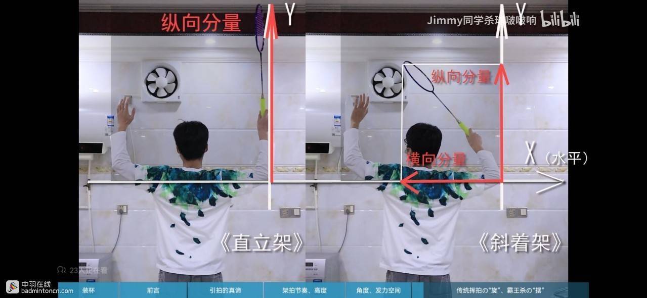 【温馨提醒!在霸王杀架拍中,由于小臂也是直立摆放的,那么这个纵向分量就既包括小臂,也包括球拍,所以,小臂也是有后摆的,只是肩膀的灵活度没有手腕灵活度高,导致小臂后摆幅度没有手腕大罢了。】