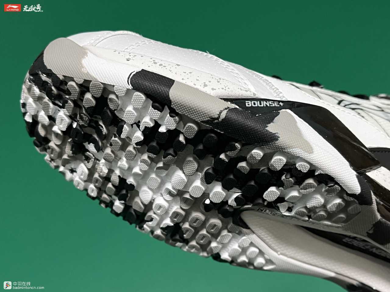 在中底部分,无敌号ACE雪地迷彩采用前掌“BOUNSE+”和后掌“LNCLOUD”李宁云的搭配。