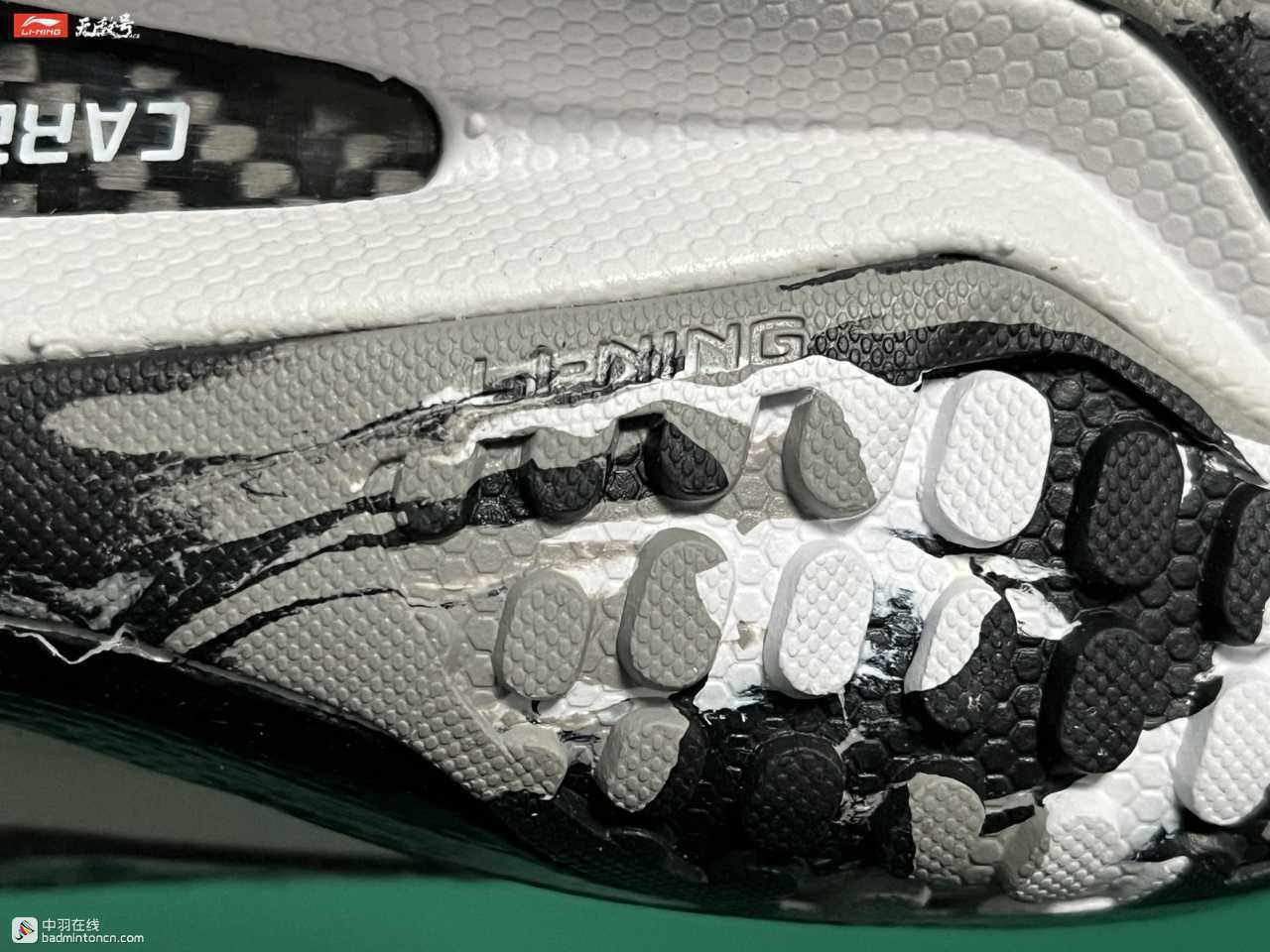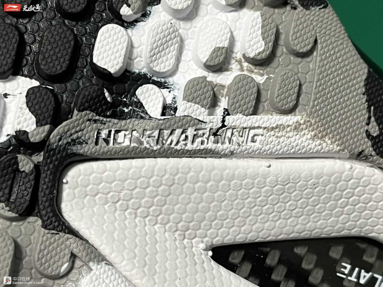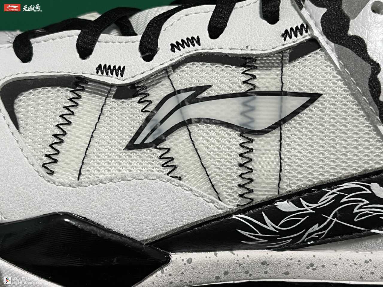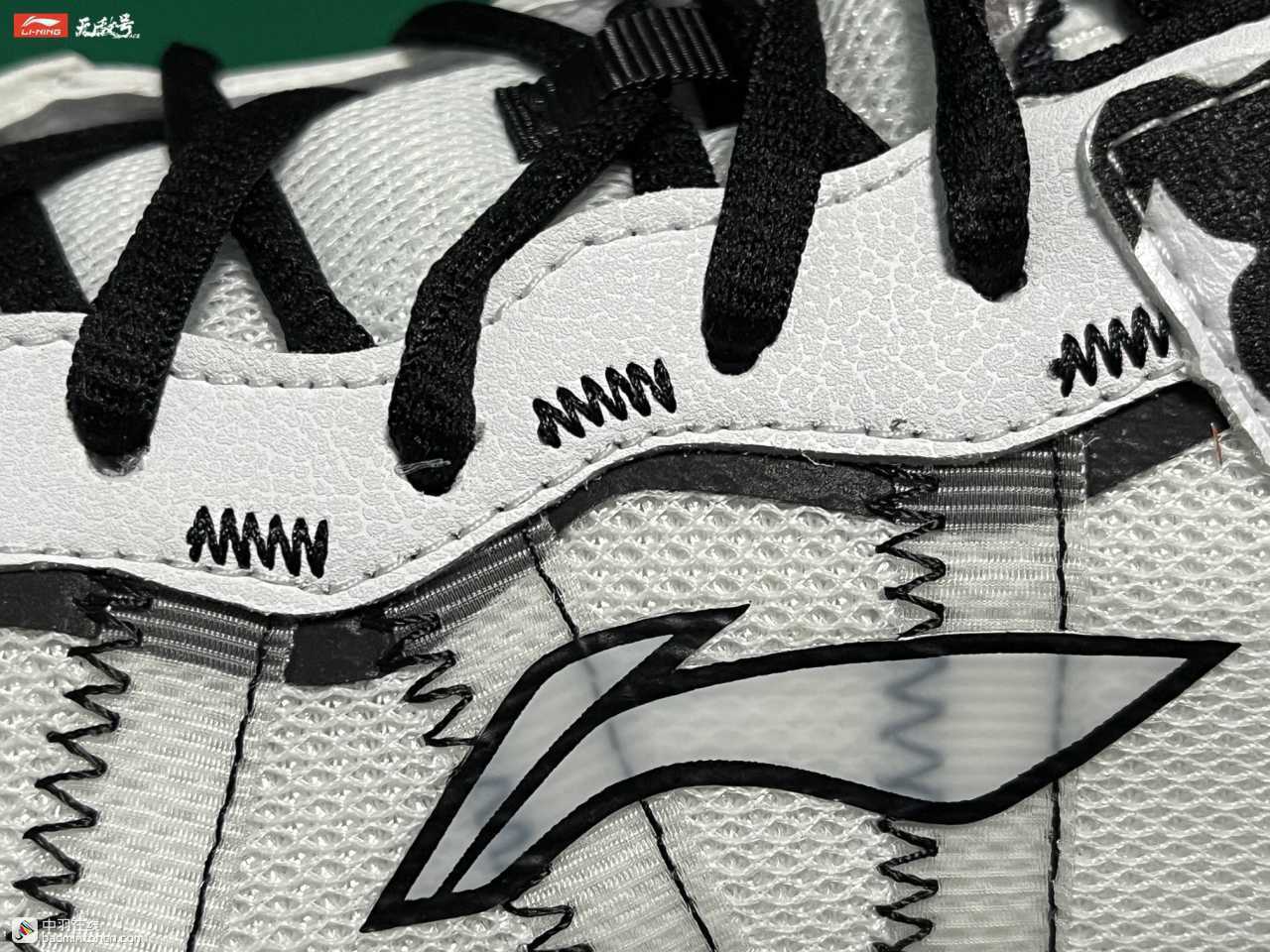 此外,在鞋面外侧的纺织表面上,也有浮于其上的李宁LOGO,内部采用半透明的材质,黑色边框勾勒,独具一格。