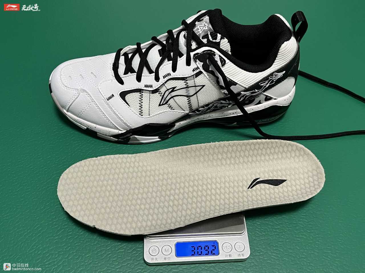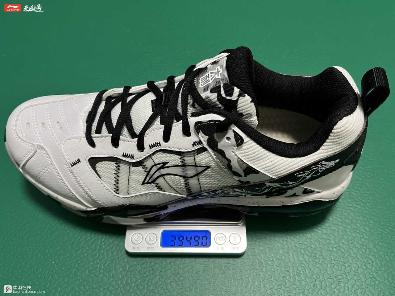 笔者手中的这双无敌号ACE雪地迷彩为43.5码,内长275mm。经过实际称量,左右脚的重量分别为394.90g和415.78g,在羽毛球鞋中属于偏重的水平。
