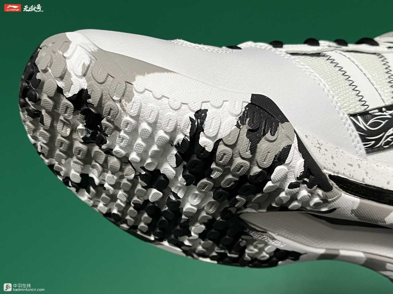 同时,无敌号ACE雪地迷彩的大底在前后掌内外两侧均有向上包覆的结构设计,以此迎合羽毛球运动的步法需要,全方位保证鞋的防滑与耐磨性能。