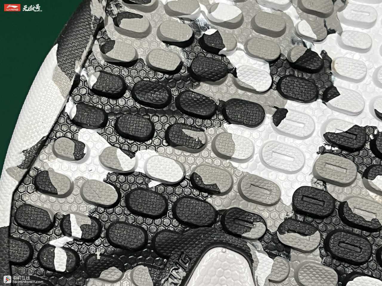 相较之下,无敌号ACE雪地迷彩的前掌缓震偏薄,这带来了较好的场地感。实战中,我们在启动、移动的过程中会用到前脚掌比较多,而更为直接的触地感会增加步伐的速度,让人在场上更加灵活,在穿着无敌号ACE雪地迷彩的过程中,几乎感受不到前脚掌部分在触地时鞋底有拖沓的蓄力回弹过程,非常灵活敏捷,因此无敌号ACE雪地迷彩的这一设计非常符合羽毛球运动的特征。