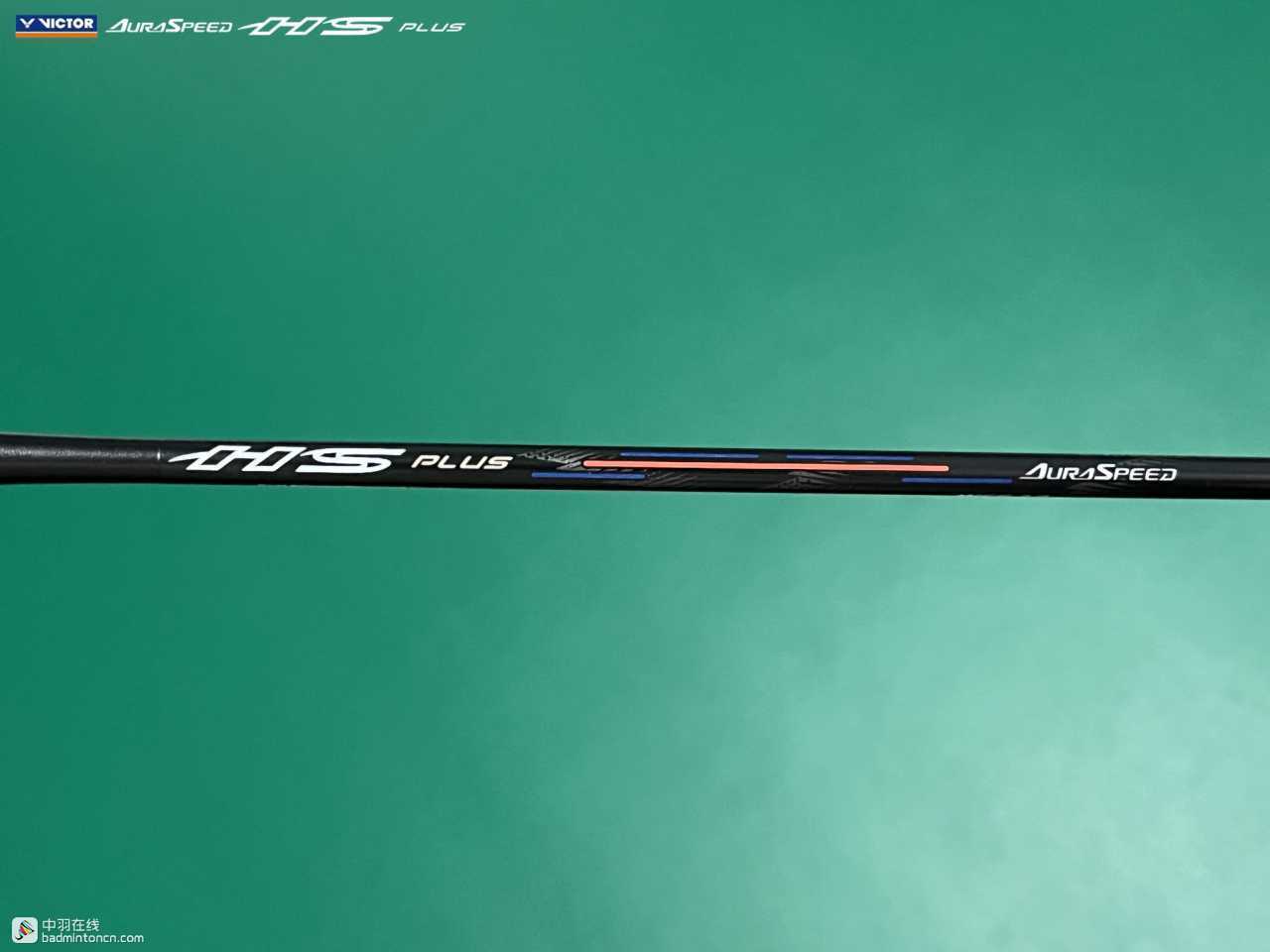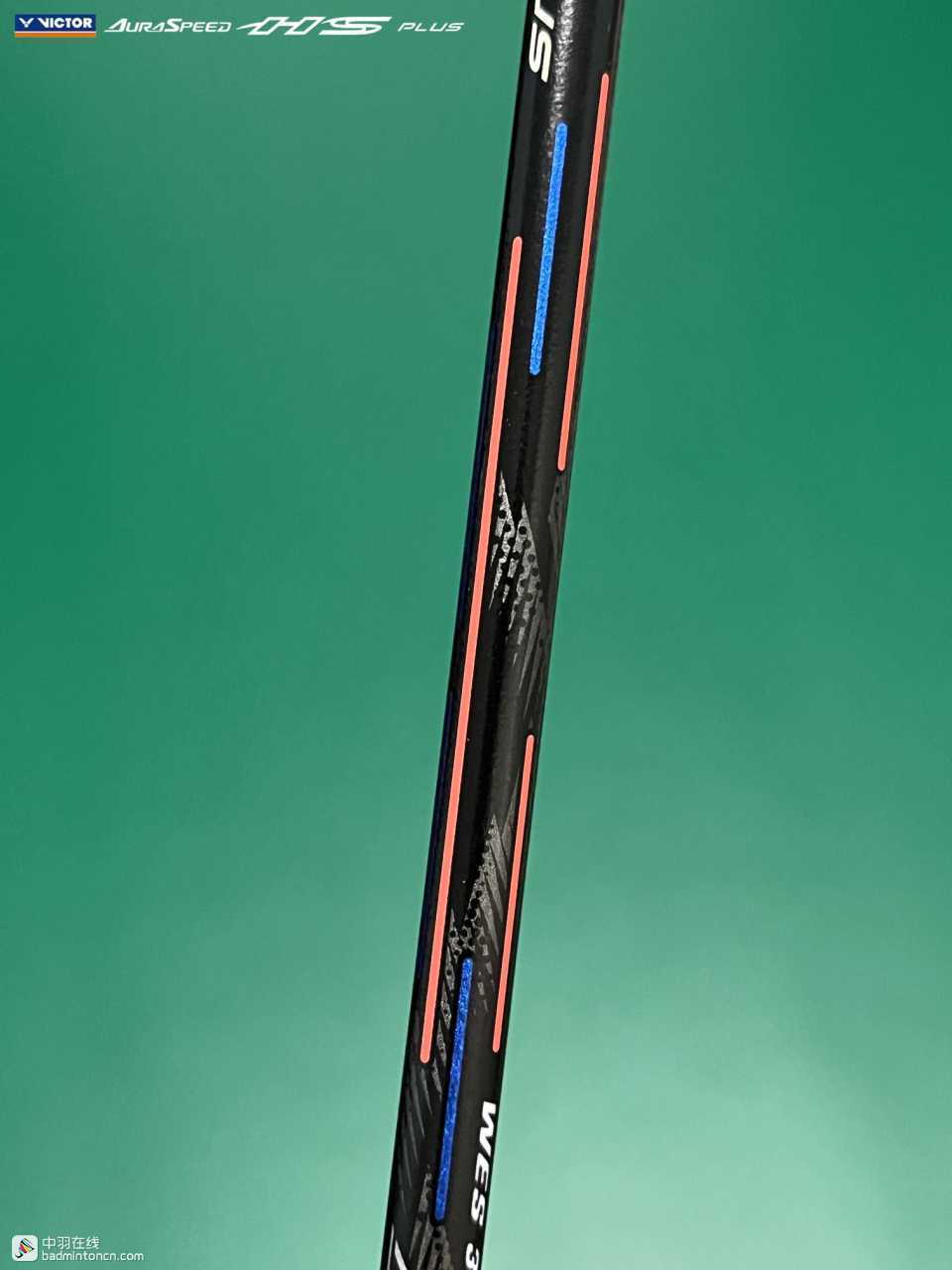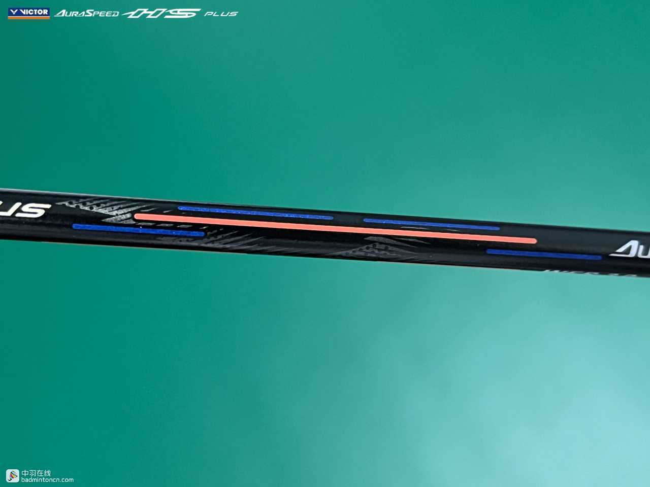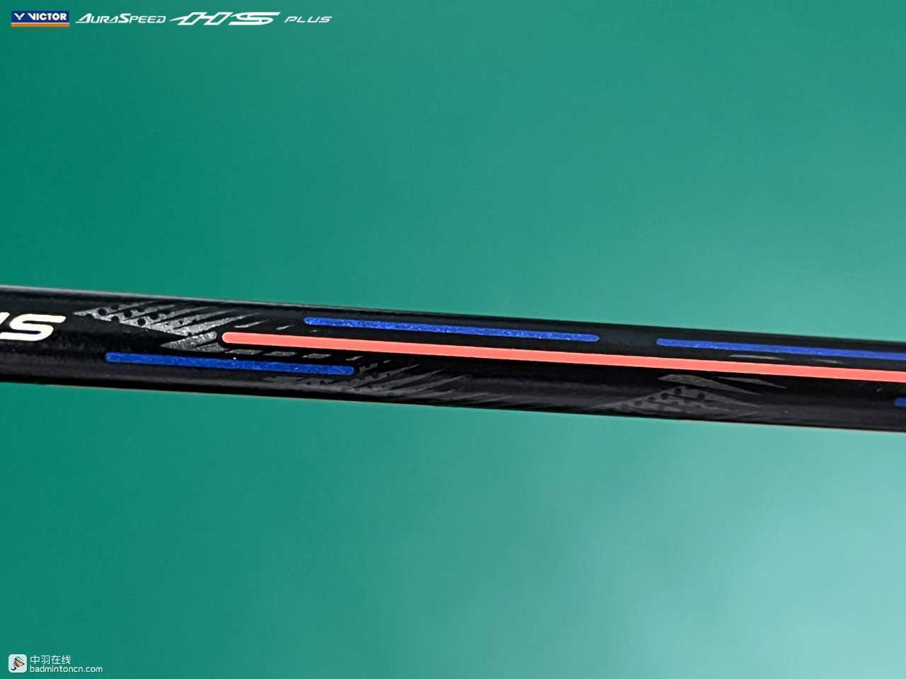 中杆上半部分白色的“HS”硕大而显眼,采用的字体和ARS-HS是一致的,其后紧随金色的“PLUS”字样,而神速系列名称“AURASPEED”则标注在了中杆尾部接近锥盖的位置。