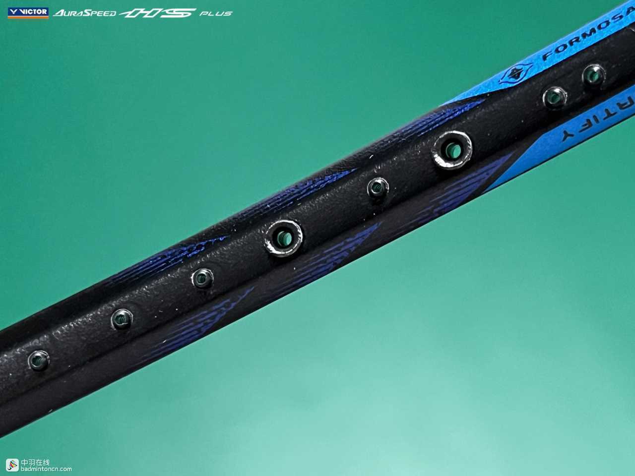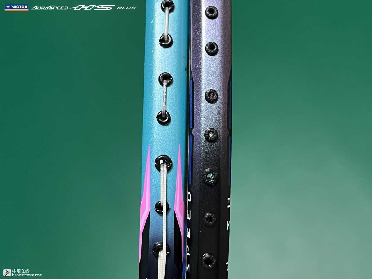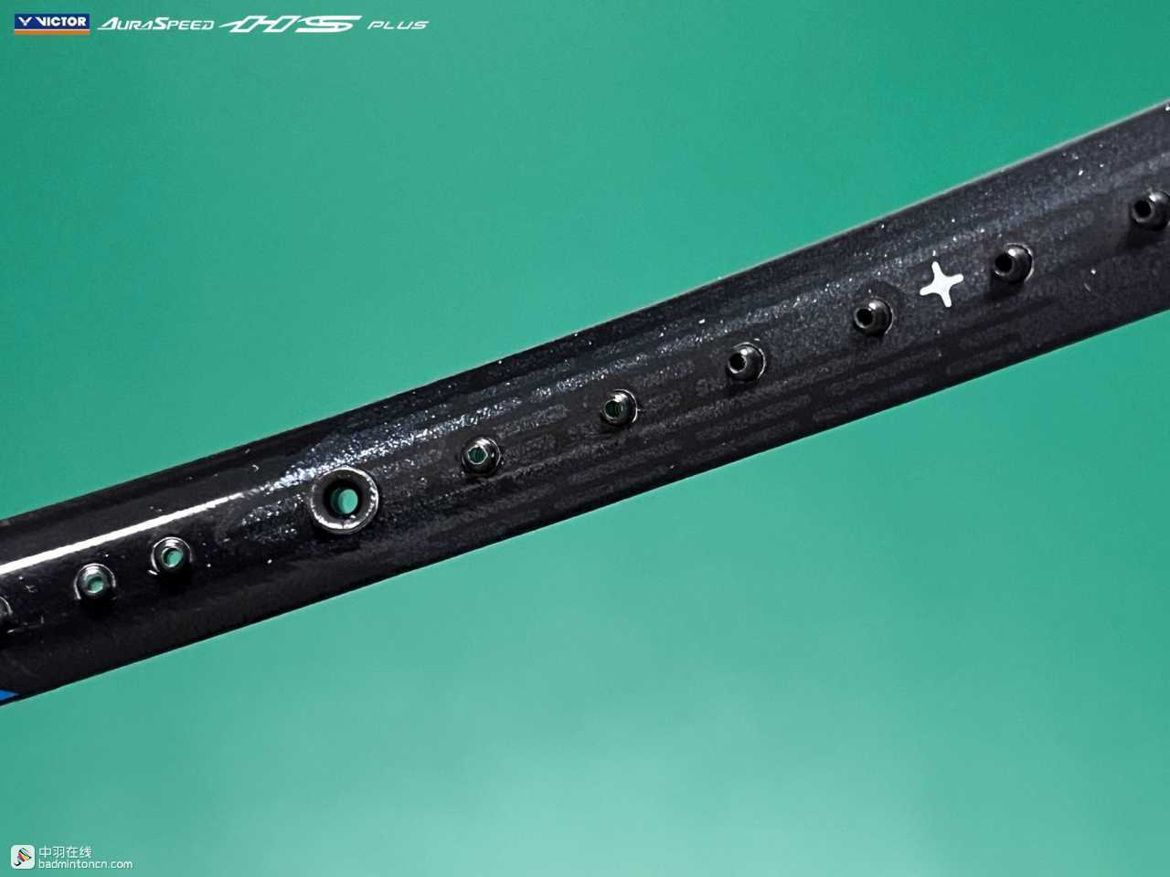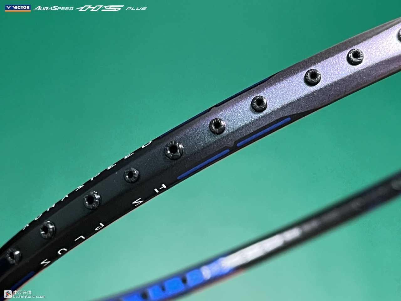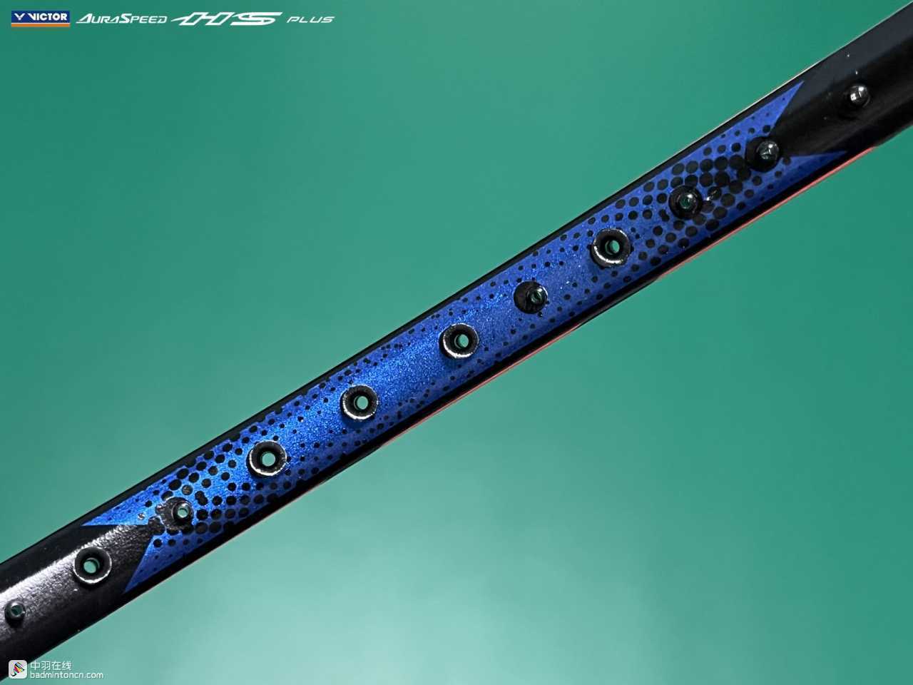 中杆上半部分白色的“HS”硕大而显眼,采用的字体和ARS-HS是一致的,其后紧随金色的“PLUS”字样,而神速系列名称“AURASPEED”则标注在了中杆尾部接近锥盖的位置。