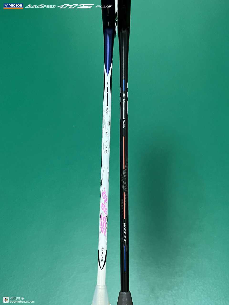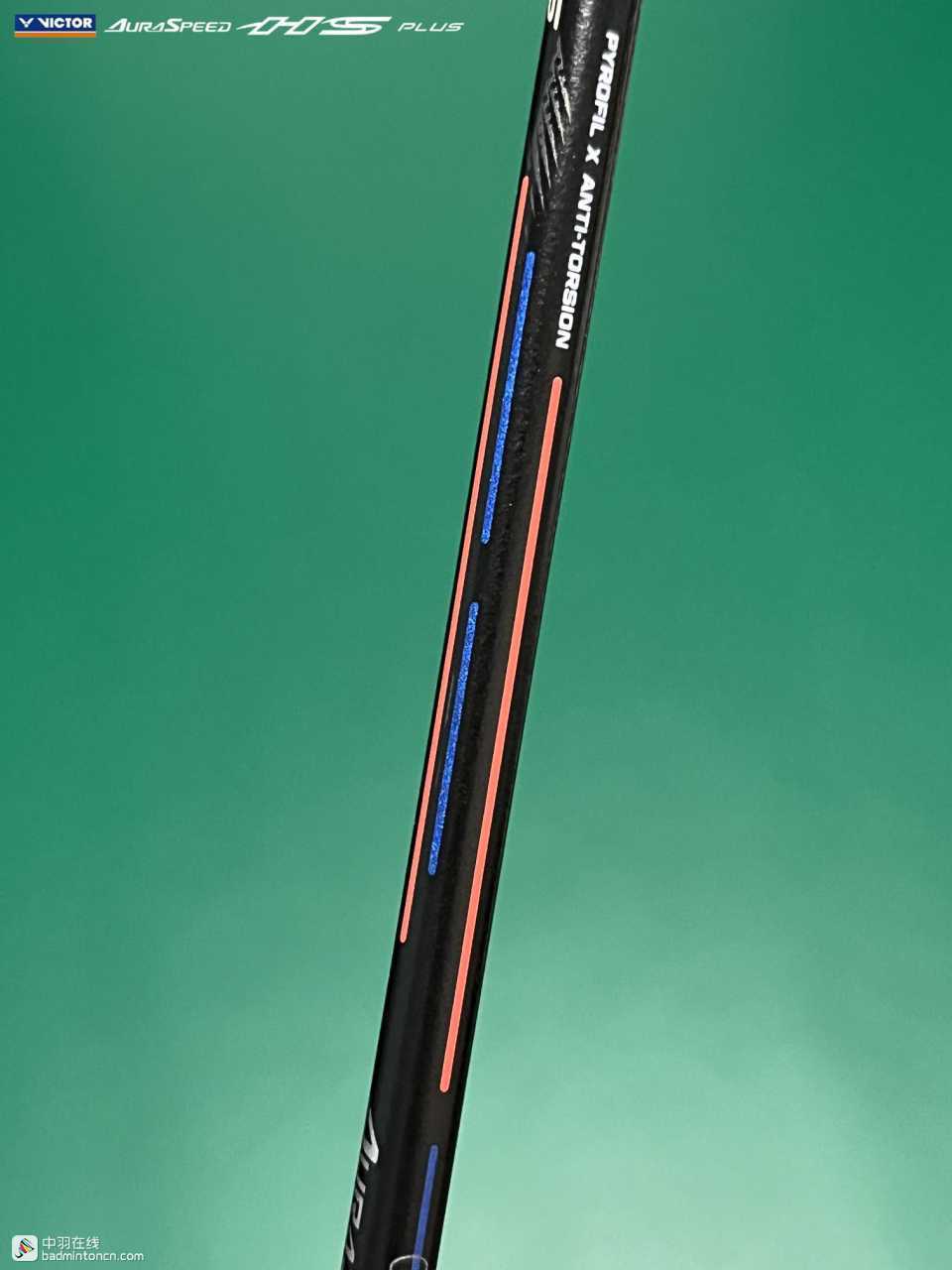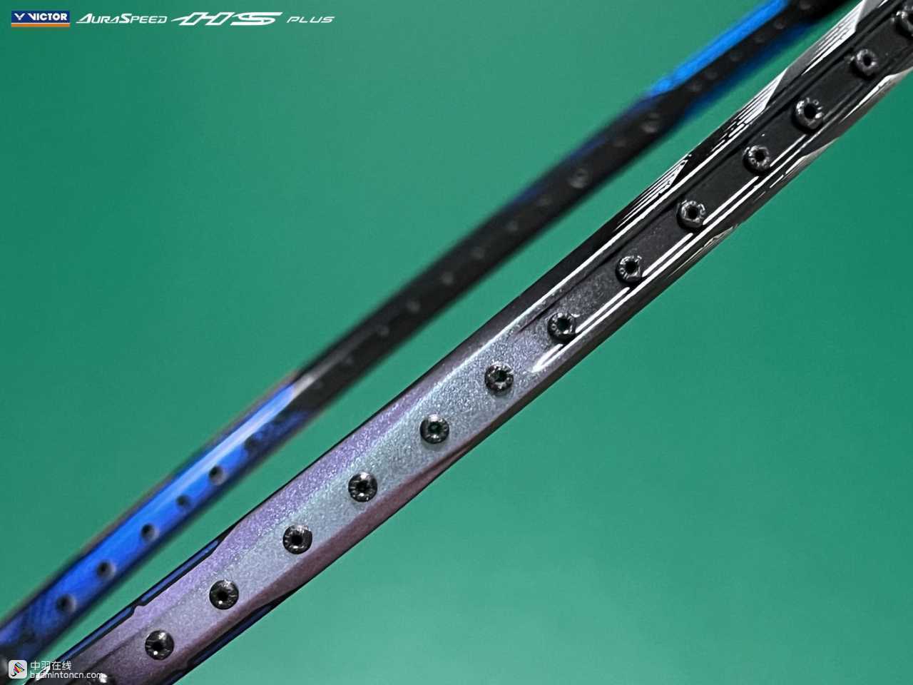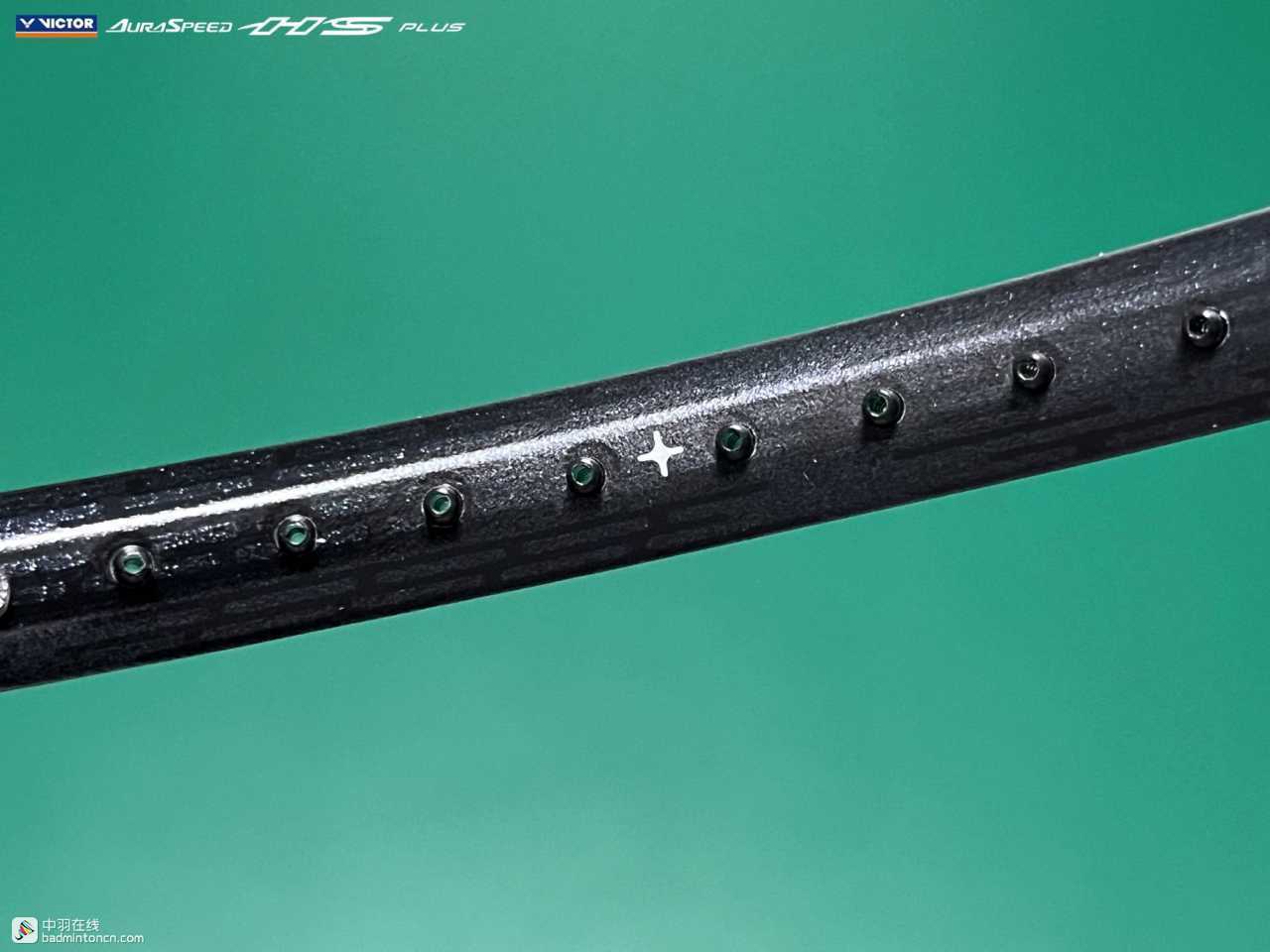 中杆上半部分白色的“HS”硕大而显眼,采用的字体和ARS-HS是一致的,其后紧随金色的“PLUS”字样,而神速系列名称“AURASPEED”则标注在了中杆尾部接近锥盖的位置。