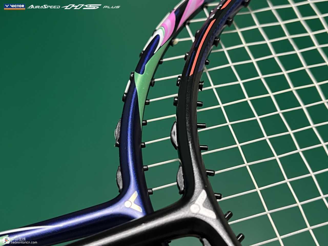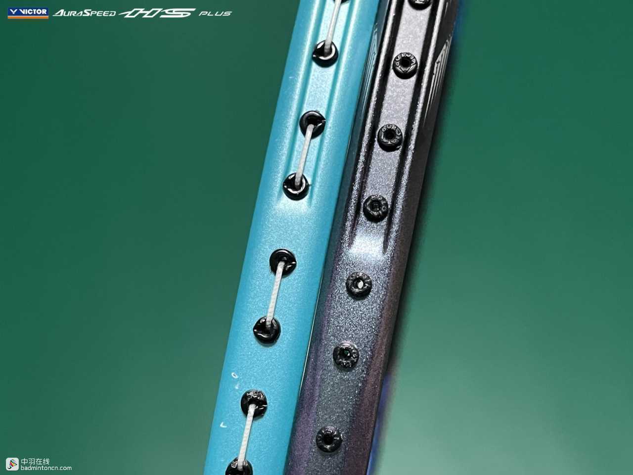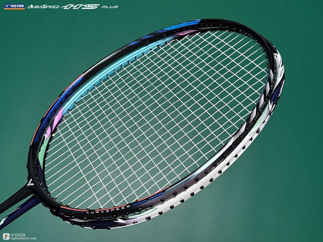 ARS-HS PLUS的拍框采用左右对称式设计,三通处以及拍框上半部分为黑色,而两侧大约3点至4点、8点至9点的部分采用带有磨砂质感的变色龙漆,正看为绿色,而侧看则为紫色,显露出一种低调的奢华。