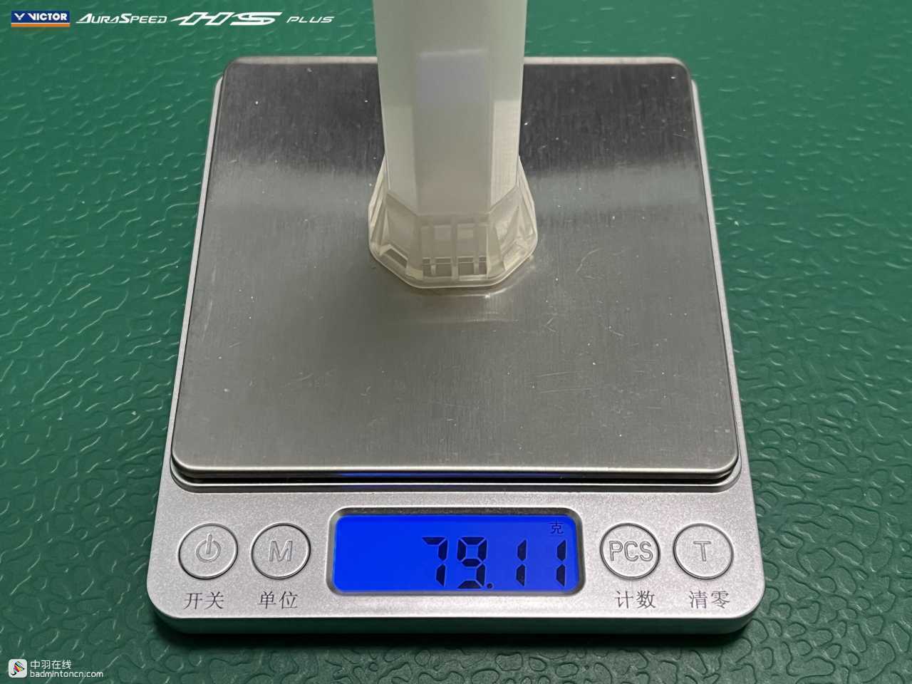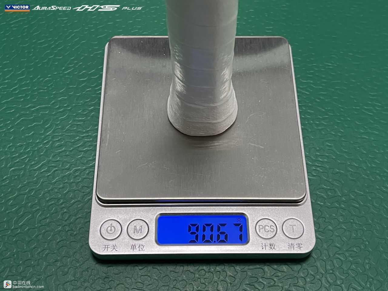 ARS-HS PLUS共推出了3U/G5和4U/G5两种规格,笔者入手的这支为4U/G5。和现在威克多其他悬浮科技手柄球拍一样,ARS-HS PLUS原装手柄不带底胶,底胶作为附件单独包装。在空拍无底胶状态下,4U的ARS-HS PLUS重约79.11g,平衡点约316mm。