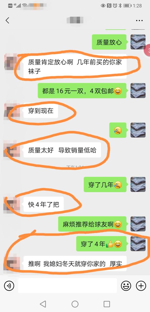 “球袜旧了以后更能感觉到球袜好” 这是老客对反手球袜的评价。