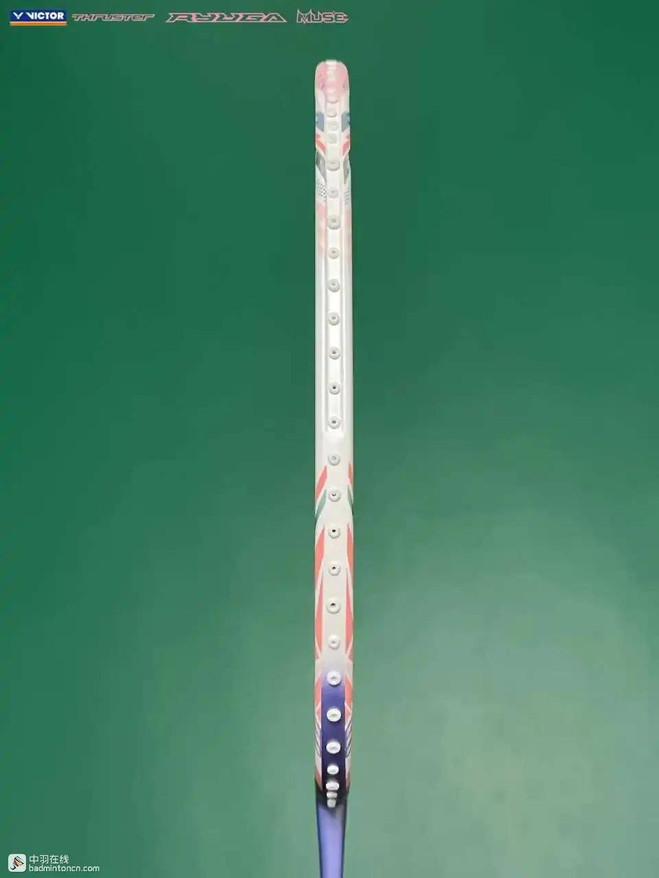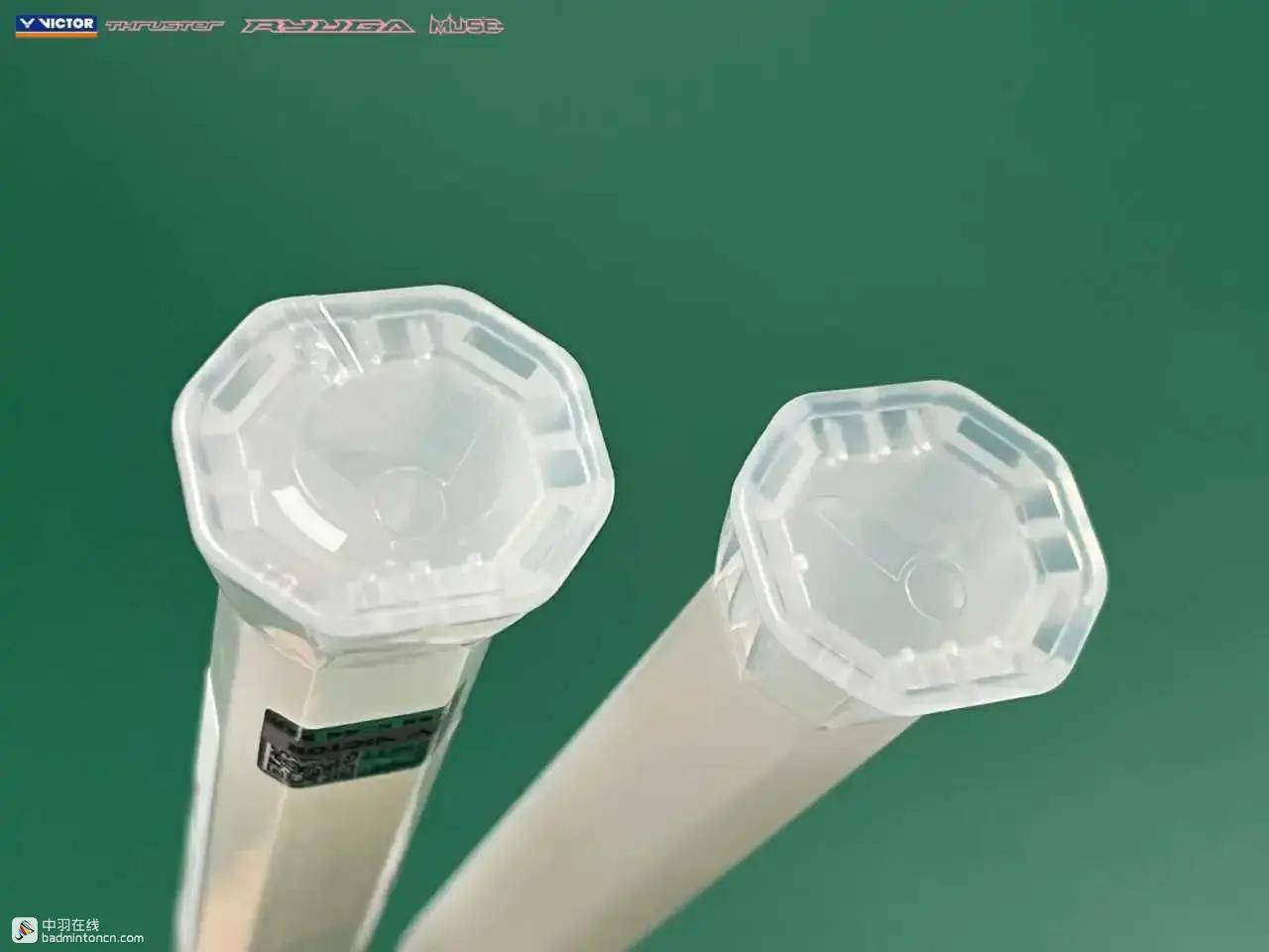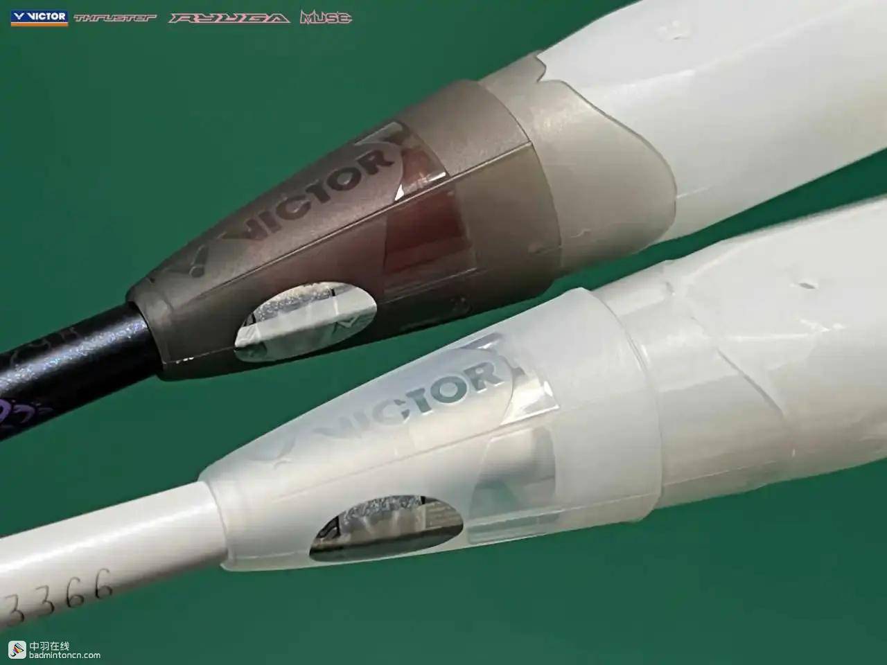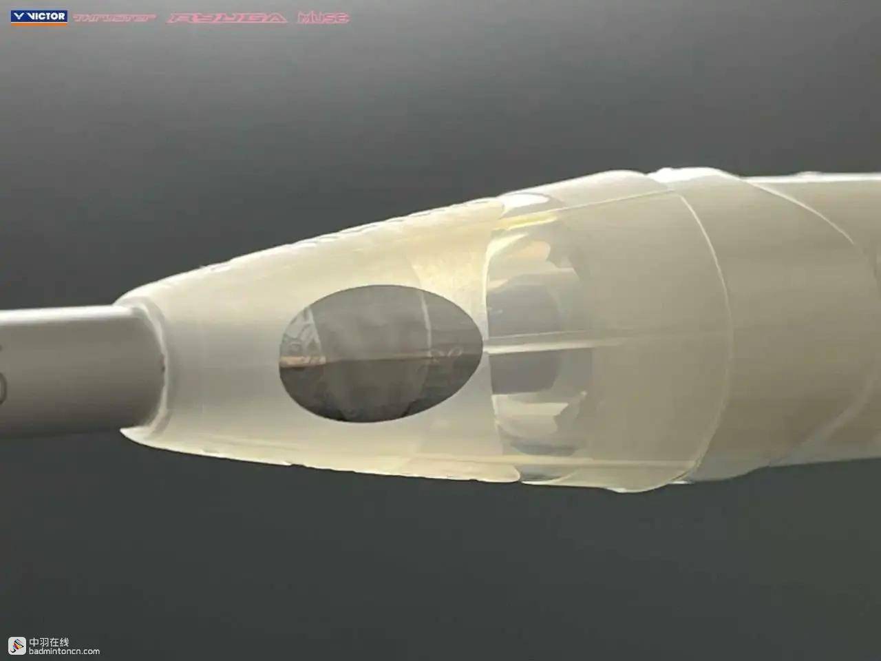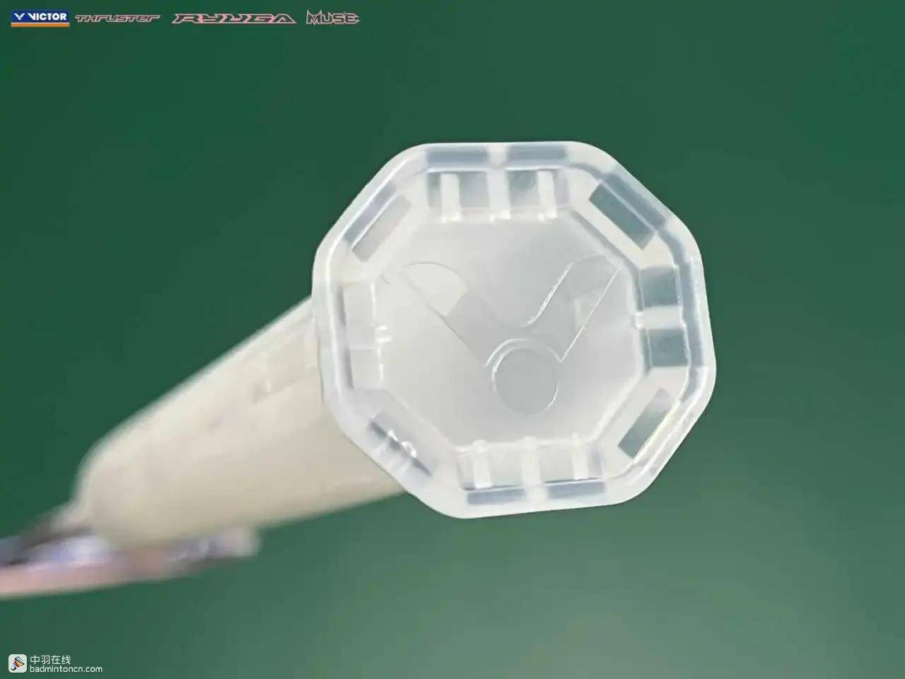 采用了悬浮科技手柄的TK-龙牙MUSE沿用了半透明锥盖及底盖的标准搭配,此外全拍护线管也采用了白色,在细节上进一步贯彻球拍的整体风格。