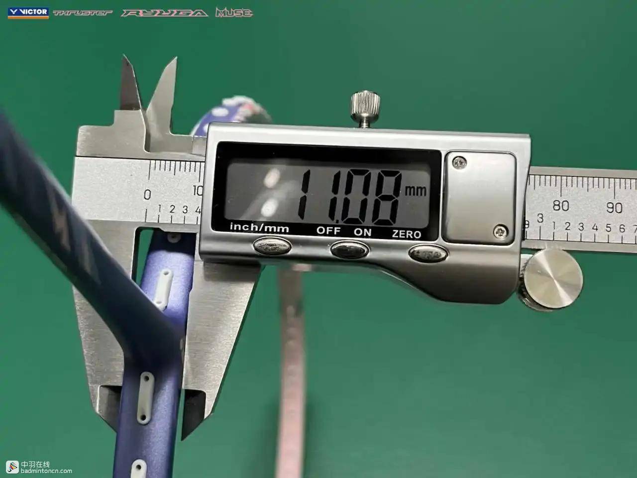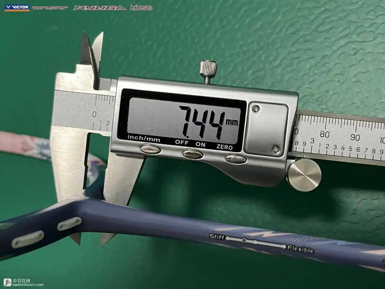 经过实测,TK-龙牙MUSE拍框底部(靠近T头处)宽度约为11.08mm,厚度约为7.44mm。