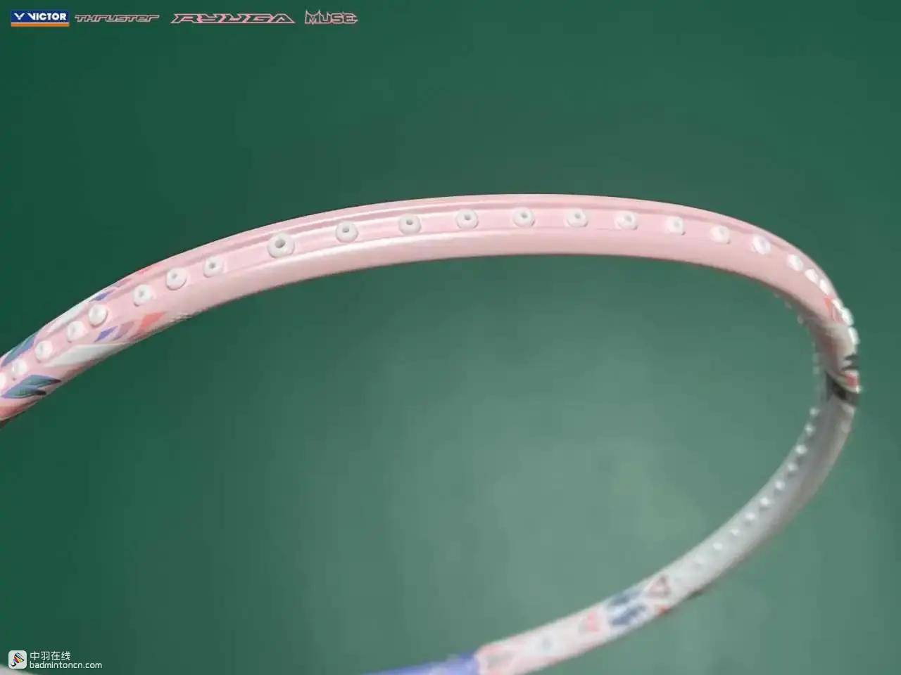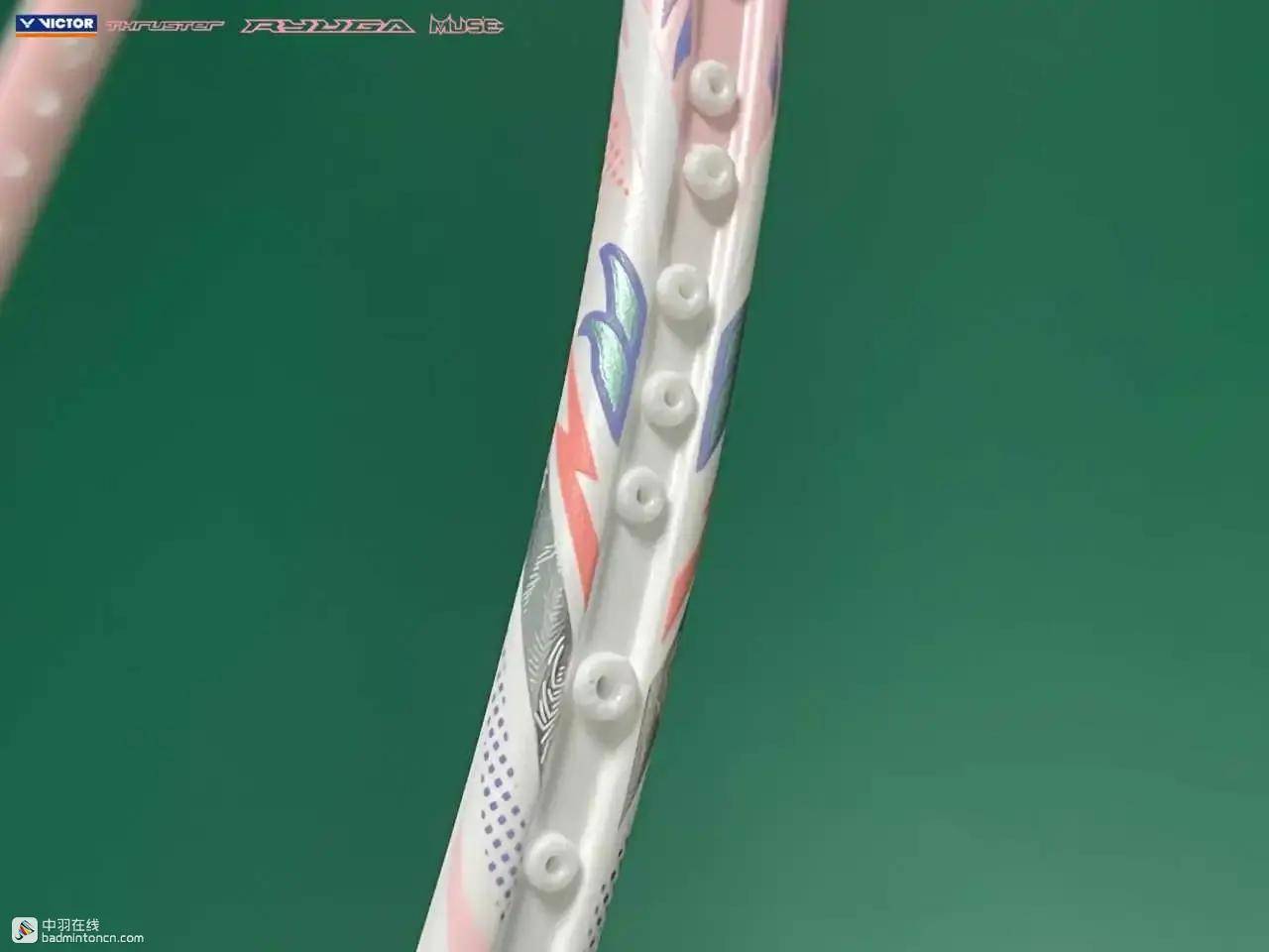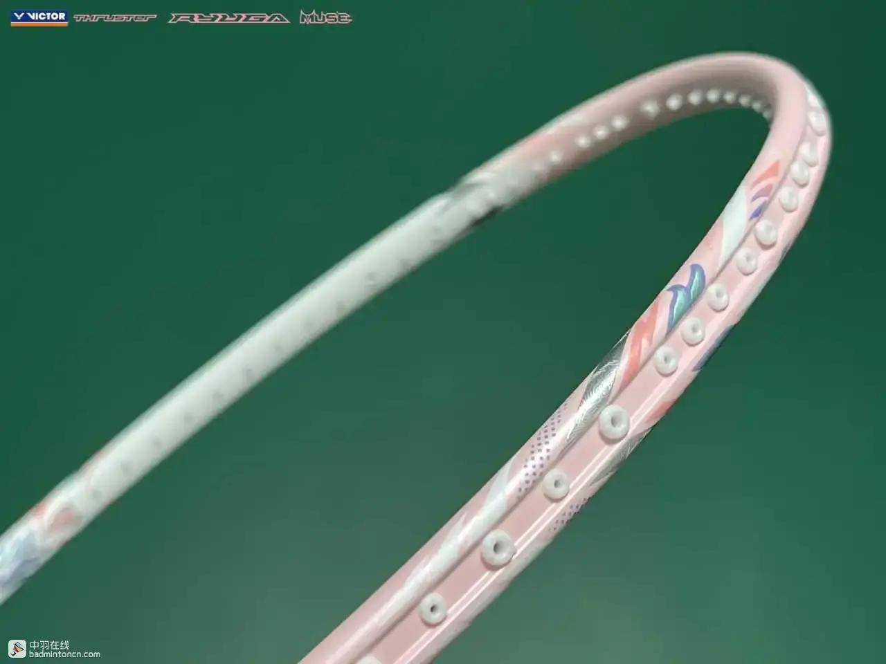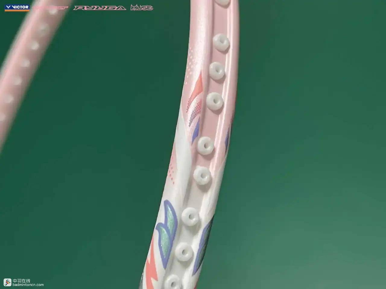和TK-龙牙一样,TK-龙牙MUSE的拍框采用了撞色的设计,主要特点是图案对称而颜色不同,但不同于前者选择了两种对比鲜明的颜色,TK-龙牙MUSE以淡粉色和白色相对应,不会带来强烈的视觉冲击,相反这种风格接近的颜色搭配将TK-龙牙MUSE的特点展现得更加恰到好处。