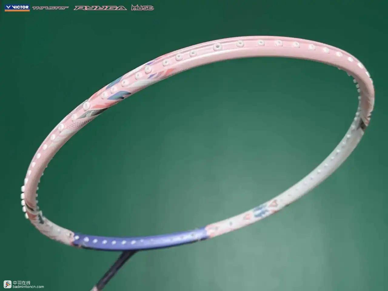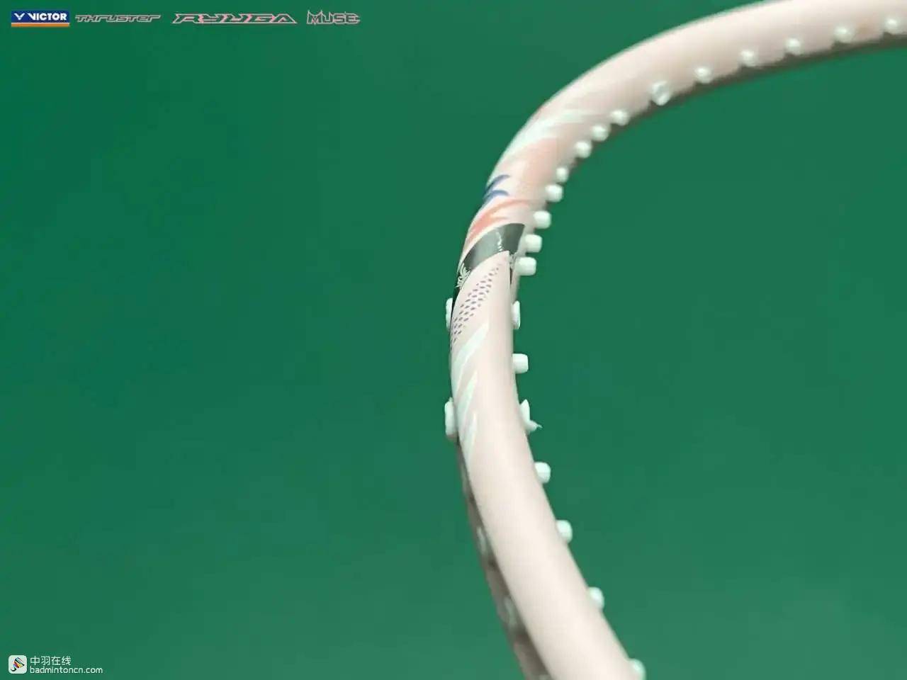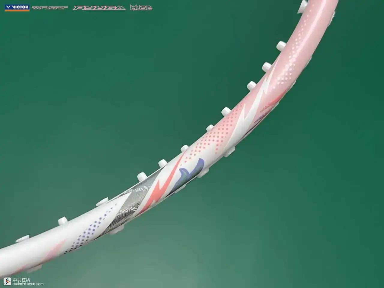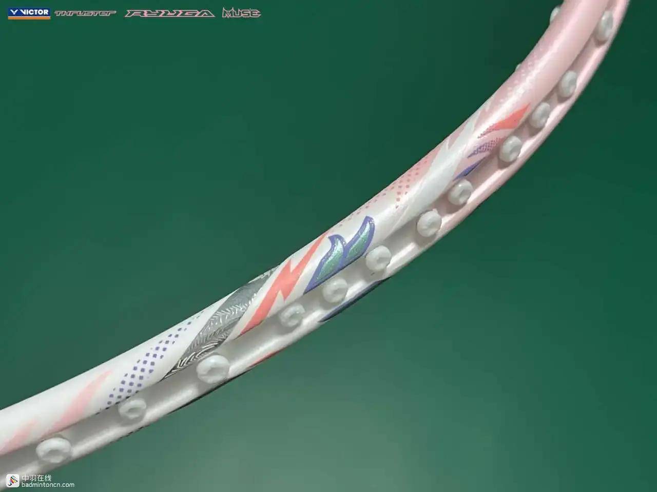 和TK-龙牙一样,TK-龙牙MUSE的拍框采用了撞色的设计,主要特点是图案对称而颜色不同,但不同于前者选择了两种对比鲜明的颜色,TK-龙牙MUSE以淡粉色和白色相对应,不会带来强烈的视觉冲击,相反这种风格接近的颜色搭配将TK-龙牙MUSE的特点展现得更加恰到好处。