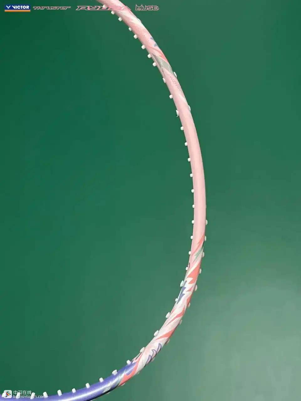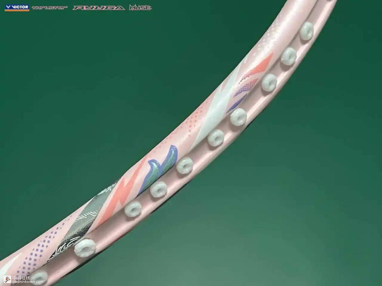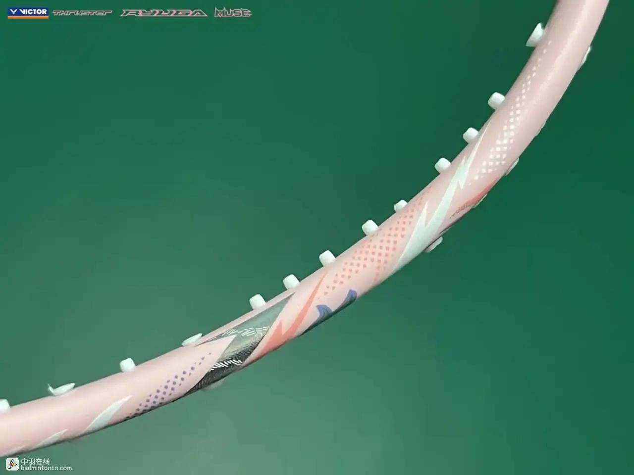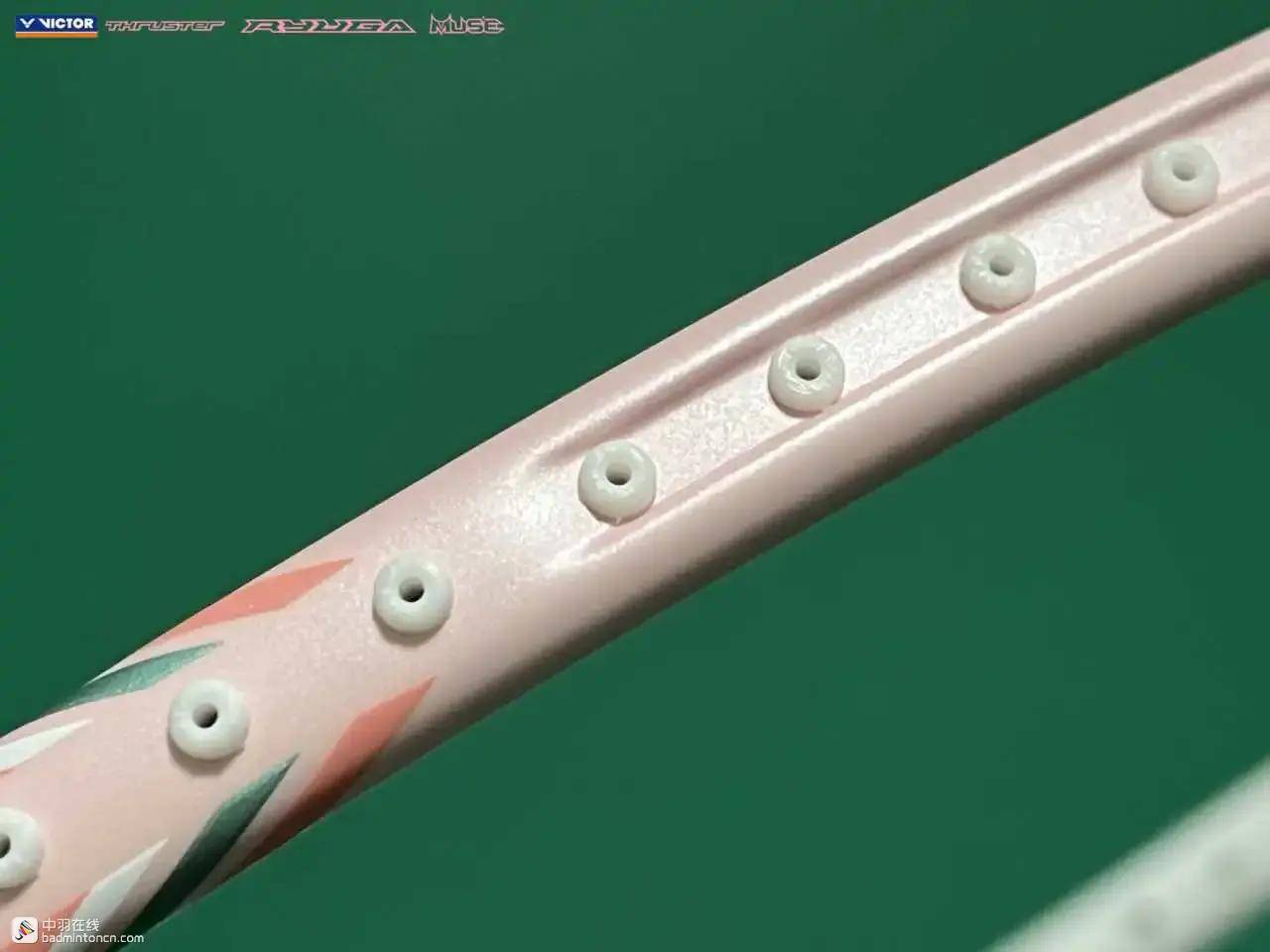 和TK-龙牙一样,TK-龙牙MUSE的拍框采用了撞色的设计,主要特点是图案对称而颜色不同,但不同于前者选择了两种对比鲜明的颜色,TK-龙牙MUSE以淡粉色和白色相对应,不会带来强烈的视觉冲击,相反这种风格接近的颜色搭配将TK-龙牙MUSE的特点展现得更加恰到好处。