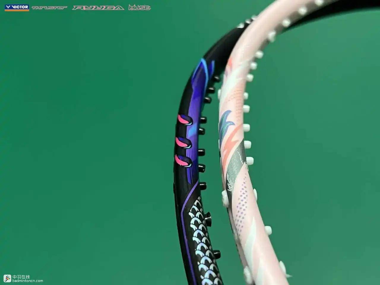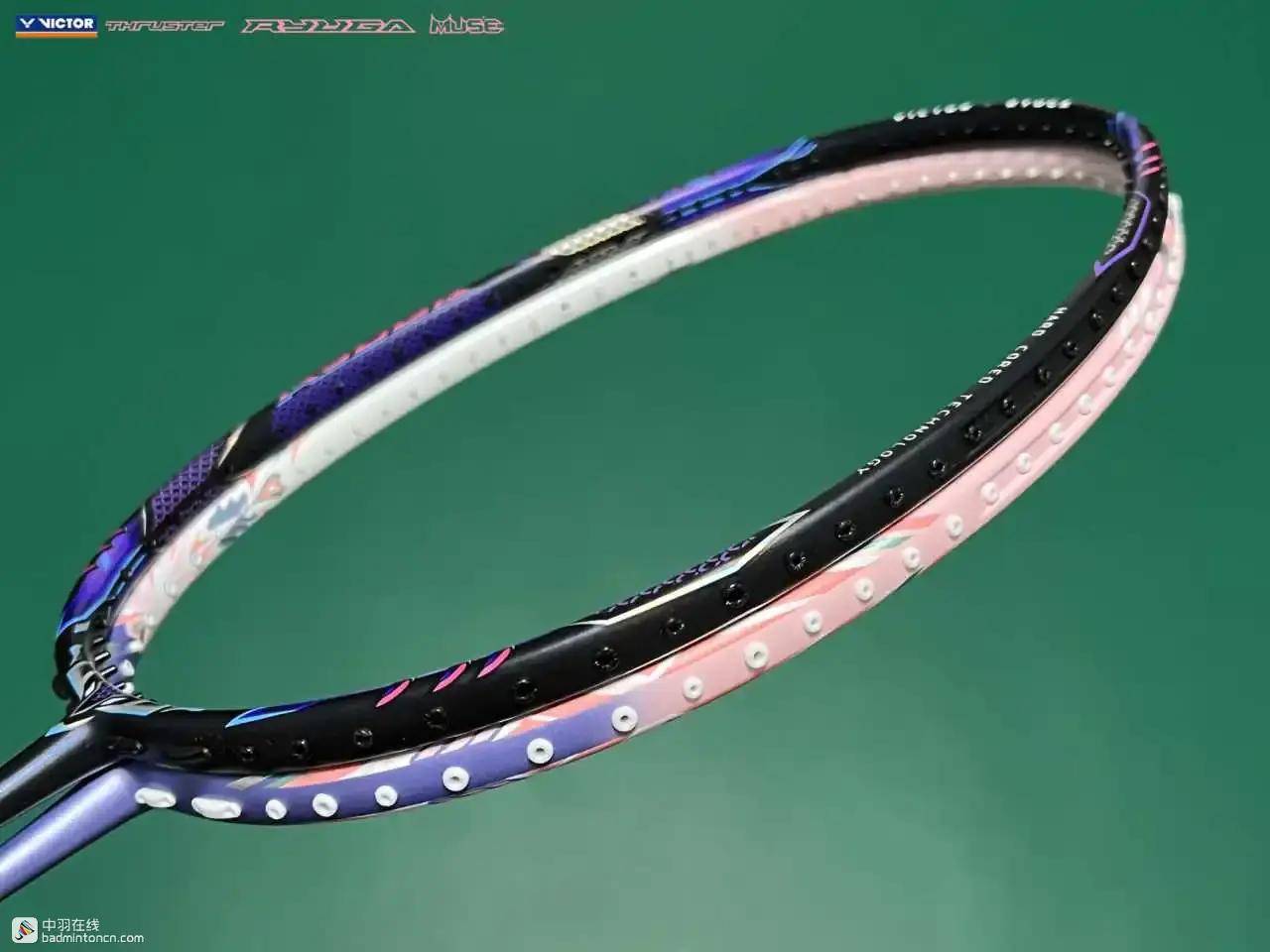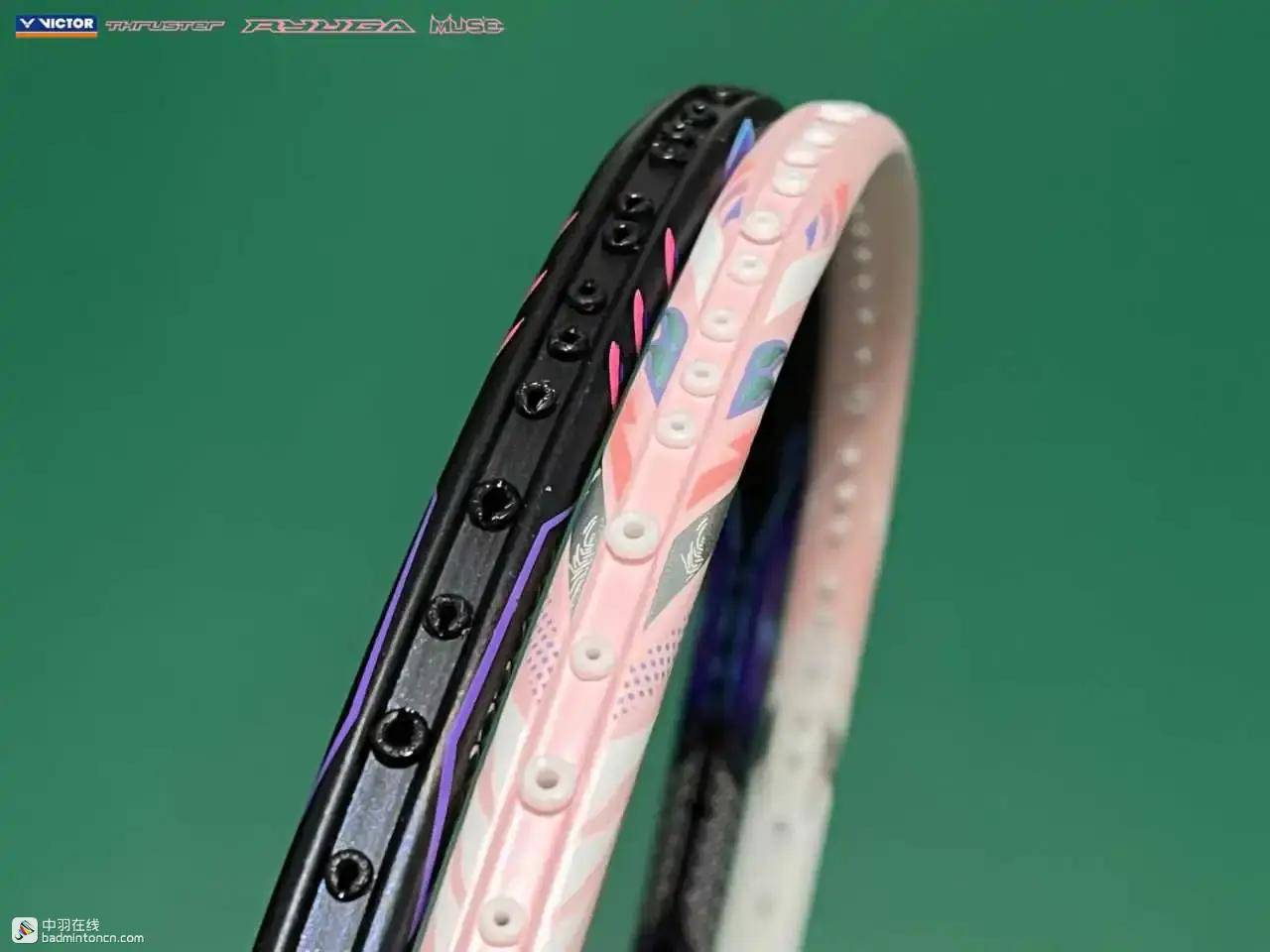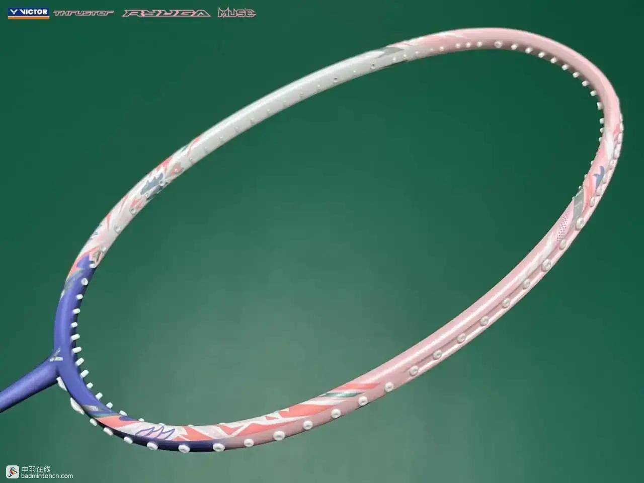 和TK-龙牙一样,TK-龙牙MUSE的拍框采用了撞色的设计,主要特点是图案对称而颜色不同,但不同于前者选择了两种对比鲜明的颜色,TK-龙牙MUSE以淡粉色和白色相对应,不会带来强烈的视觉冲击,相反这种风格接近的颜色搭配将TK-龙牙MUSE的特点展现得更加恰到好处。