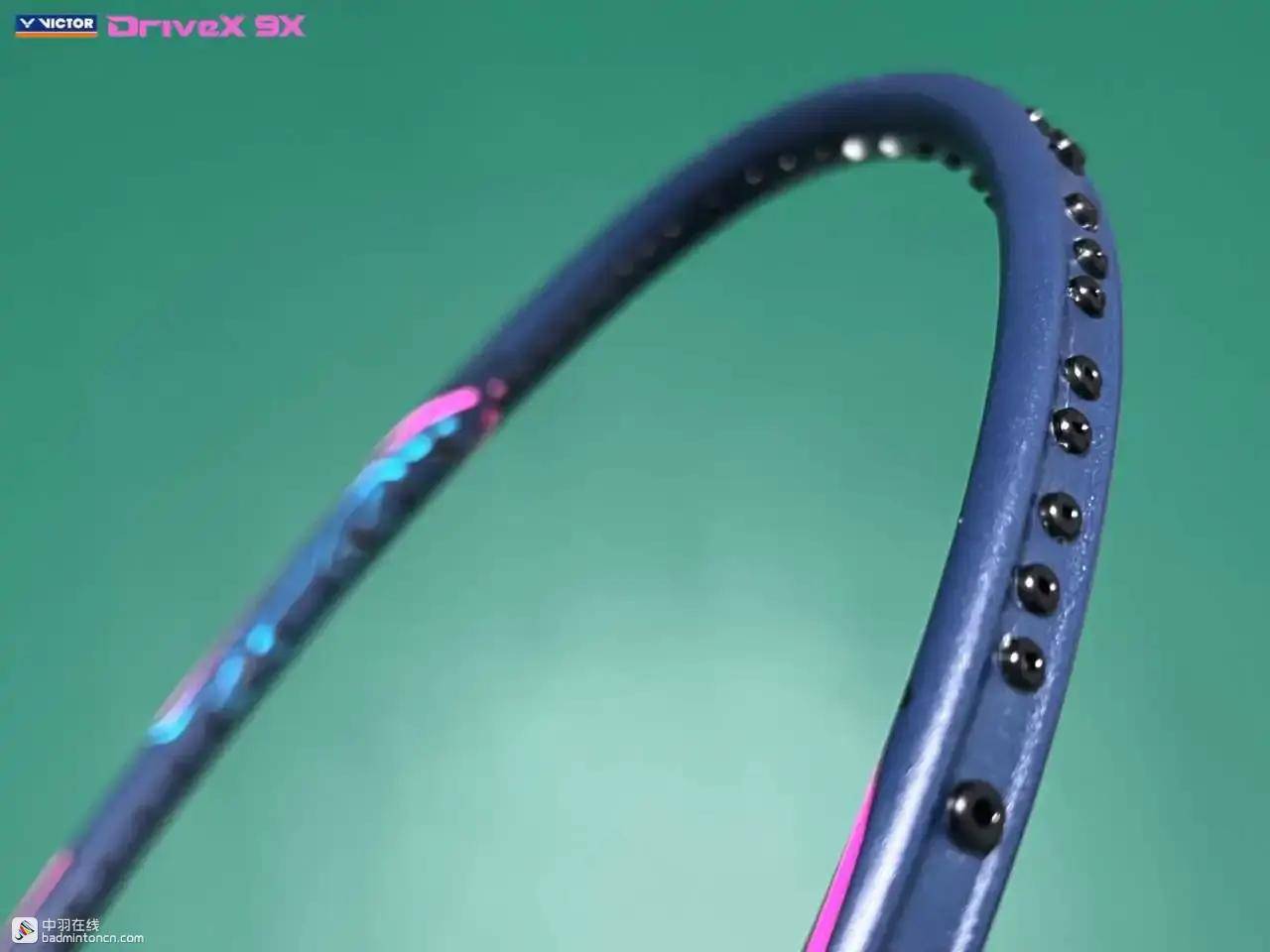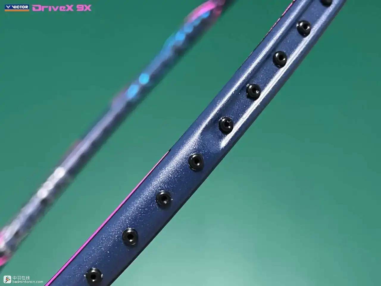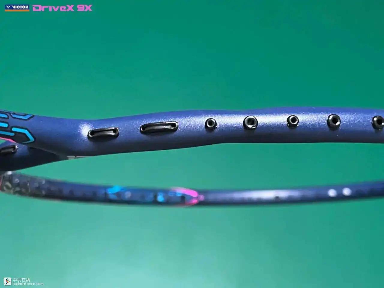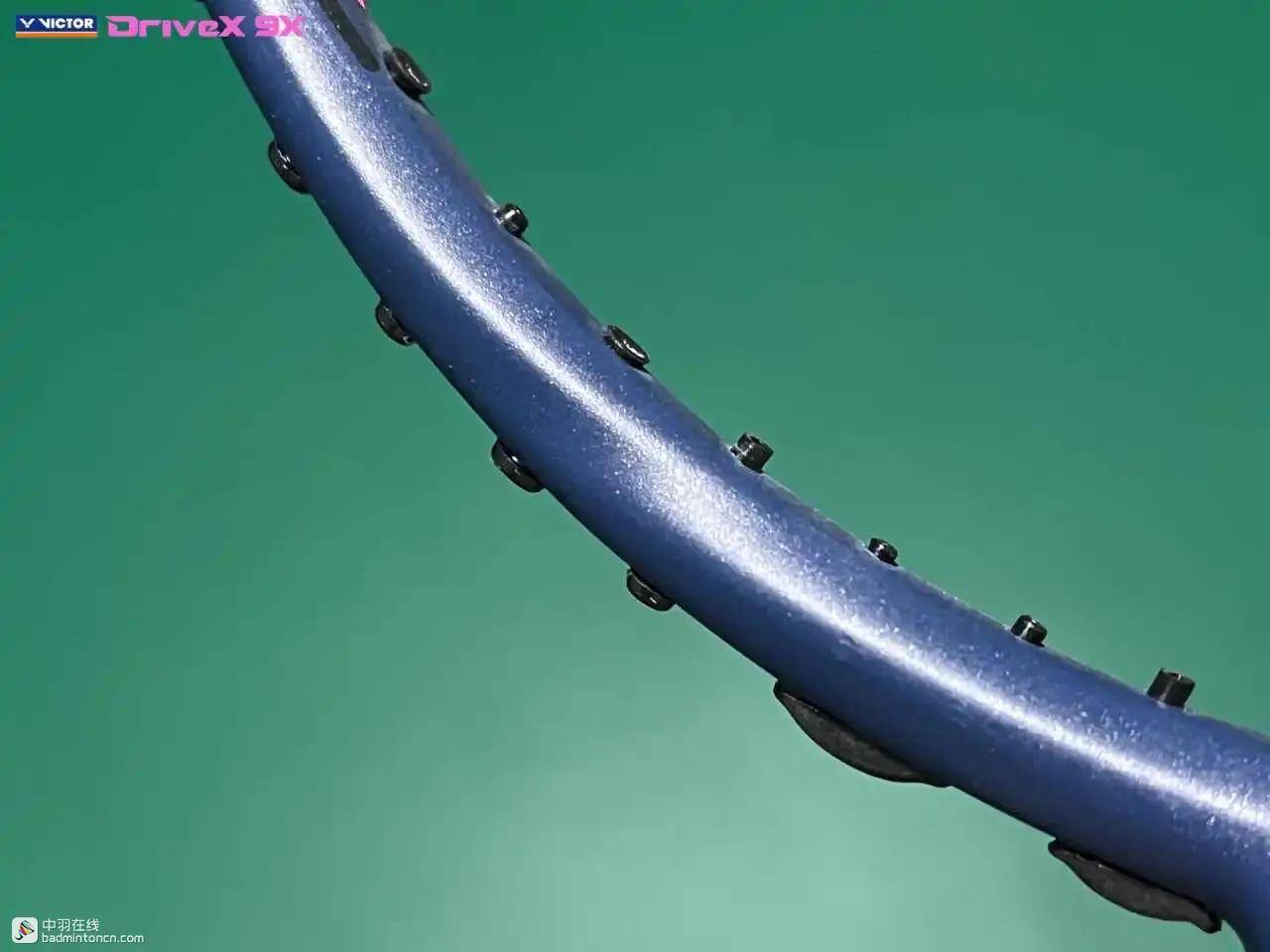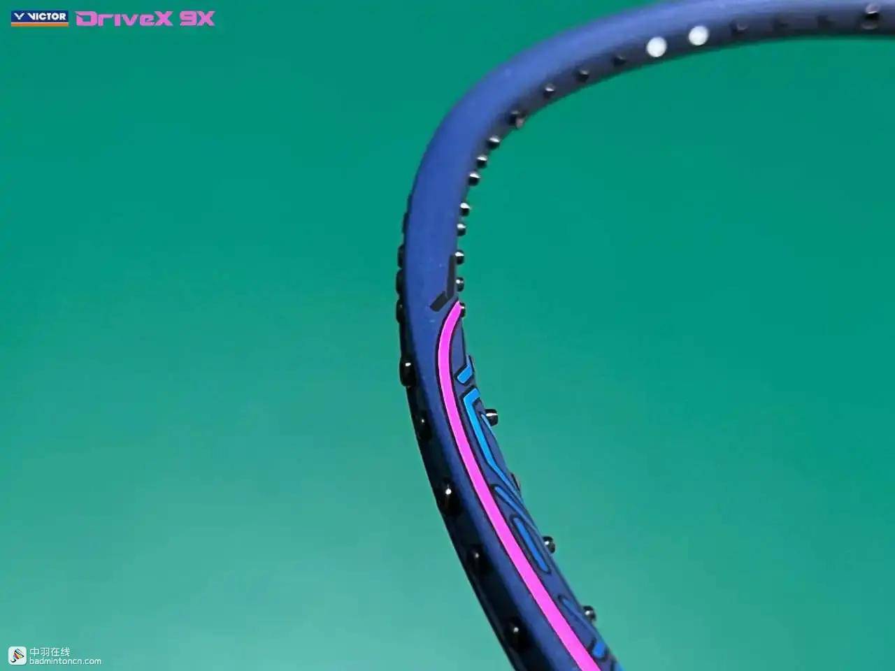 DX-9X在拍框外侧的3点、9点位置以上采用长线槽的结构设计,进一步提升拍框上半部分的挥速以及抗扭强度。