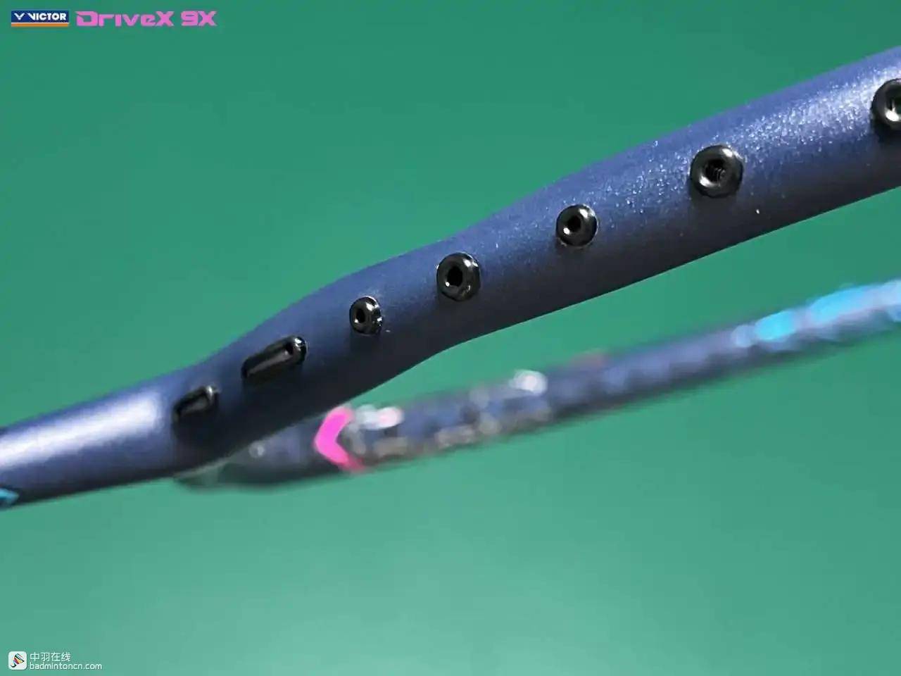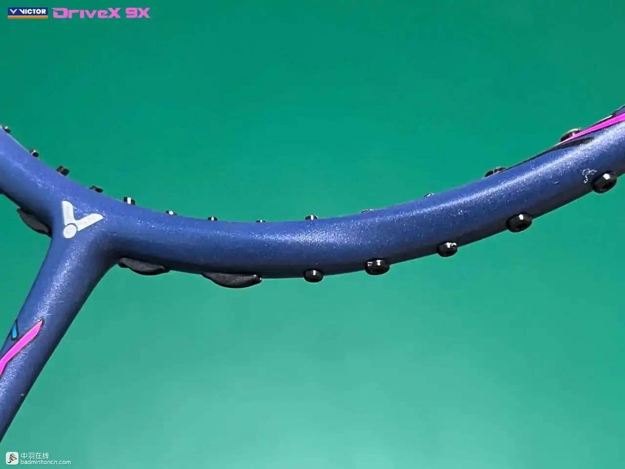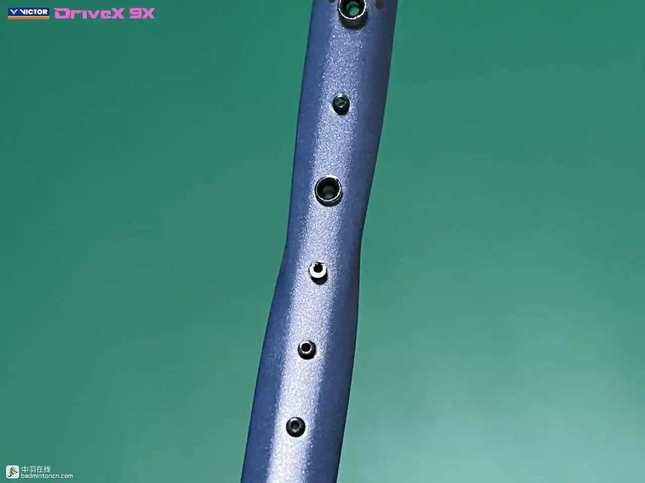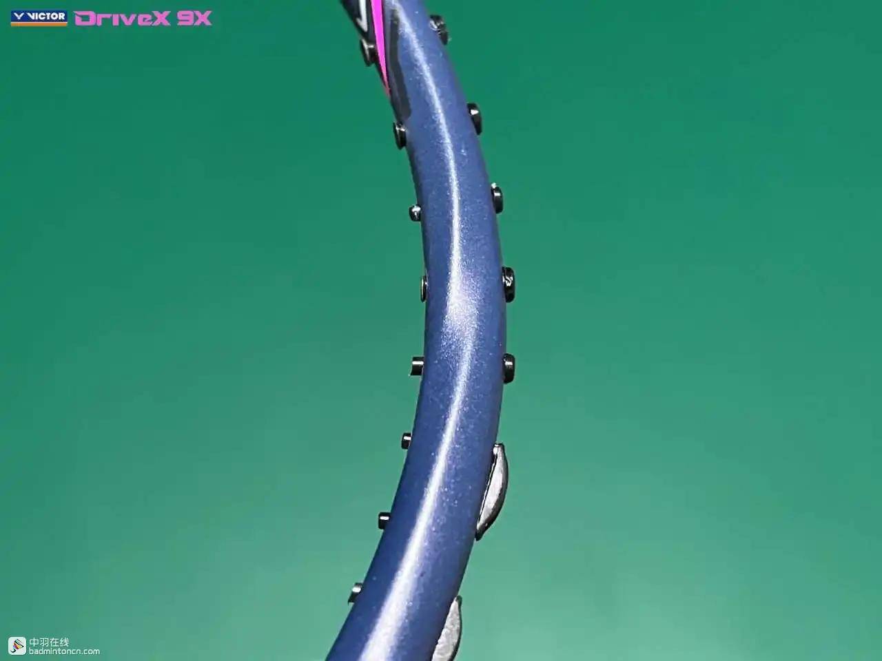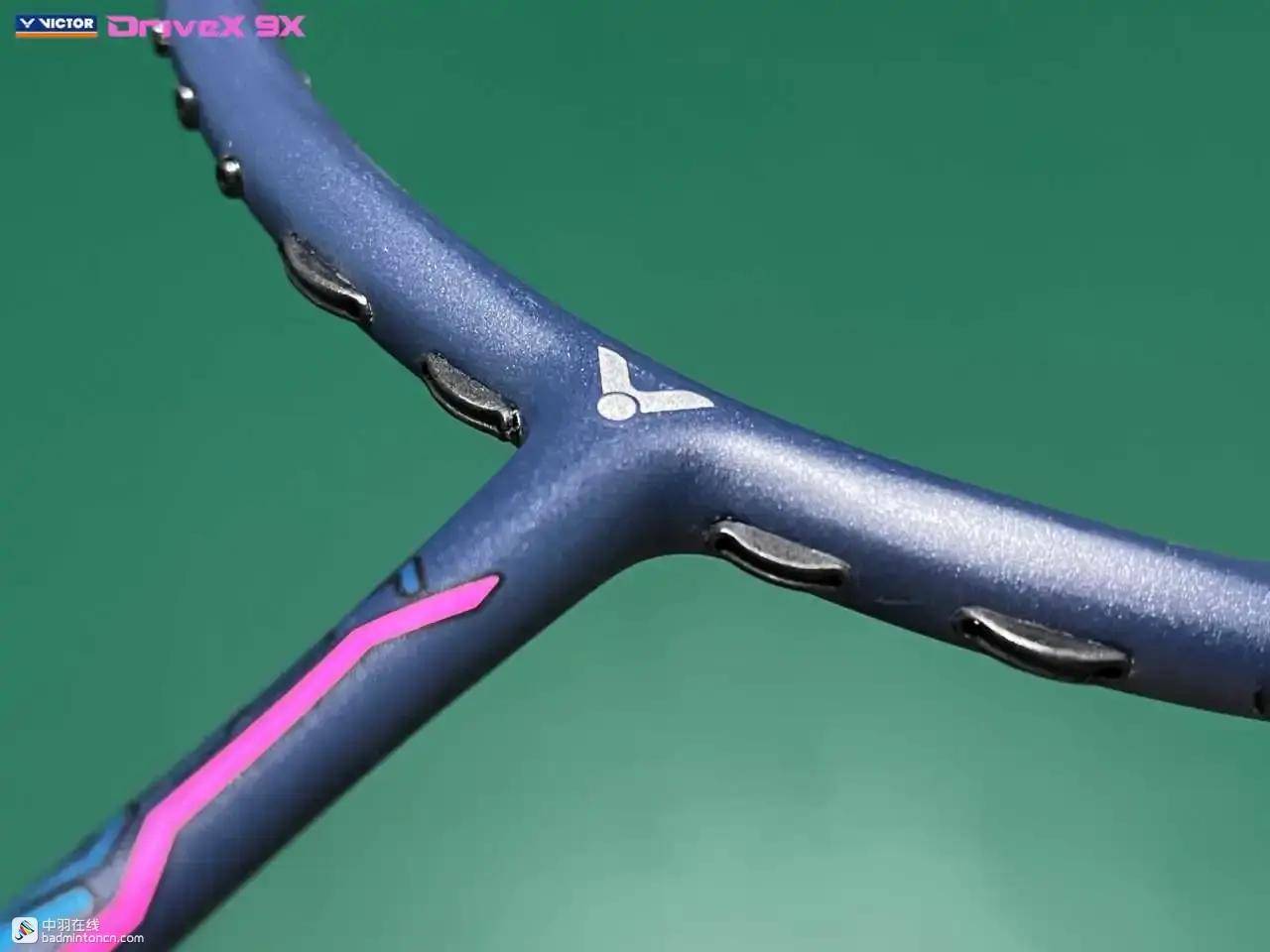 DX-9X在拍框外侧的3点、9点位置以上采用长线槽的结构设计,进一步提升拍框上半部分的挥速以及抗扭强度。