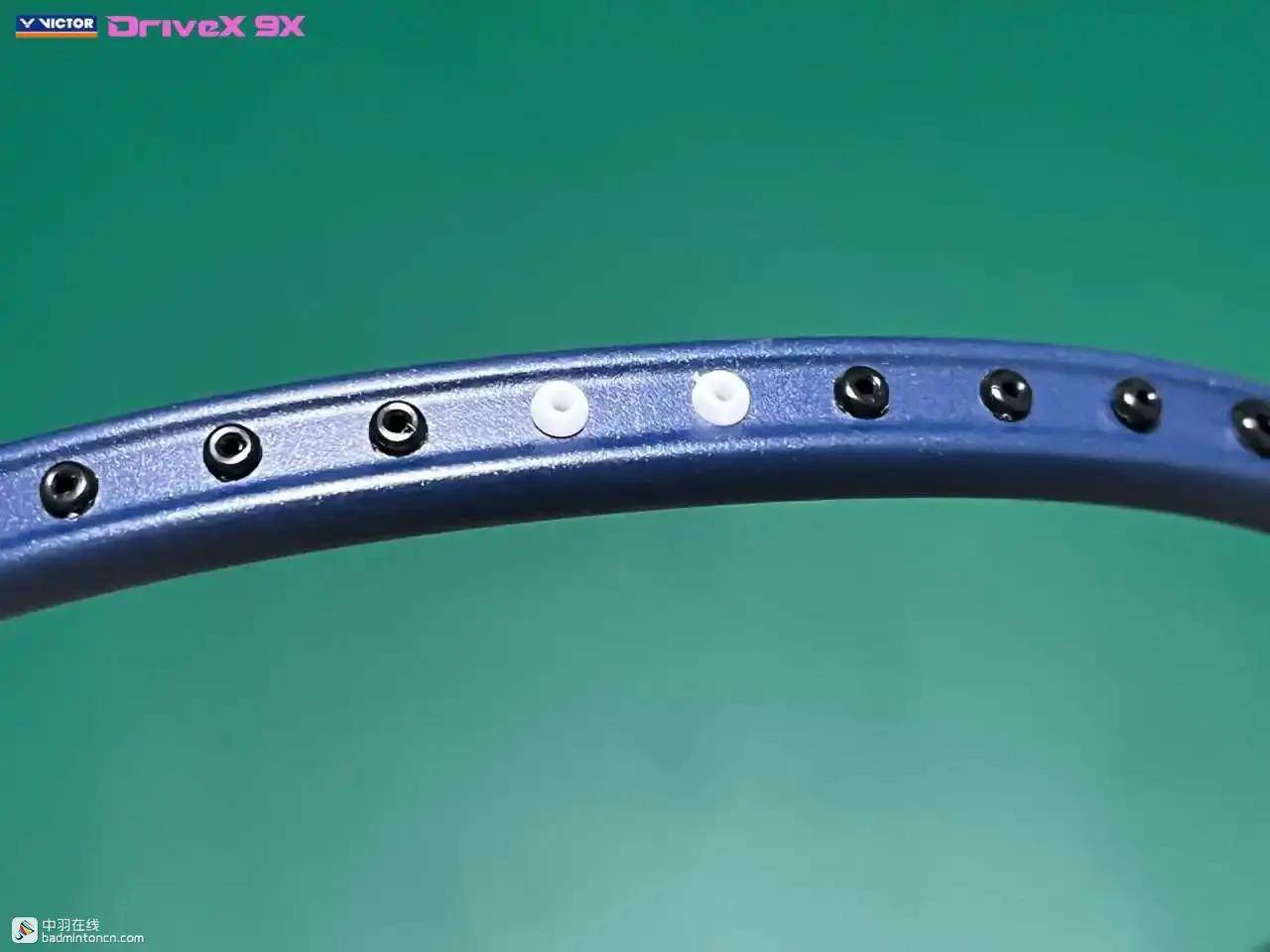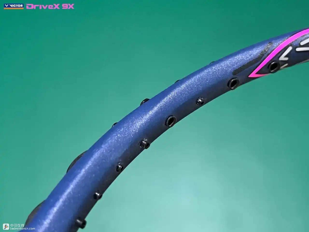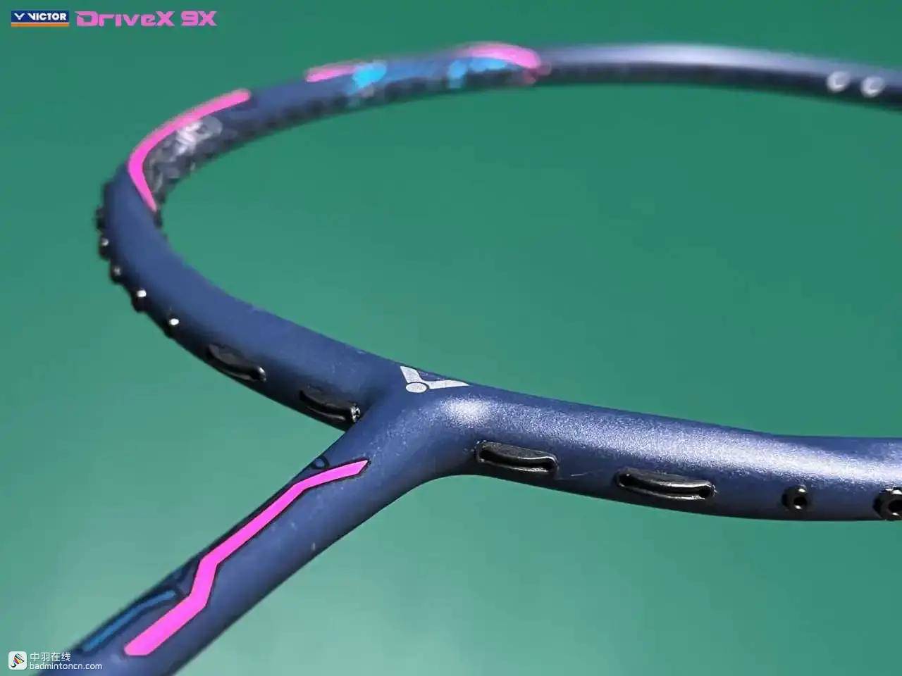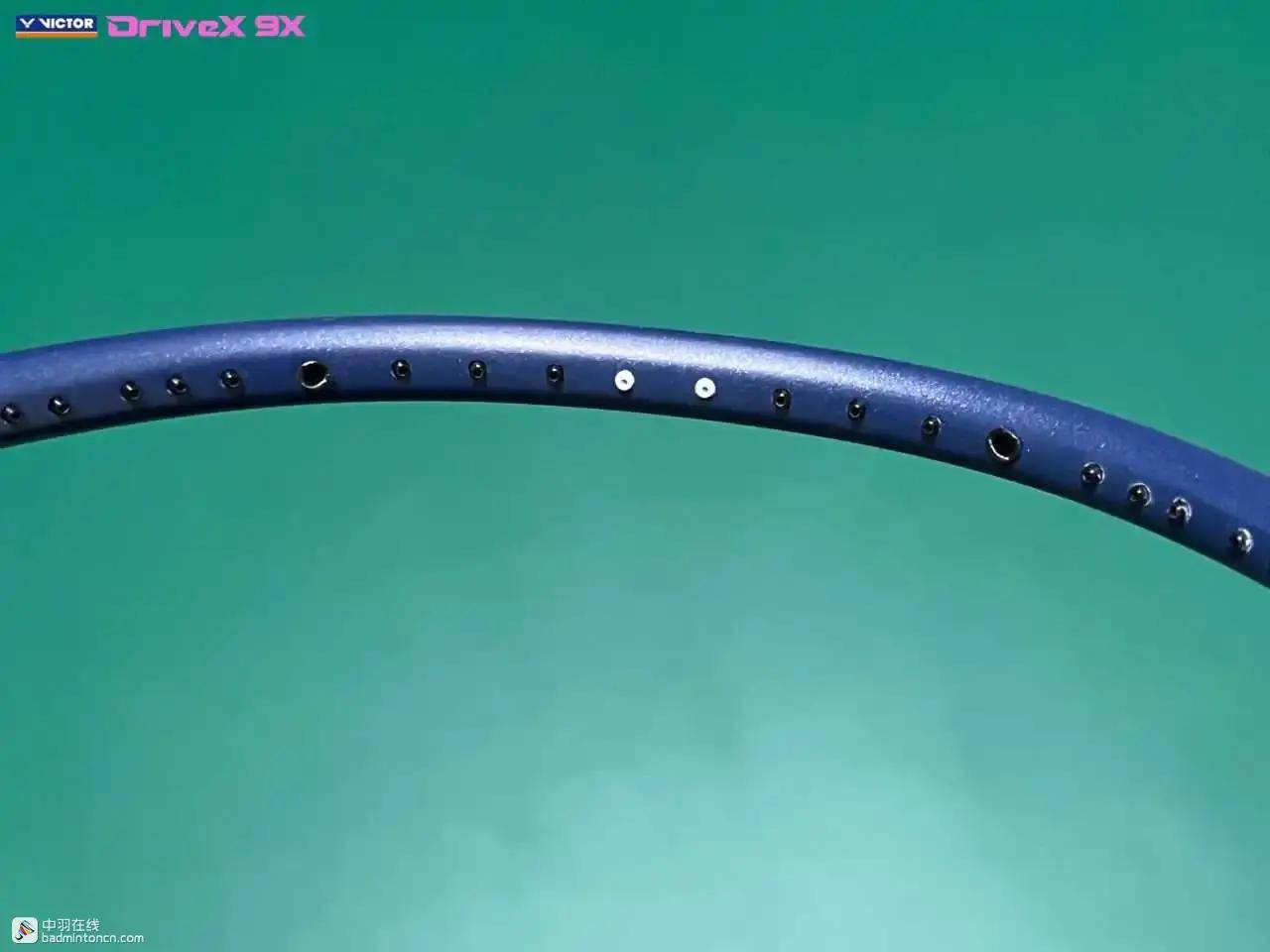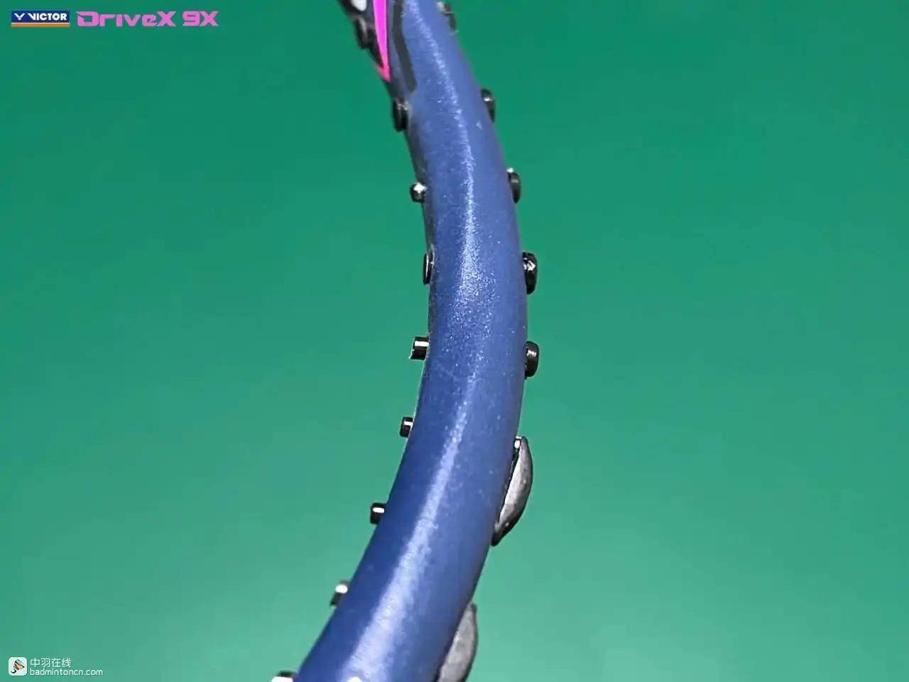 DX-9X在拍框外侧的3点、9点位置以上采用长线槽的结构设计,进一步提升拍框上半部分的挥速以及抗扭强度。