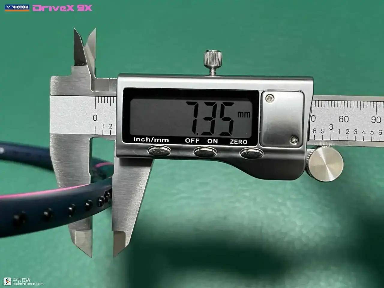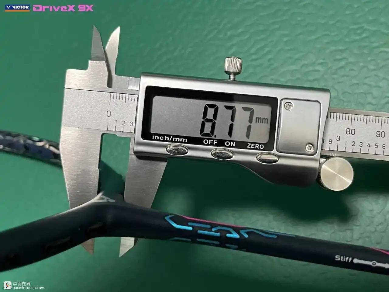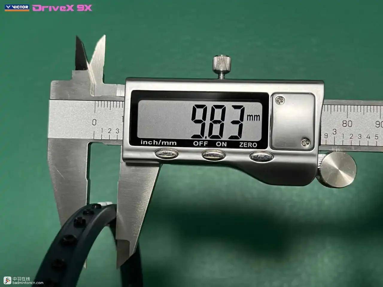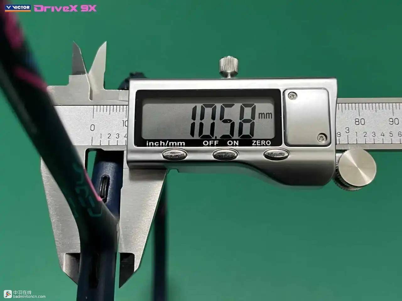 经过实测,DX-9X拍框底部(靠近T头处)宽度实测约为10.58mm,厚度约为8.77mm。