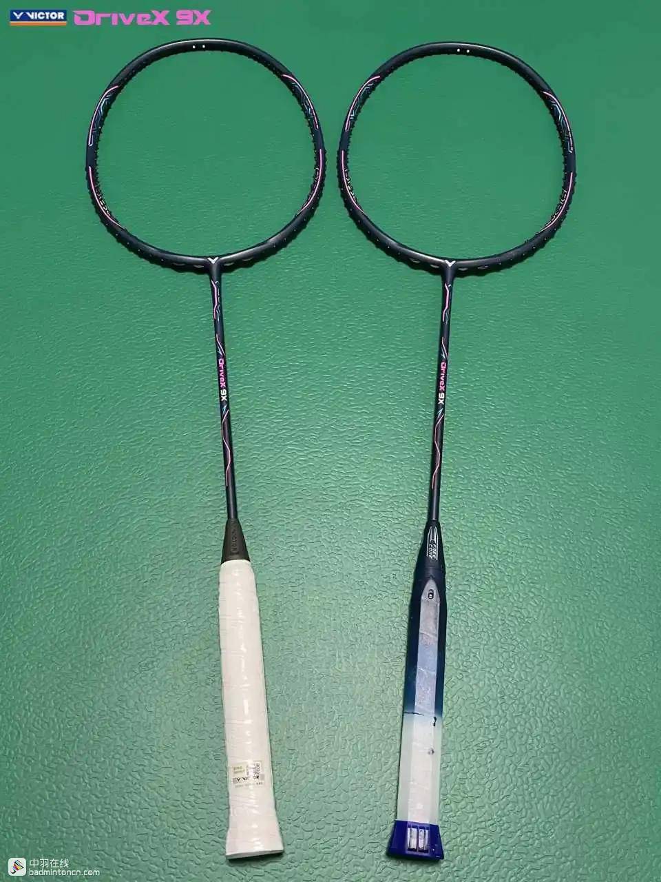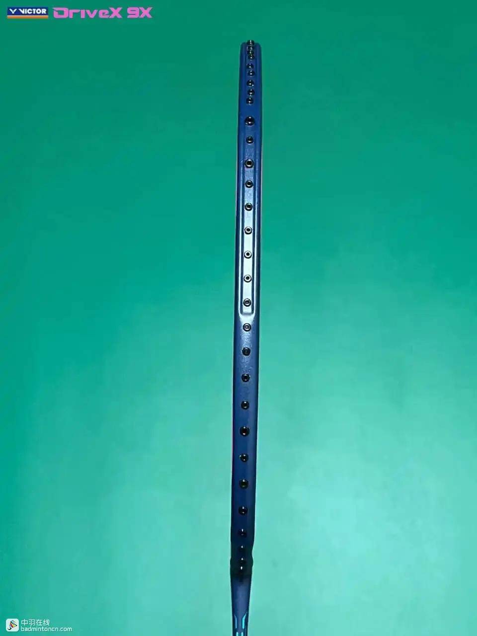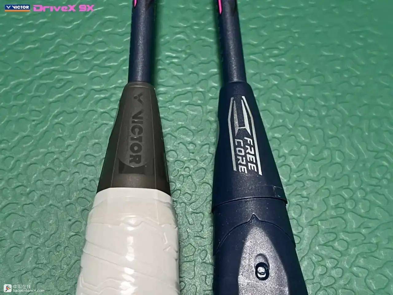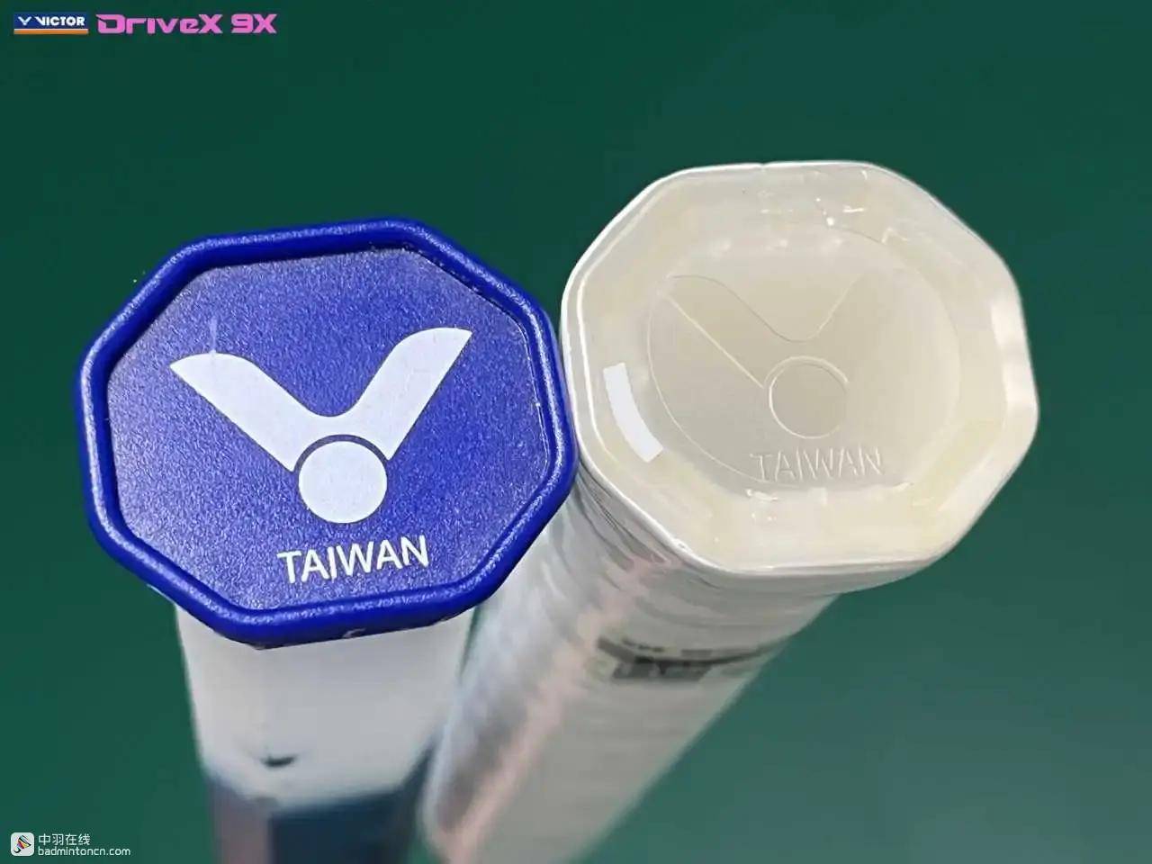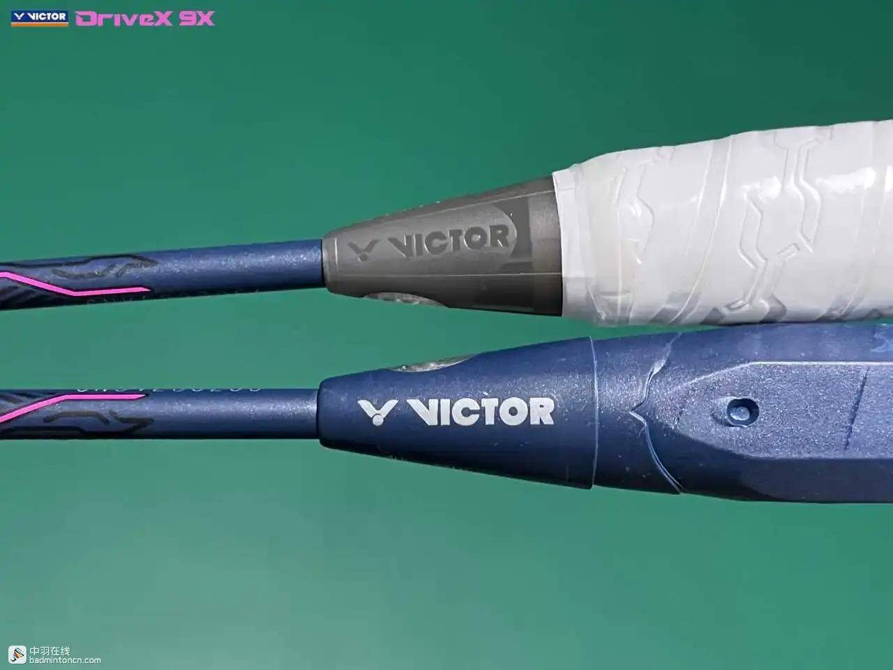 最后值得一提的是DX-9X的手柄。DX-9X开创威克多球拍悬浮科技手柄运用之先河,后来威克多的悬浮科技手柄球拍都开始采用透明锥盖和底盖的设计,因此DX-9X根据生产时间的不同,这两个部分也有所区别,早期批次采用的是藏青色的非透明锥盖,颜色和中杆相同,其上有悬浮科技手柄名称的标识,底盖则是传统的蓝底白LOGO;而后期生产的DX-9X则全部更换为了黑色的半透明锥盖以及透明底盖。