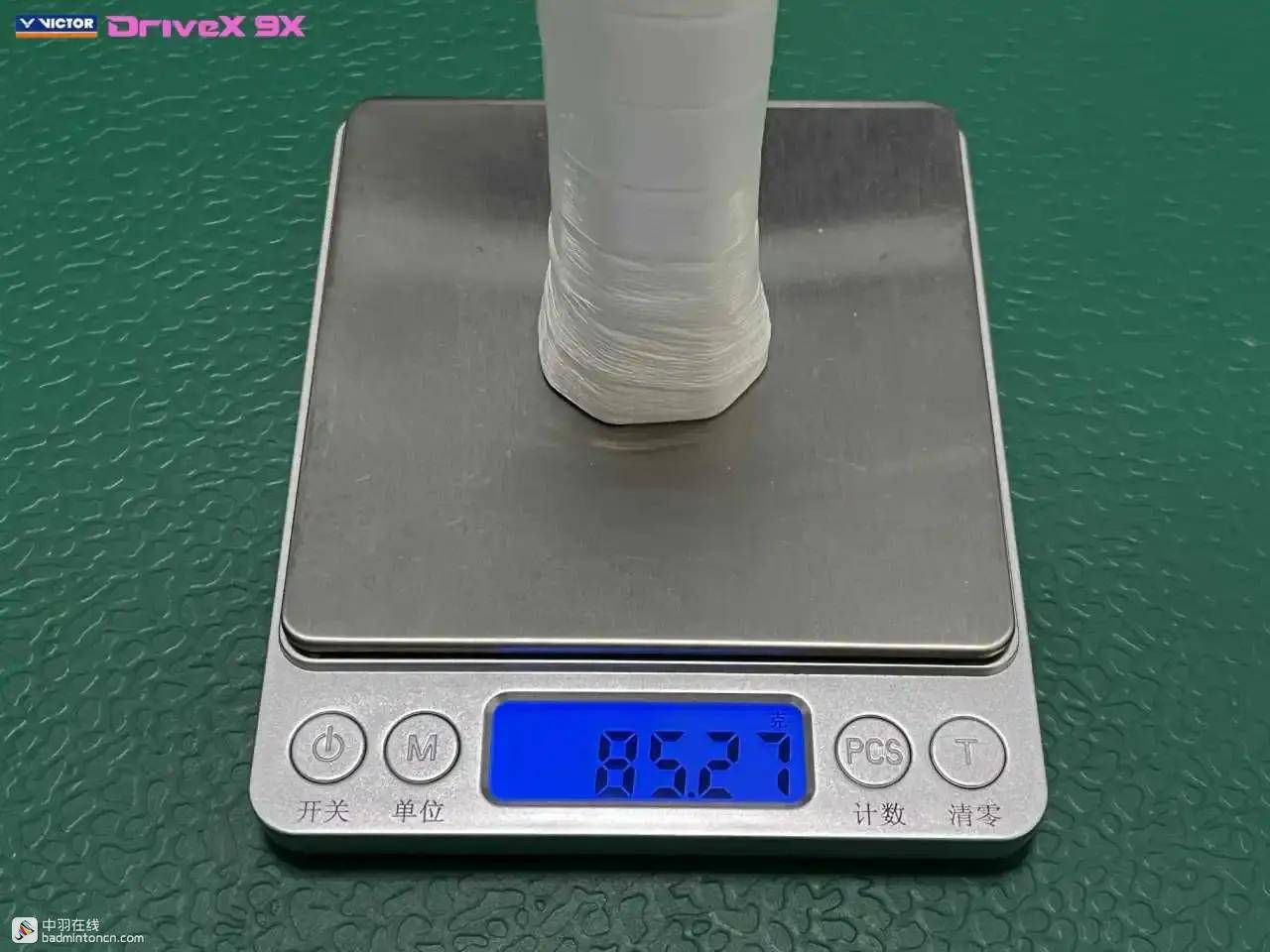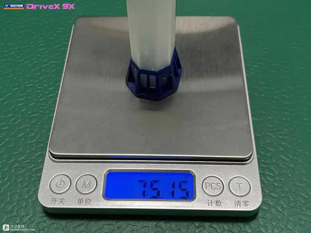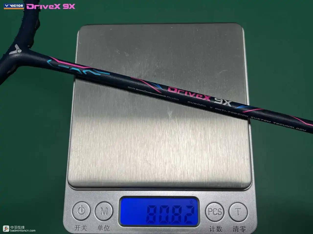 笔者手中的这支DX-9X规格为4U/G5,是蓝色底盖、非透明锥盖的早期版本,空拍带底胶状态下重约80.82g,平衡点约为303mm。