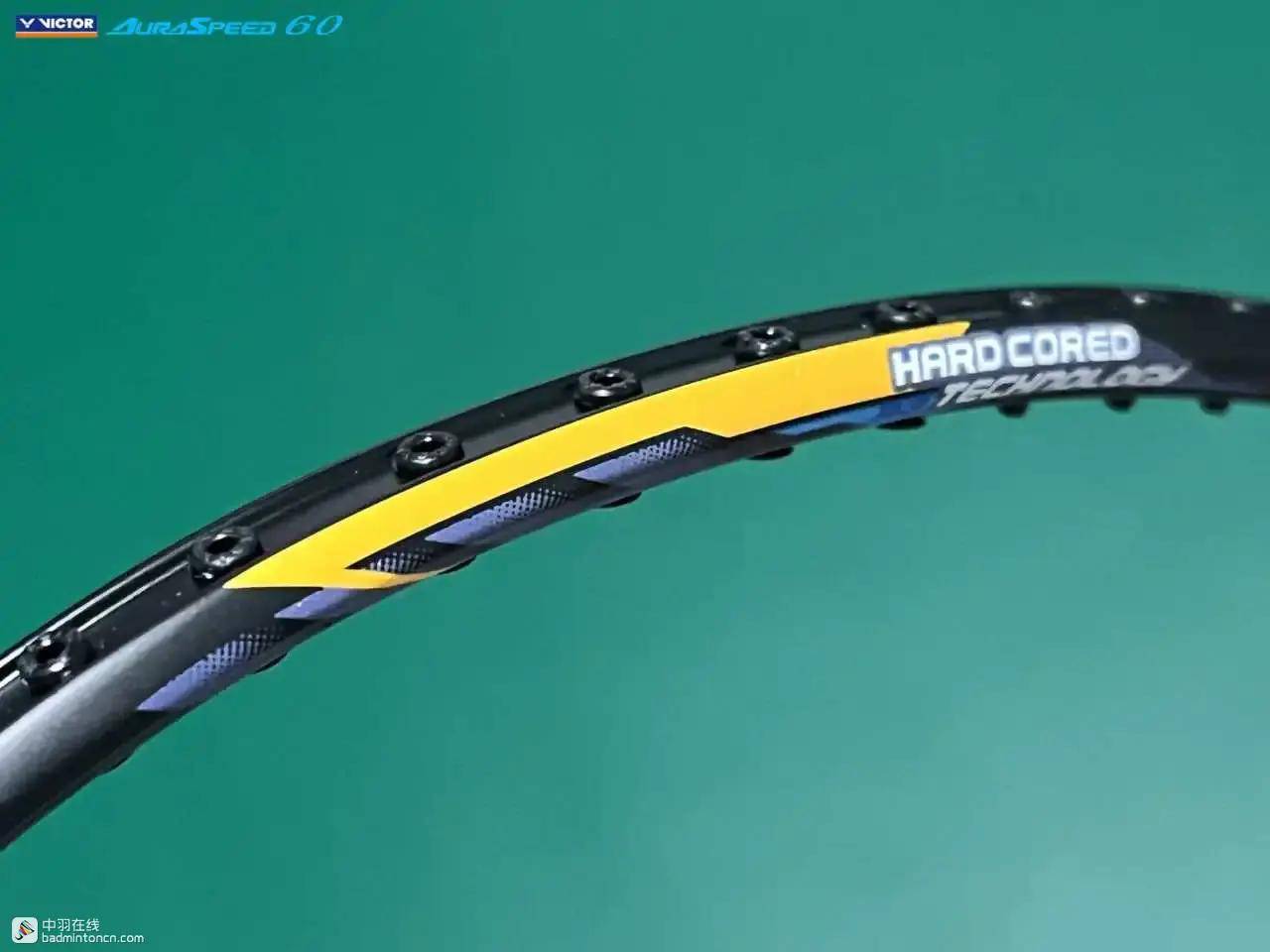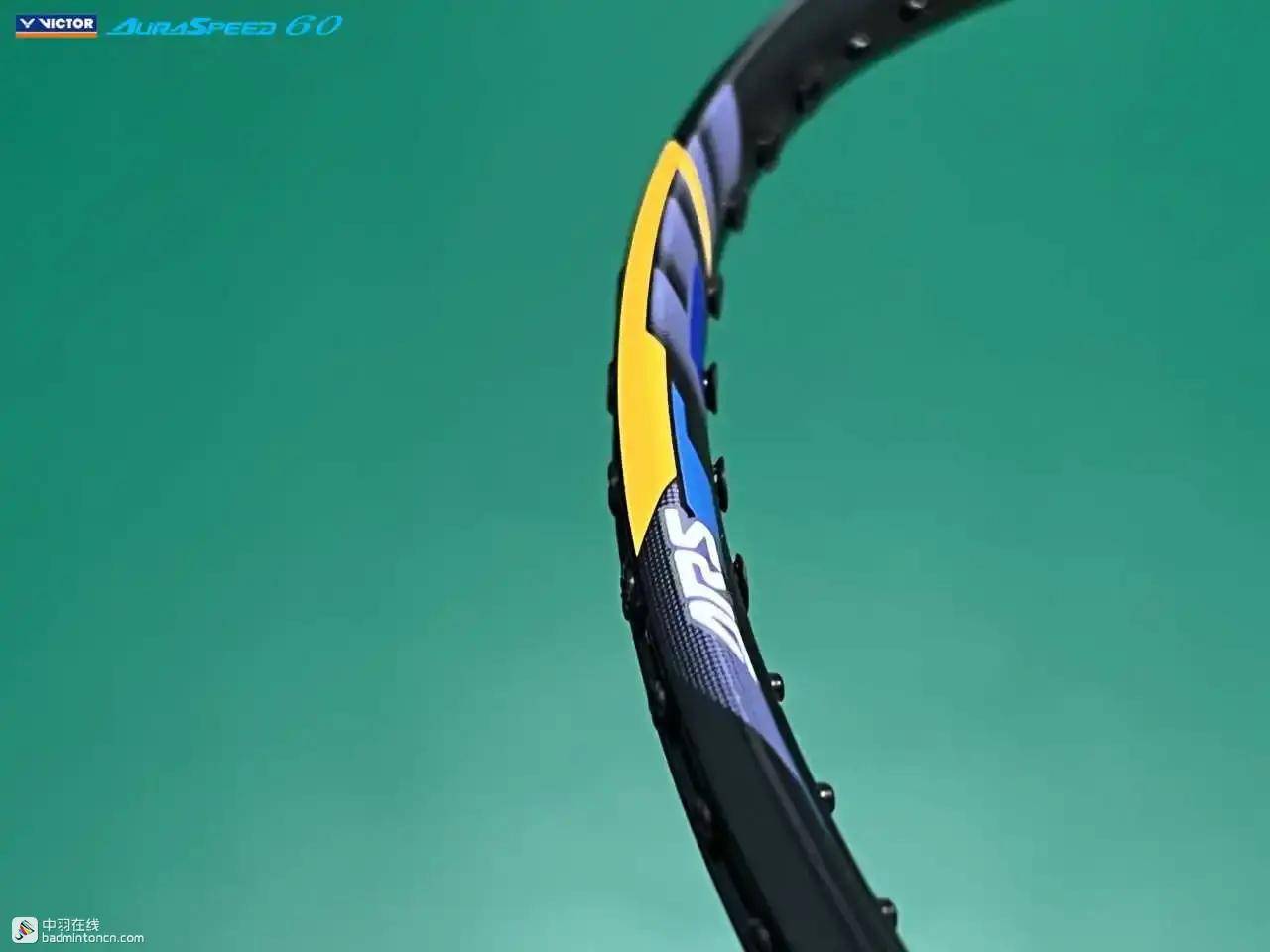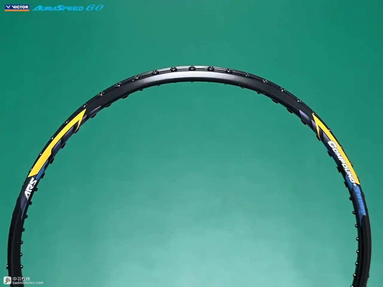 除了蛋头拍框是比较独特的设计以外,作为神速系列的一员,很多系列特色和主打科技在ARS-60身上自然是不会缺少的。在拍框截面结构上,ARS-60采用了神速系列经典的“COMPOUND-SWORD”复合框型,即复合剑樋结构,拍框按照上中下分为三段,上段采用扇形,进一步降低风阻。