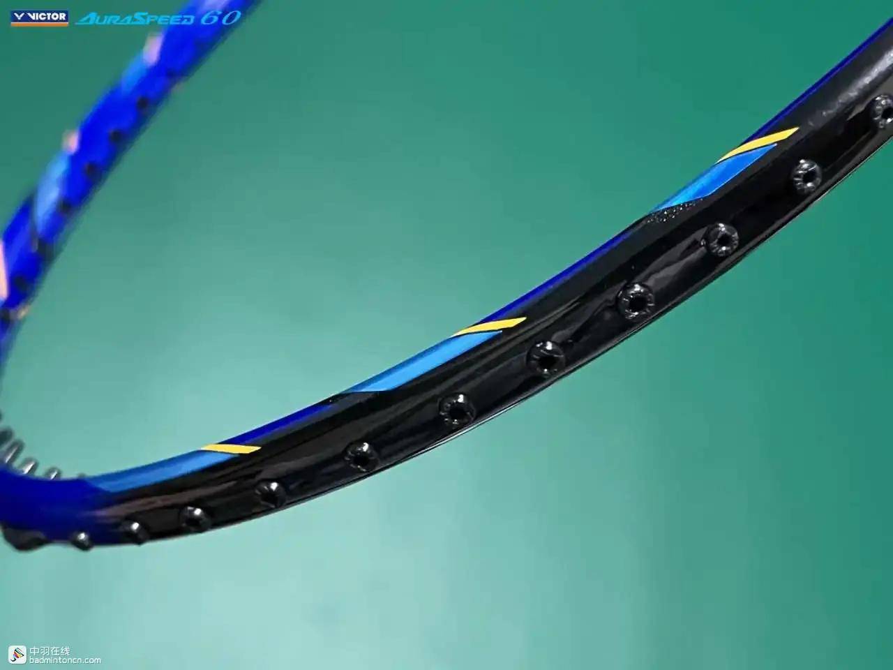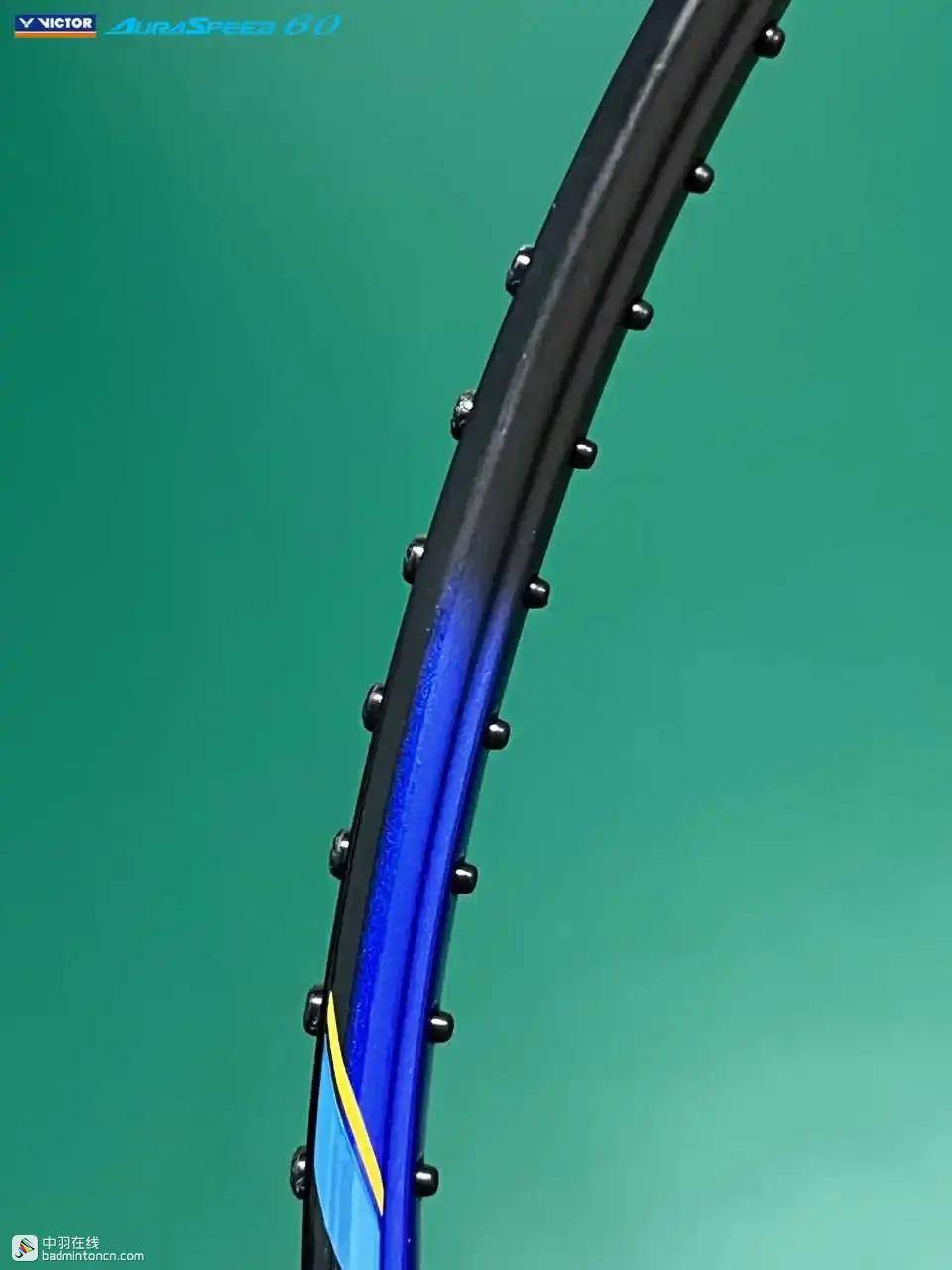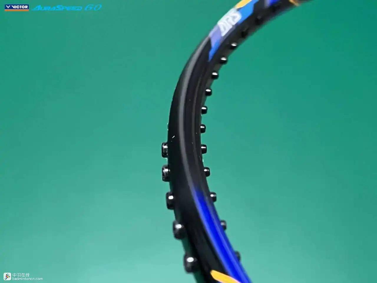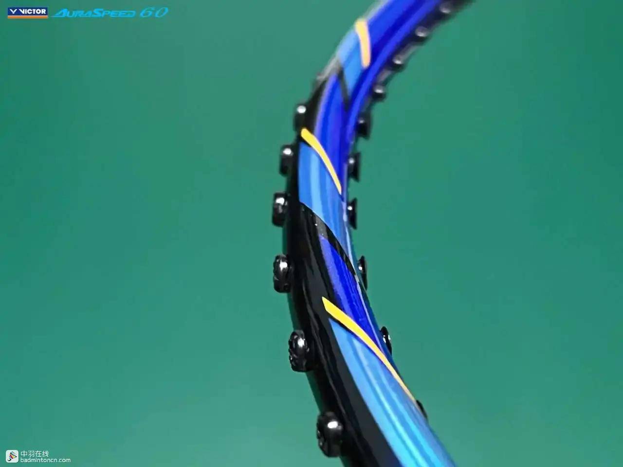 除了蛋头拍框是比较独特的设计以外,作为神速系列的一员,很多系列特色和主打科技在ARS-60身上自然是不会缺少的。在拍框截面结构上,ARS-60采用了神速系列经典的“COMPOUND-SWORD”复合框型,即复合剑樋结构,拍框按照上中下分为三段,上段采用扇形,进一步降低风阻。