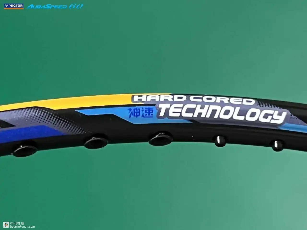 而另一面在白色的“HARD CORED TECHNOLOGY”上方还有细小的深蓝色汉字“神速”,标明了球拍的身份。