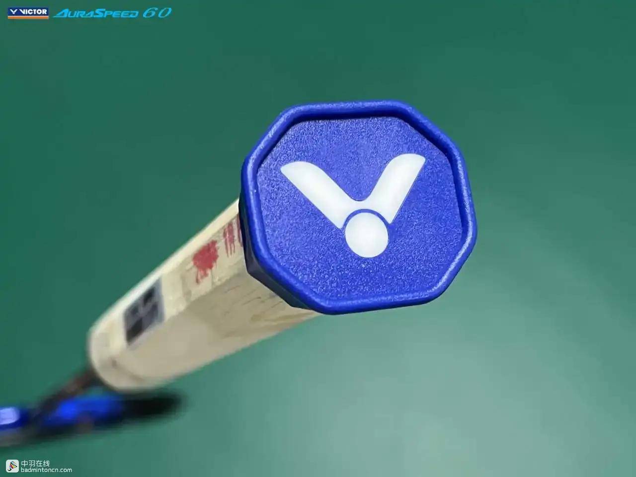 ARS-60的锥盖延续中杆的黑色哑光漆外观,正反两面的威克多LOGO和品牌名称沿用水蓝色镭射水标,和拍框及中杆保持了一致。