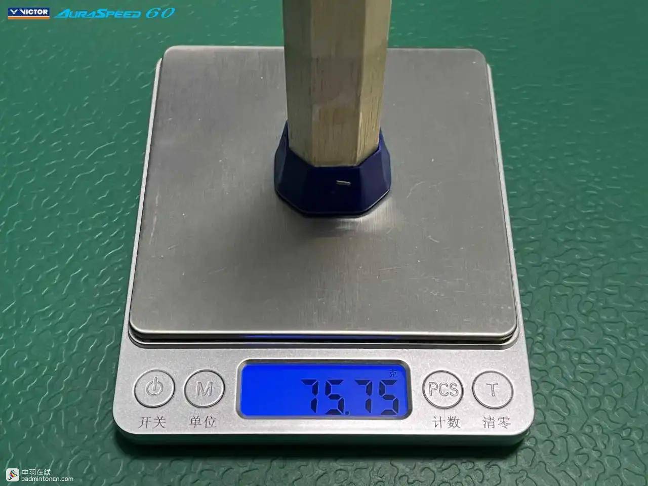 上线(威克多VBS-66N线,26磅)和手胶(缓震膜+李宁GP1000手胶)后,重约86.83g,平衡点约302mm。由此可见,ARS-60平衡点适中,配重均衡。