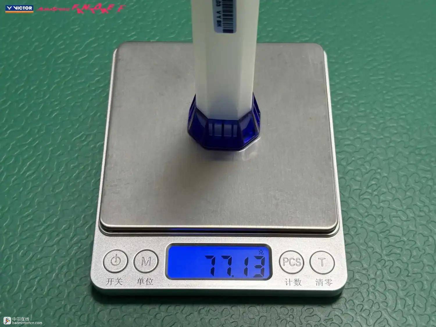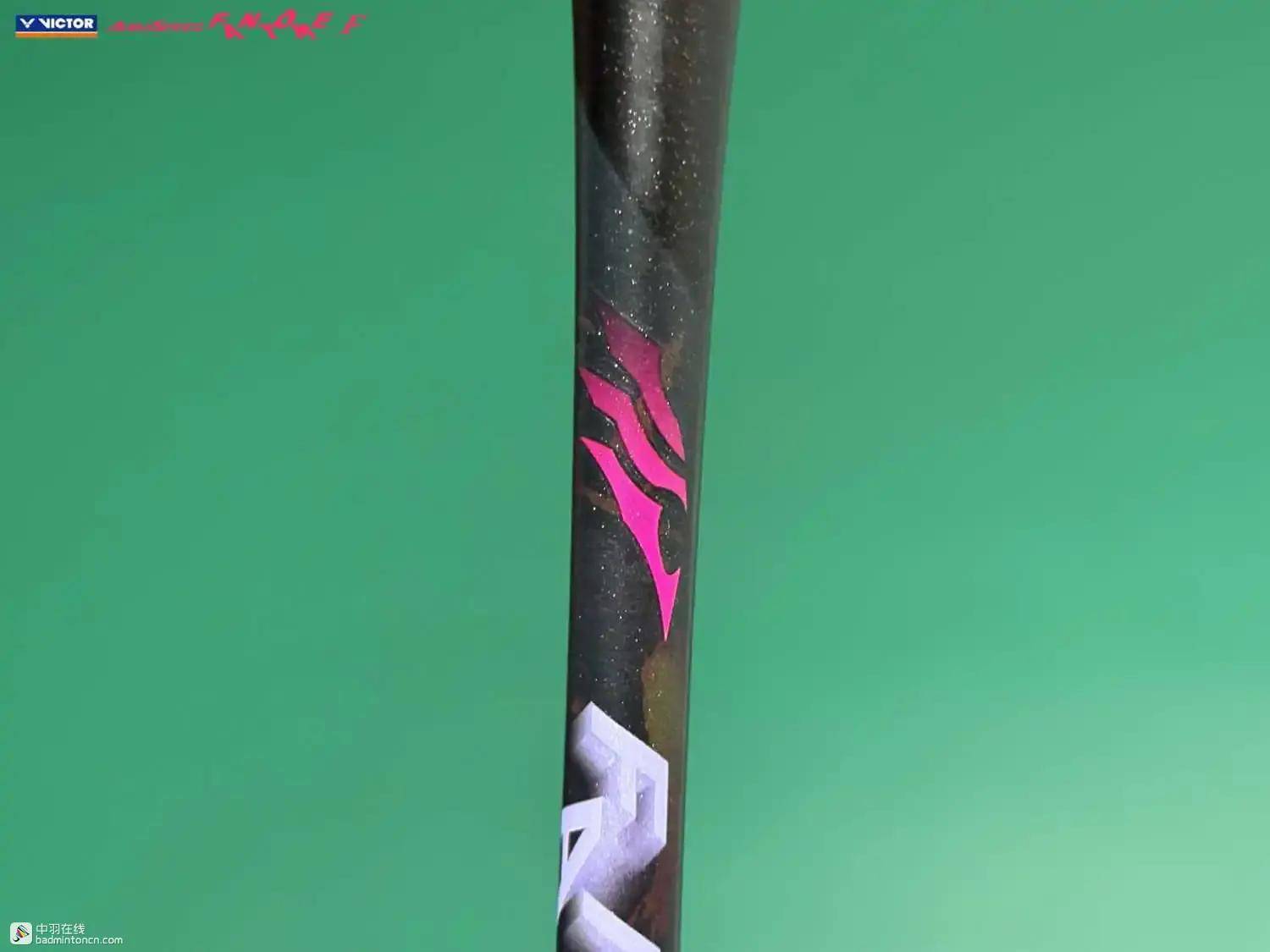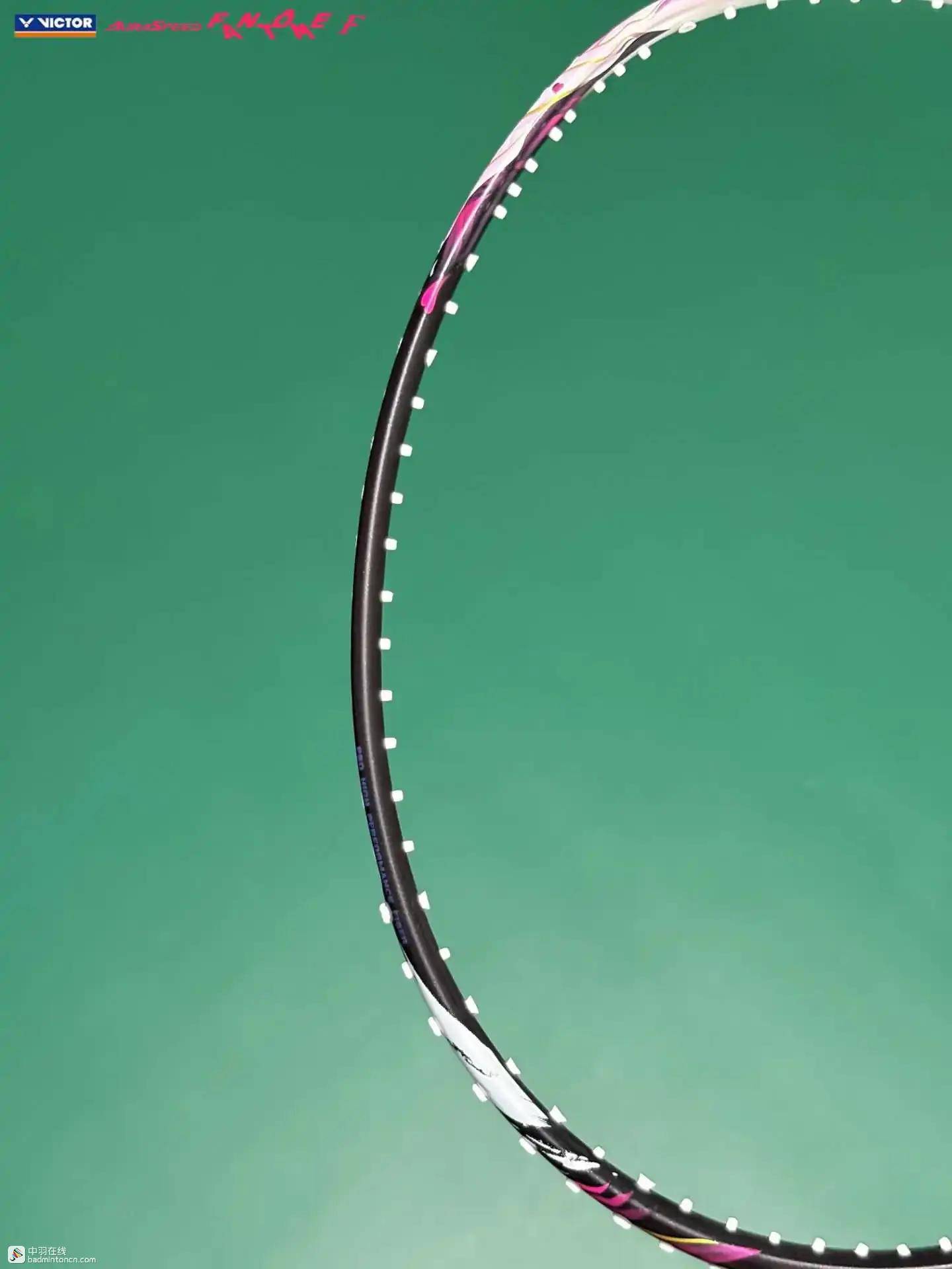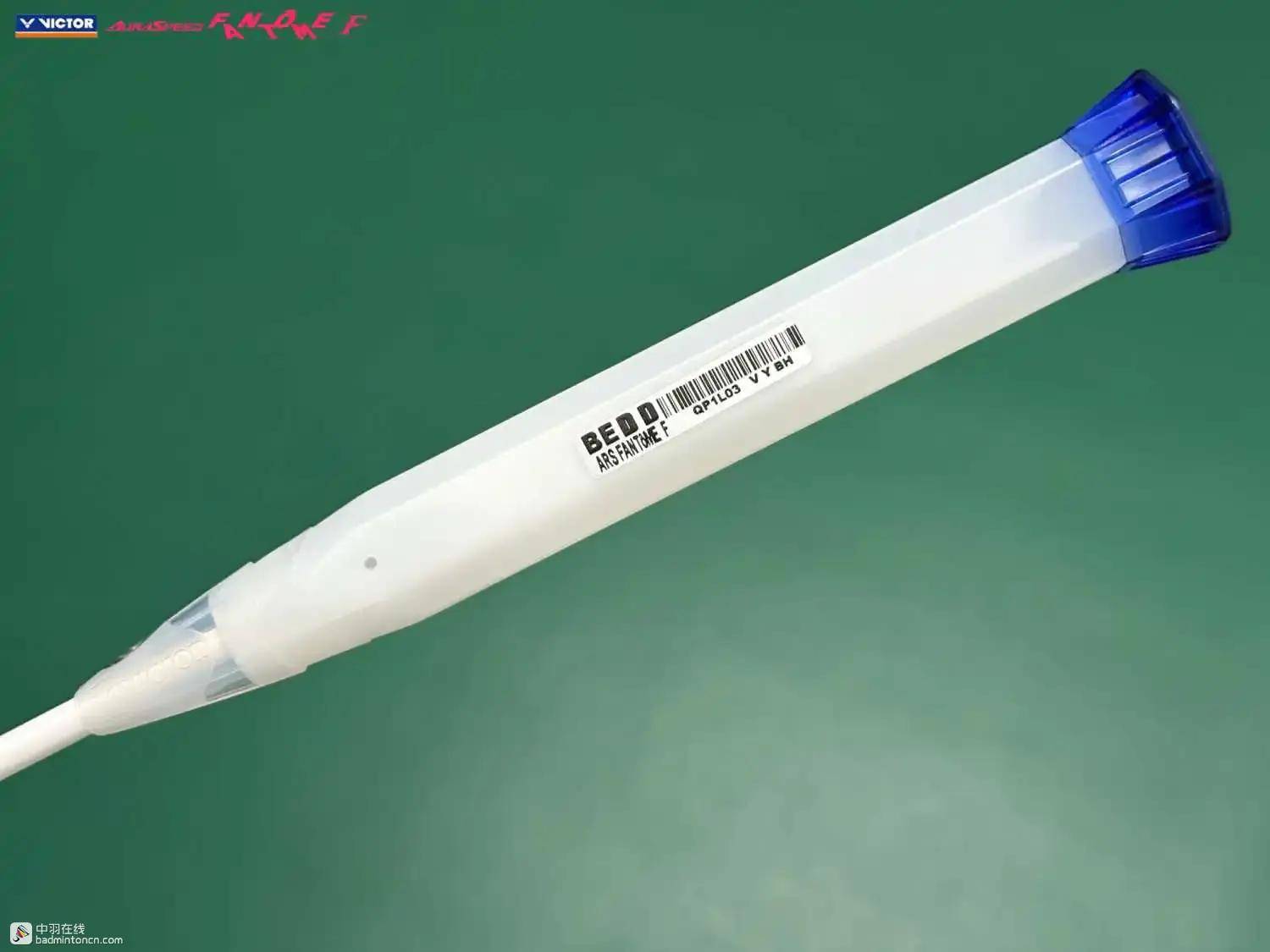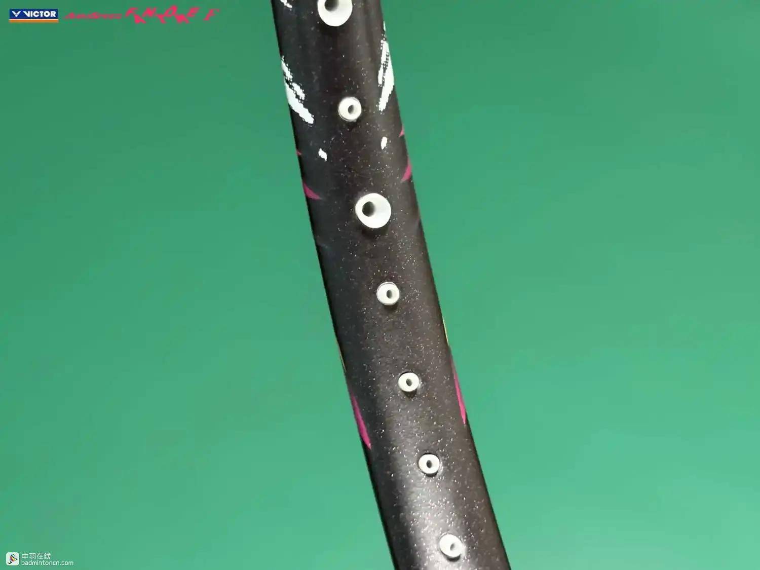 在图案设计上,ARS-影刃F也采用的是一种斜向的对应,左右来看,两边图案各是一种风格,以柔对刚;上下来看,也是如此。 在三通两侧,一侧以粉色配合柔和的线条,如飘动的丝带,在风中摇曳,再加上金色曲线的修饰,并点缀以爱心图案,温婉柔和,优雅丝滑,气质非凡。 而另一侧则是采用了截然不同的风格,三道玫红色的爪痕凸显出利刃般的凌厉感,神秘莫测。黑白相间类似泼墨的图案,展示了一种动若残影的速度感。 拍框上部的图案亦是同理,左右两部分的强烈对比正是ARS-影刃F涂装设计的耐人寻味之处,左右相对,一刚一柔,正如枝条密被利刺的玫瑰,虽表面娇柔,实则暗藏杀机。 ARS-影刃F的中杆由上部的黑色承接尾端的白色,过渡处采用大量玫瑰花瓣,两种色彩相互叠加,其中有的花瓣轮廓清晰,有的则采用模糊处理,似有远有近,有静有动,有虚有实,漫天飞花随风而舞,让人不由沁入那梦幻般的浪漫之中。 靠近三通处,影刃标志性的爪痕图案赫然呈现。 而影刃的英文字体醒目地印于中央,采用紫色,下方金色轮廓包围着紫宝石般的“F”字样。 T头中央的威克多LOGO水标同样采用了紫宝石质感的镭射表面处理。 总的来说,相较于ARS-影刃,ARS-影刃F在涂装的颜色选择、布局以及图案元素方面都有着较大的差异,颜色种类和图案细节都更为丰富。不过ARS-影刃F在原先的位置也保留了一些和ARS-影刃相对应的元素,例如中杆上型号名称的字体、拍框和中杆上的爪痕图案等等,也算是一种传承吧。 科技参数浅析 ARS-影刃F的规格为4U/G5,出厂即为空拍无底胶状态,去除热缩膜之后,重约77.13g,平衡点约为330mm。 上线(威克多VBS-61线,26磅)和手胶(缓震膜+威克多GR233手胶)之后,总重约为87.44g,平衡点则约为316mm。可以看到ARS-影刃F拥有非常高的平衡点,明显高于ARS-影刃,甚至比包括“龙牙家族”所有型号在内的威克多大部分球拍都要更高。 实测下,ARS-影刃F的拍身总长约为675mm,其中,拍框长度约252mm,中杆(锥盖顶部至T头两侧最下方线孔处)长度约215mm,手柄(底盖至锥盖顶部)则约为208mm。 相较于ARS-影刃,ARS-影刃F的拍框、中杆以及手柄长度都保持了一致。 ARS-影刃F延续了ARS-影刃的大拍面设计,同样采用76孔穿线模式。 二者的拍框宽度、形状也均相同。 在框型方面,ARS-影刃F亦传承了ARS-影刃的动力破风框(DYNAMIC-SWORD),拍框截面菱形结构根据位置不同有所区别,增大引导空气的截面积以提升挥速。 拍框左上(约10点和11点之间)、右上(约1点和2点之间)、左下(约7点和8点之间)、右下(约4点和5点之间)对称分布了四处浅凹槽,提升拍框的抗扭。 ARS-影刃F也继承了开创于ARS-影刃身上的薄翼拍框设计,拍框上的至薄处(即顶框12点位置附近)的厚度仅有5.0mm,对挥速的提升效果是非常可观的。 实测之下,ARS-影刃F拍框底部(靠近T头处)宽度实测约为11.43mm,厚度约为8.25mm。 拍框两侧(3点、9点钟方向)宽度则约为10.71mm,厚度约为5.81mm。 拍框顶部宽度约为10.82mm,厚度约为5.18mm。可见顶框的位置确实如参数所标注的那样,是非常纤薄的;而比笔者手中的ARS-影刃要厚了大约0.1至0.2mm的原因,除球拍制造和测量误差外,也有白色漆水一般比深色漆水更厚的因素。 此外,ARS-影刃F的拍框外侧采用线槽结构设计,线槽分布在上方的大半个拍框,比一般的半线槽要长,大约起始于4点和8点位置(由三通向上数第12和13个线孔之间)。 对比ARS-影刃F和ARS-影刃的线槽长度,可以看到二者也是相同的。 ARS-影刃F的拍框和ARS-影刃同样运用了纳米气凝胶(NANO AEROGEL),将其作为一种内发泡材料注入球拍框体,相比传统填充物更轻的它能够释放拍框的配重空间,让碳纤维在拍框上的用量得以增加,不仅能够使球拍更轻量,也使得拍框强度得到提升。 此外,拍框亦搭载强芯填充科技(HARD CORED TECHNOLOGY),提升拍框击球时的稳定性,保证出球的准确度。 ARS-影刃F采用6.6mm中杆,实际测量得中杆外径约为6.93mm(测量点位于中杆中点处)。 相比ARS-影刃的6.8mm中杆,ARS-影刃F的中杆更加纤细,更容易释放弹性;此外,ARS-影刃F在硬度方面也相较于ARS-影刃有所下调,更软弹的中杆有利于使用者更轻松地去发力。 中杆搭载标配的百洛碳素纤维(PYROFIL),保证出色的弹性性能。 另外,ARS-影刃F的中杆与拍框均导入PBO高性能纤维(PBO HIGH PERFORMANCE FIBER),航天级的强韧纤维材料,可大幅提升球拍整体的力量传导性能,使得球拍在保证重量不变的前提下亦兼备强韧度与舒适手感。 ARS-影刃F依然采用悬浮科技手柄,搭配半透明塑料锥盖及蓝色半透明底盖,锥盖内部无力量环结构,能够更充分地释放中杆摆动的自由度,让挥拍更流畅。 ARS-影刃F的建议穿线磅数为最高28磅,比同规格4U的ARS-影刃要低一磅。 上手体验详解 ARS-影刃F拥有非常显著的头重感,上手挥拍时,拍头的惯性明显,随挥感非常强烈,和5U规格的TK-龙牙MUSE有些许相似,这种平衡点很高的球拍现在相对来说不多,因此对于大部分球友来说,在初上手时可能需要一定的适应时间,尤其是在控球方面,较重的拍头增加了精确控制落点的难度,需要一个磨合的过程。 因为头重的缘故,ARS-影刃F的挥重明显大于ARS-影刃,而且中杆更软、更弹,更容易打出形变,总体头重杆软的特点使得其非常好上手,尤其是上手挥拍不用太多主动发力就能把球打出去,但同时击球后中杆的颤动感比ARS-影刃明显,出球的准确度相比ARS-影刃打了折扣,有时会感觉出球有些过于弹,失去了ARS-影
