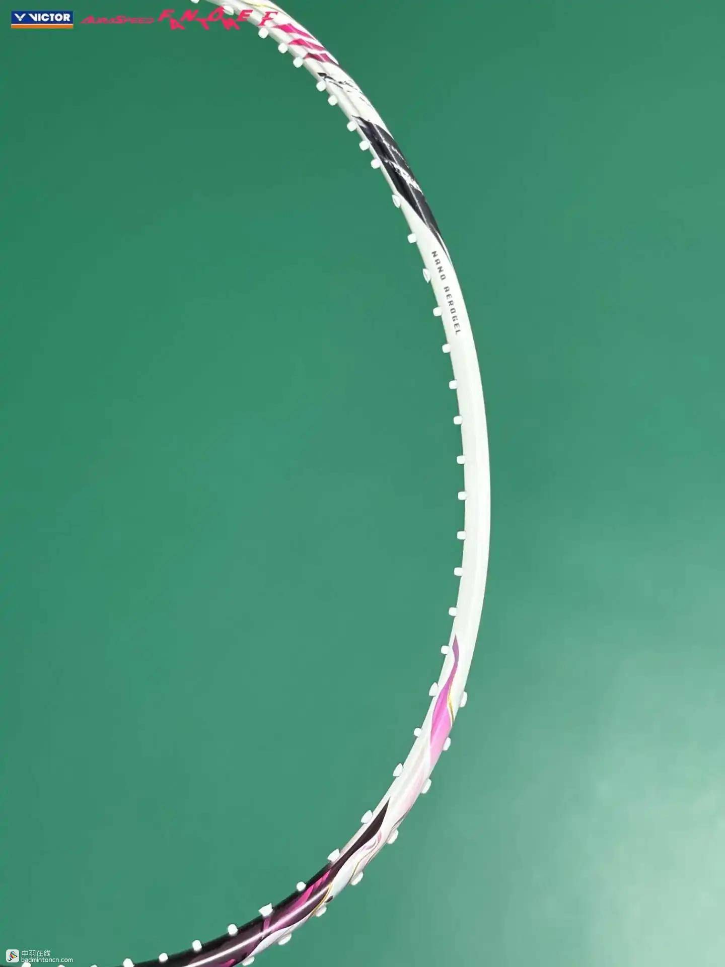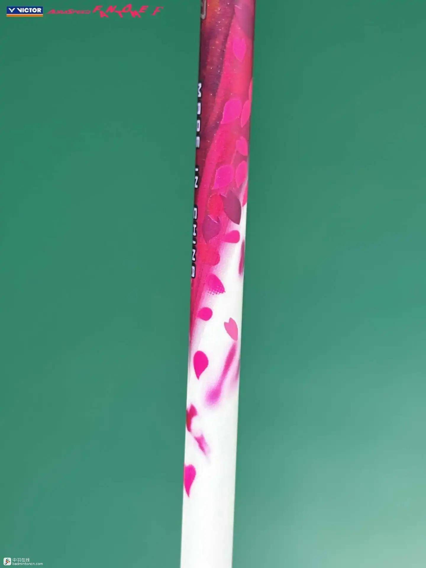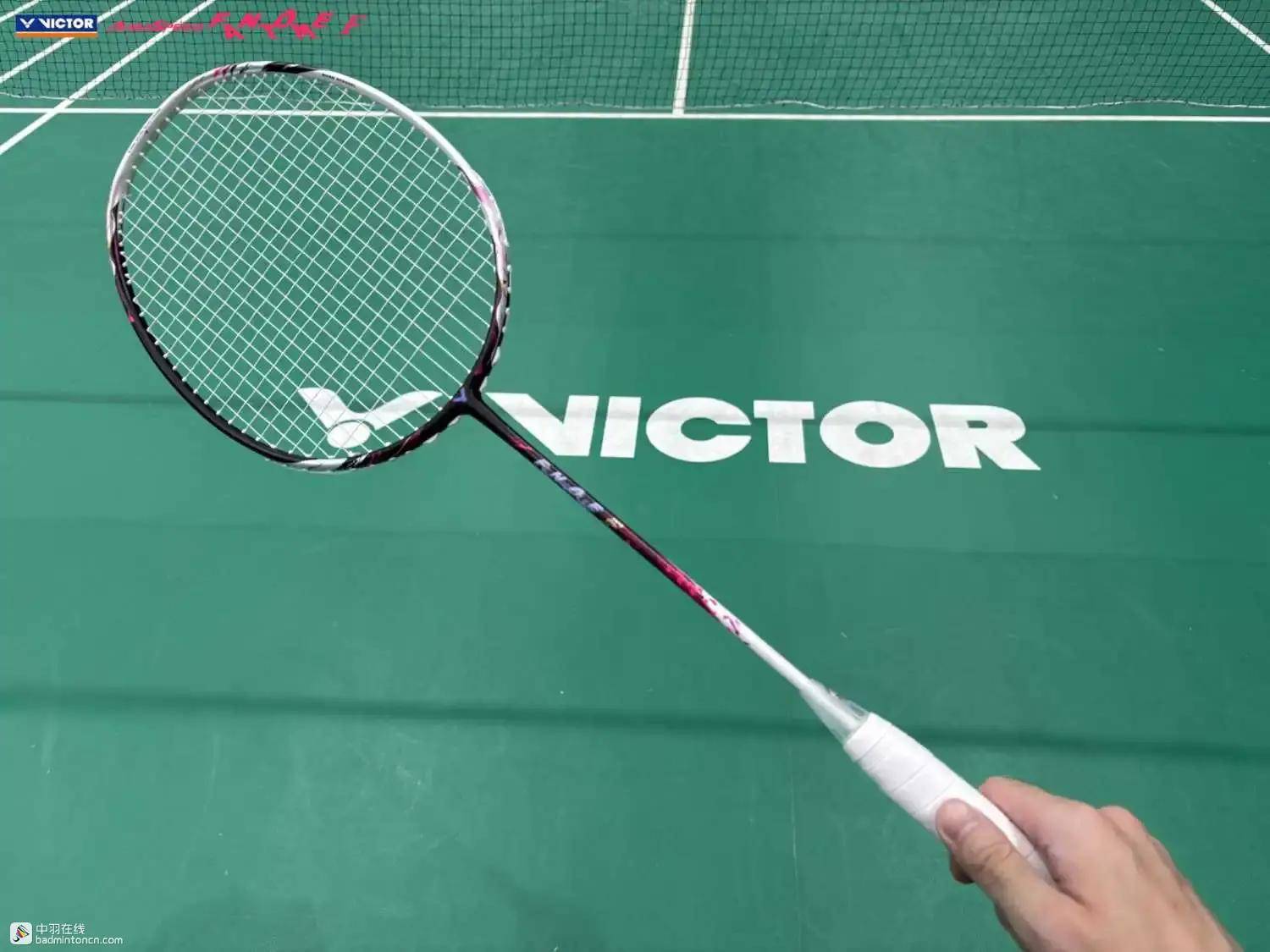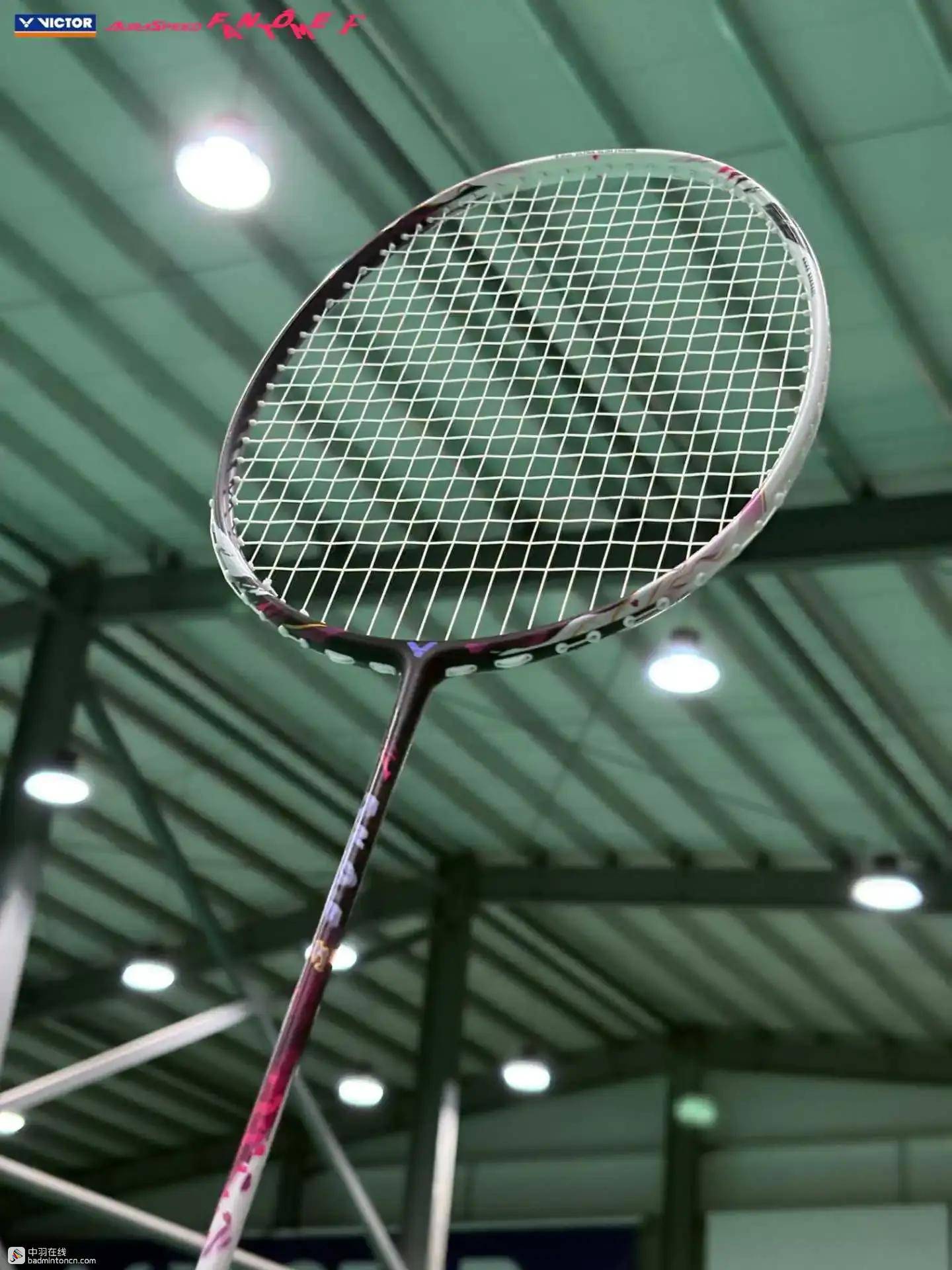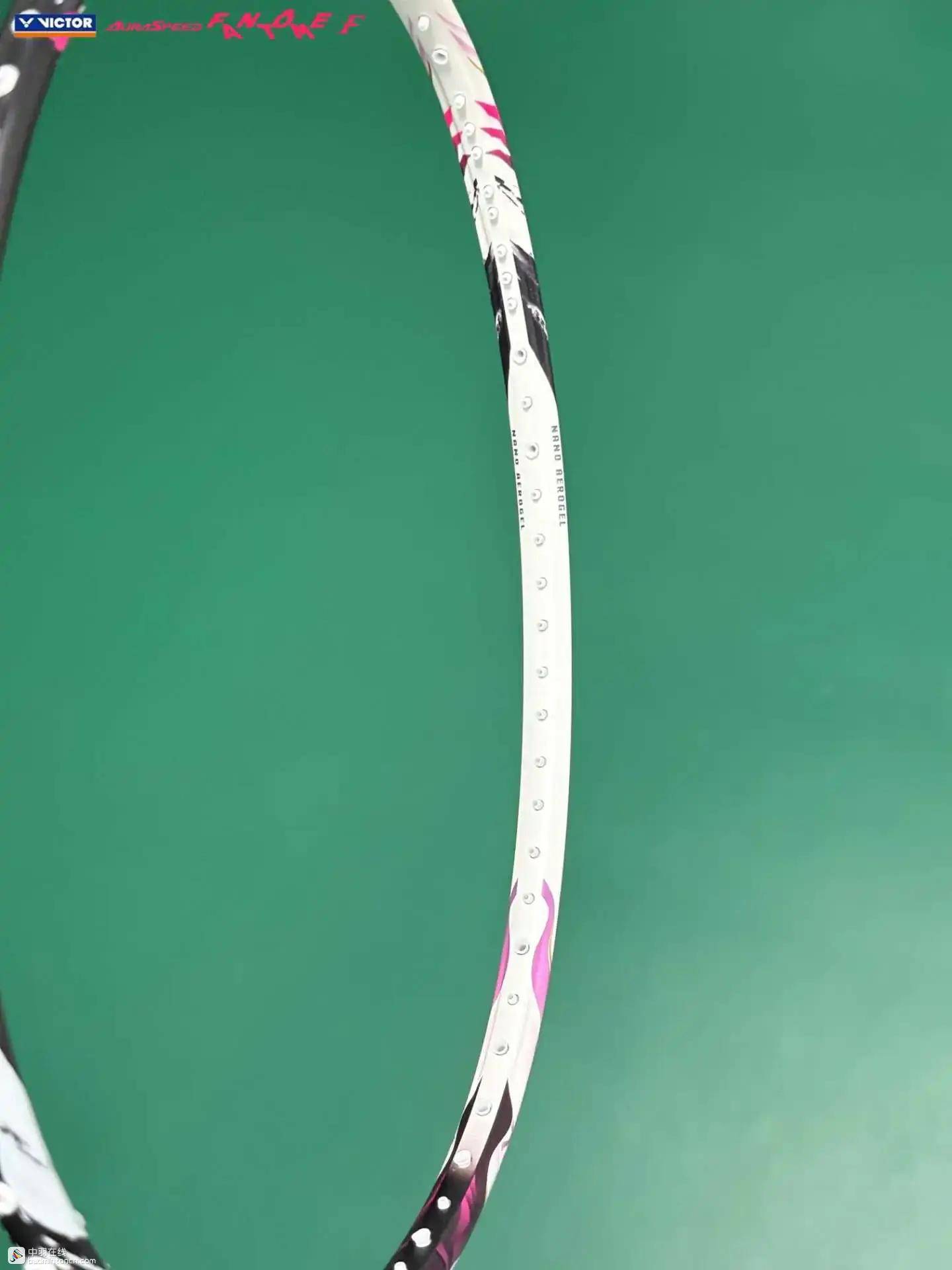 在图案设计上,ARS-影刃F也采用的是一种斜向的对应,左右来看,两边图案各是一种风格,以柔对刚;上下来看,也是如此。 在三通两侧,一侧以粉色配合柔和的线条,如飘动的丝带,在风中摇曳,再加上金色曲线的修饰,并点缀以爱心图案,温婉柔和,优雅丝滑,气质非凡。 而另一侧则是采用了截然不同的风格,三道玫红色的爪痕凸显出利刃般的凌厉感,神秘莫测。黑白相间类似泼墨的图案,展示了一种动若残影的速度感。 拍框上部的图案亦是同理,左右两部分的强烈对比正是ARS-影刃F涂装设计的耐人寻味之处,左右相对,一刚一柔,正如枝条密被利刺的玫瑰,虽表面娇柔,实则暗藏杀机。 ARS-影刃F的中杆由上部的黑色承接尾端的白色,过渡处采用大量玫瑰花瓣,两种色彩相互叠加,其中有的花瓣轮廓清晰,有的则采用模糊处理,似有远有近,有静有动,有虚有实,漫天飞花随风而舞,让人不由沁入那梦幻般的浪漫之中。 靠近三通处,影刃标志性的爪痕图案赫然呈现。 而影刃的英文字体醒目地印于中央,采用紫色,下方金色轮廓包围着紫宝石般的“F”字样。 T头中央的威克多LOGO水标同样采用了紫宝石质感的镭射表面处理。 总的来说,相较于ARS-影刃,ARS-影刃F在涂装的颜色选择、布局以及图案元素方面都有着较大的差异,颜色种类和图案细节都更为丰富。不过ARS-影刃F在原先的位置也保留了一些和ARS-影刃相对应的元素,例如中杆上型号名称的字体、拍框和中杆上的爪痕图案等等,也算是一种传承吧。 科技参数浅析 ARS-影刃F的规格为4U/G5,出厂即为空拍无底胶状态,去除热缩膜之后,重约77.13g,平衡点约为330mm。 上线(威克多VBS-61线,26磅)和手胶(缓震膜+威克多GR233手胶)之后,总重约为87.44g,平衡点则约为316mm。可以看到ARS-影刃F拥有非常高的平衡点,明显高于ARS-影刃,甚至比包括“龙牙家族”所有型号在内的威克多大部分球拍都要更高。 实测下,ARS-影刃F的拍身总长约为675mm,其中,拍框长度约252mm,中杆(锥盖顶部至T头两侧最下方线孔处)长度约215mm,手柄(底盖至锥盖顶部)则约为208mm。 相较于ARS-影刃,ARS-影刃F的拍框、中杆以及手柄长度都保持了一致。 ARS-影刃F延续了ARS-影刃的大拍面设计,同样采用76孔穿线模式。 二者的拍框宽度、形状也均相同。 在框型方面,ARS-影刃F亦传承了ARS-影刃的动力破风框(DYNAMIC-SWORD),拍框截面菱形结构根据位置不同有所区别,增大引导空气的截面积以提升挥速。 拍框左上(约10点和11点之间)、右上(约1点和2点之间)、左下(约7点和8点之间)、右下(约4点和5点之间)对称分布了四处浅凹槽,提升拍框的抗扭。 ARS-影刃F也继承了开创于ARS-影刃身上的薄翼拍框设计,拍框上的至薄处(即顶框12点位置附近)的厚度仅有5.0mm,对挥速的提升效果是非常可观的。 实测之下,ARS-影刃F拍框底部(靠近T头处)宽度实测约为11.43mm,厚度约为8.25mm。 拍框两侧(3点、9点钟方向)宽度则约为10.71mm,厚度约为5.81mm。 拍框顶部宽度约为10.82mm,厚度约为5.18mm。可见顶框的位置确实如参数所标注的那样,是非常纤薄的;而比笔者手中的ARS-影刃要厚了大约0.1至0.2mm的原因,除球拍制造和测量误差外,也有白色漆水一般比深色漆水更厚的因素。 此外,ARS-影刃F的拍框外侧采用线槽结构设计,线槽分布在上方的大半个拍框,比一般的半线槽要长,大约起始于4点和8点位置(由三通向上数第12和13个线孔之间)。 对比ARS-影刃F和ARS-影刃的线槽长度,可以看到二者也是相同的。 ARS-影刃F的拍框和ARS-影刃同样运用了纳米气凝胶(NANO AEROGEL),将其作为一种内发泡材料注入球拍框体,相比传统填充物更轻的它能够释放拍框的配重空间,让碳纤维在拍框上的用量得以增加,不仅能够使球拍更轻量,也使得拍框强度得到提升。 此外,拍框亦搭载强芯填充科技(HARD CORED TECHNOLOGY),提升拍框击球时的稳定性,保证出球的准确度。 ARS-影刃F采用6.6mm中杆,实际测量得中杆外径约为6.93mm(测量点位于中杆中点处)。 相比ARS-影刃的6.8mm中杆,ARS-影刃F的中杆更加纤细,更容易释放弹性;此外,ARS-影刃F在硬度方面也相较于ARS-影刃有所下调,更软弹的中杆有利于使用者更轻松地去发力。 中杆搭载标配的百洛碳素纤维(PYROFIL),保证出色的弹性性能。 另外,ARS-影刃F的中杆与拍框均导入PBO高性能纤维(PBO HIGH PERFORMANCE FIBER),航天级的强韧纤维材料,可大幅提升球拍整体的力量传导性能,使得球拍在保证重量不变的前提下亦兼备强韧度与舒适手感。 ARS-影刃F依然采用悬浮科技手柄,搭配半透明塑料锥盖及蓝色半透明底盖,锥盖内部无力量环结构,能够更充分地释放中杆摆动的自由度,让挥拍更流畅。 ARS-影刃F的建议穿线磅数为最高28磅,比同规格4U的ARS-影刃要低一磅。 上手体验详解 ARS-影刃F拥有非常显著的头重感,上手挥拍时,拍头的惯性明显,随挥感非常强烈,和5U规格的TK-龙牙MUSE有些许相似,这种平衡点很高的球拍现在相对来说不多,因此对于大部分球友来说,在初上手时可能需要一定的适应时间,尤其是在控球方面,较重的拍头增加了精确控制落点的难度,需要一个磨合的过程。 因为头重的缘故,ARS-影刃F的挥重明显大于ARS-影刃,而且中杆更软、更弹,更容易打出形变,总体头重杆软的特点使得其非常好上手,尤其是上手挥拍不用太多主动发力就能把球打出去,但同时击球后中杆的颤动感比ARS-影刃明显,出球的准确度相比ARS-影刃打了折扣,有时会感觉出球有些过于弹,失去了ARS-影