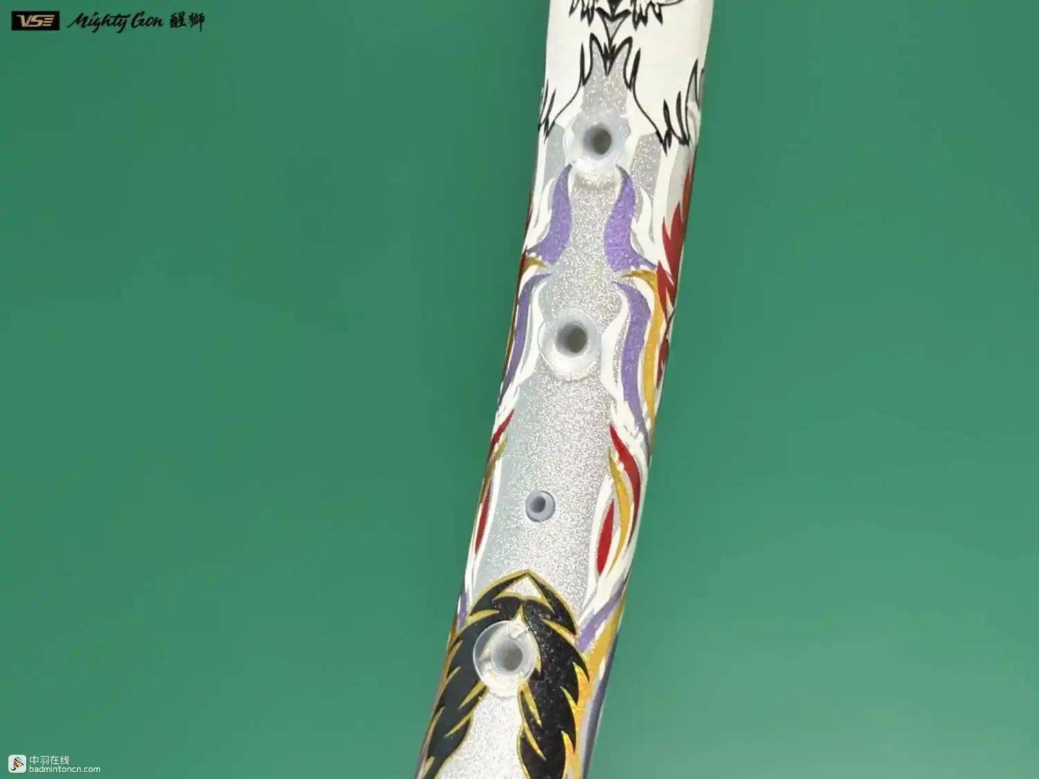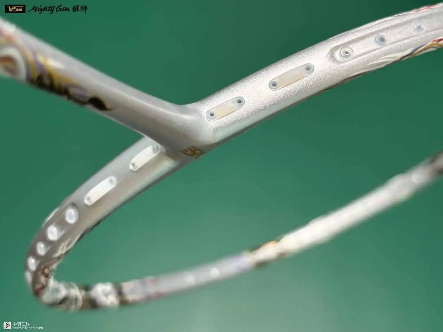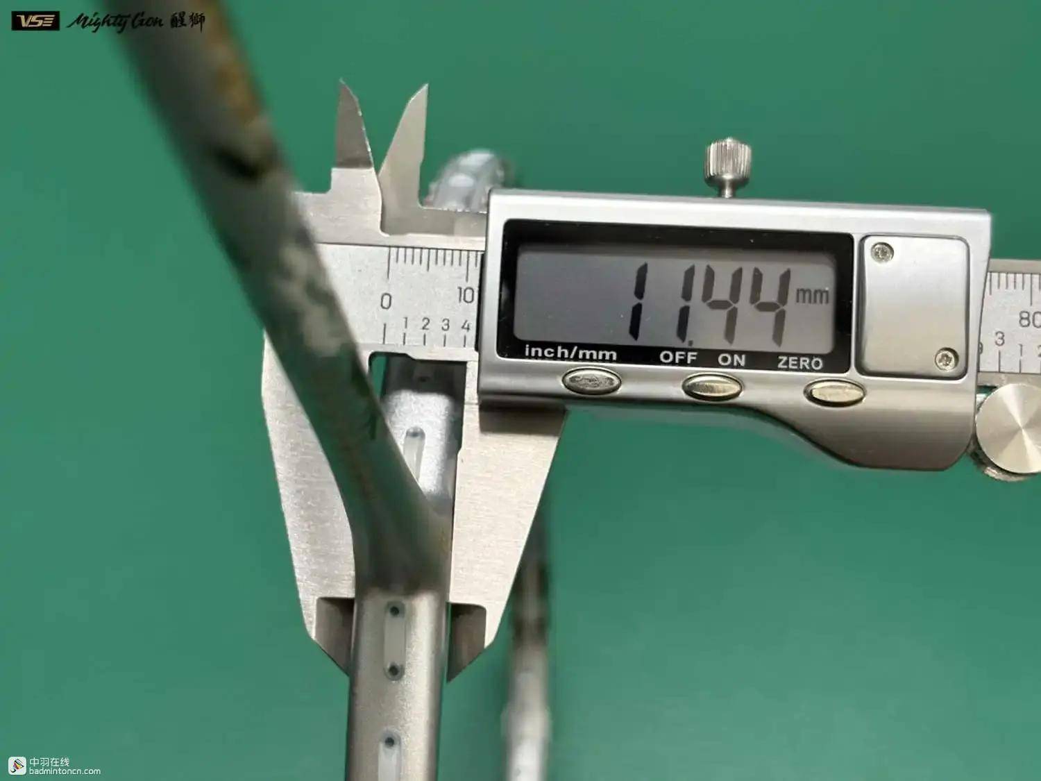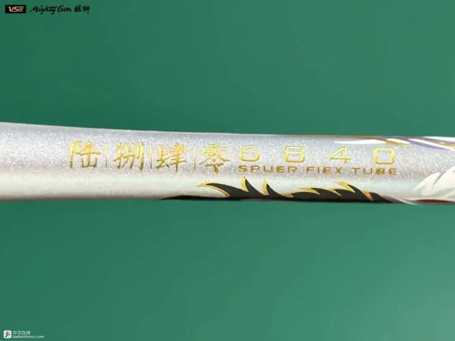 银醒狮采用的是威臣拿手的6840薄壁中管。所谓“6840中管”,是指中管外径为6.8mm,内径为4mm,管壁的厚度约为1.4mm,比传统的7032中管薄25%,具备更快的回弹速度。