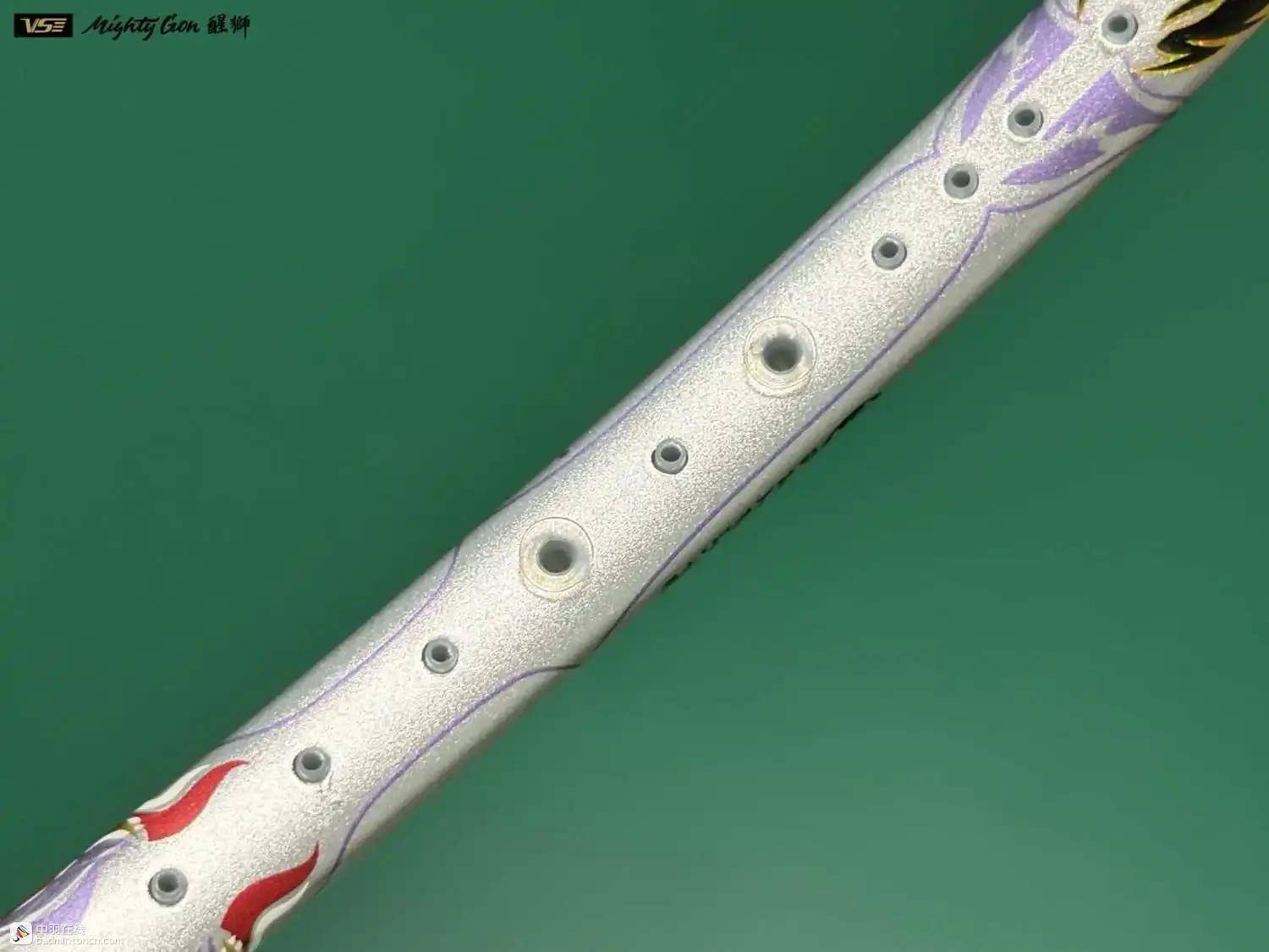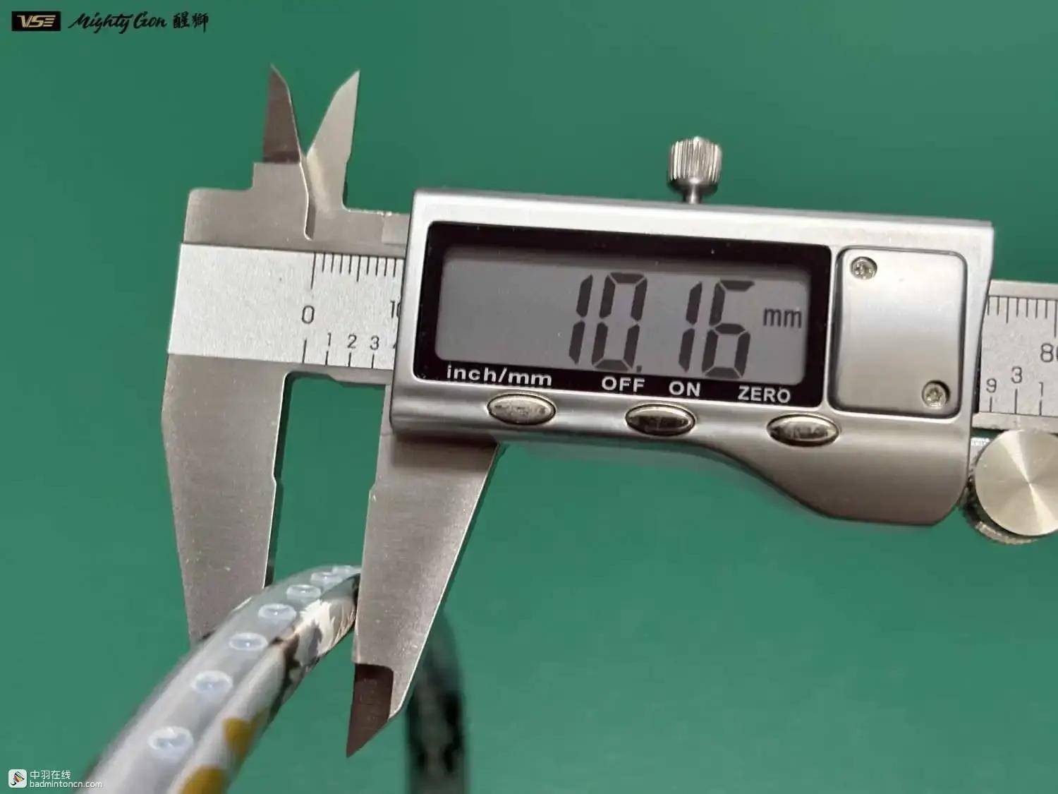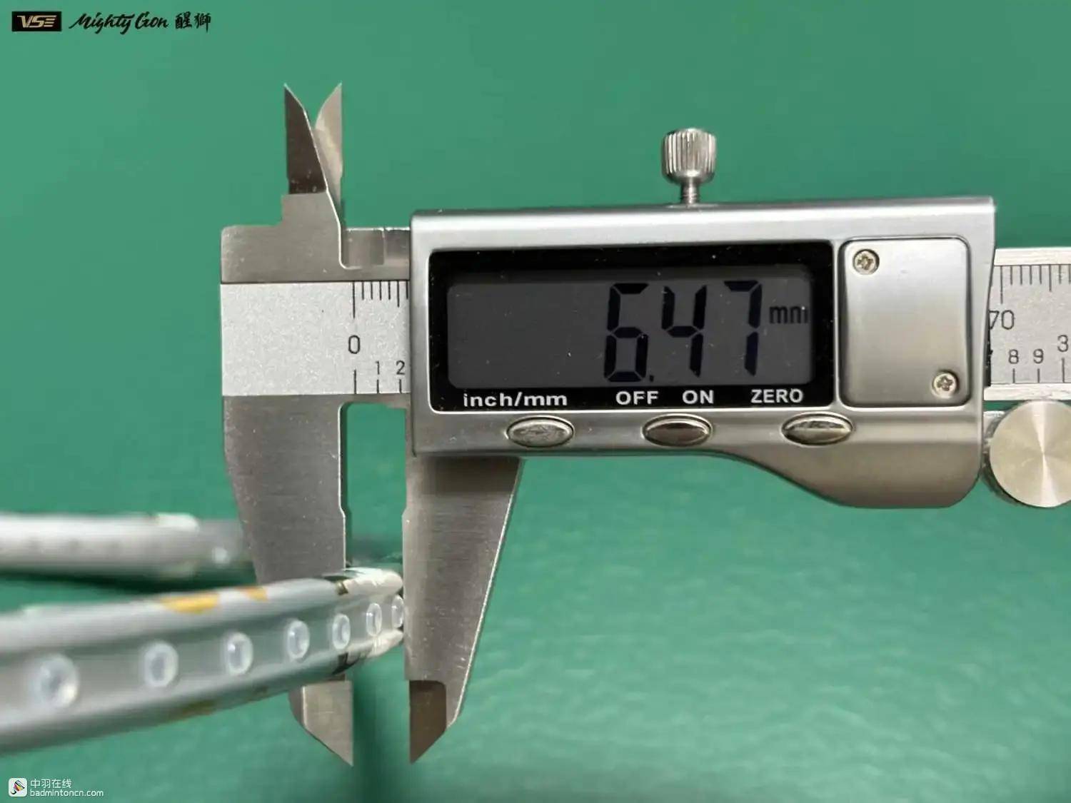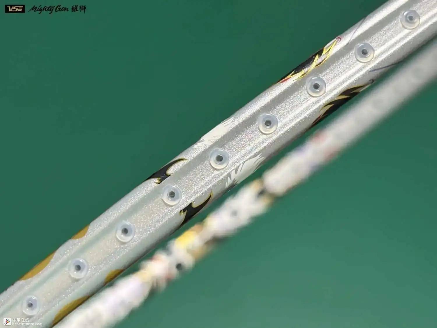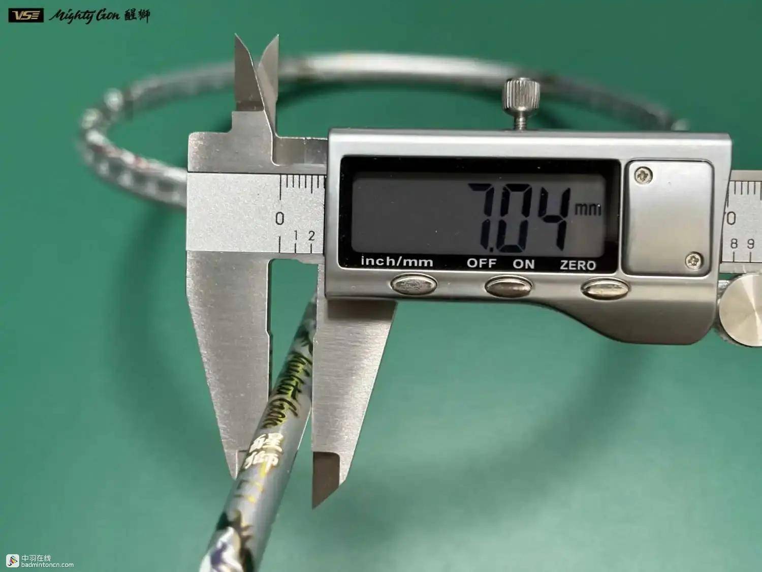 银醒狮采用的是威臣拿手的6840薄壁中管。所谓“6840中管”,是指中管外径为6.8mm,内径为4mm,管壁的厚度约为1.4mm,比传统的7032中管薄25%,具备更快的回弹速度。