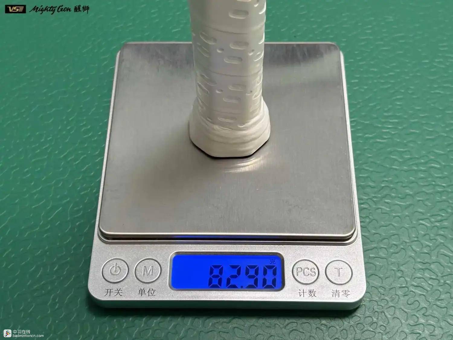 上线(李宁N65线,26磅)和手胶(缓震膜+李宁GP1000手胶)之后,总重约为87.27g,平衡点则约为307mm。