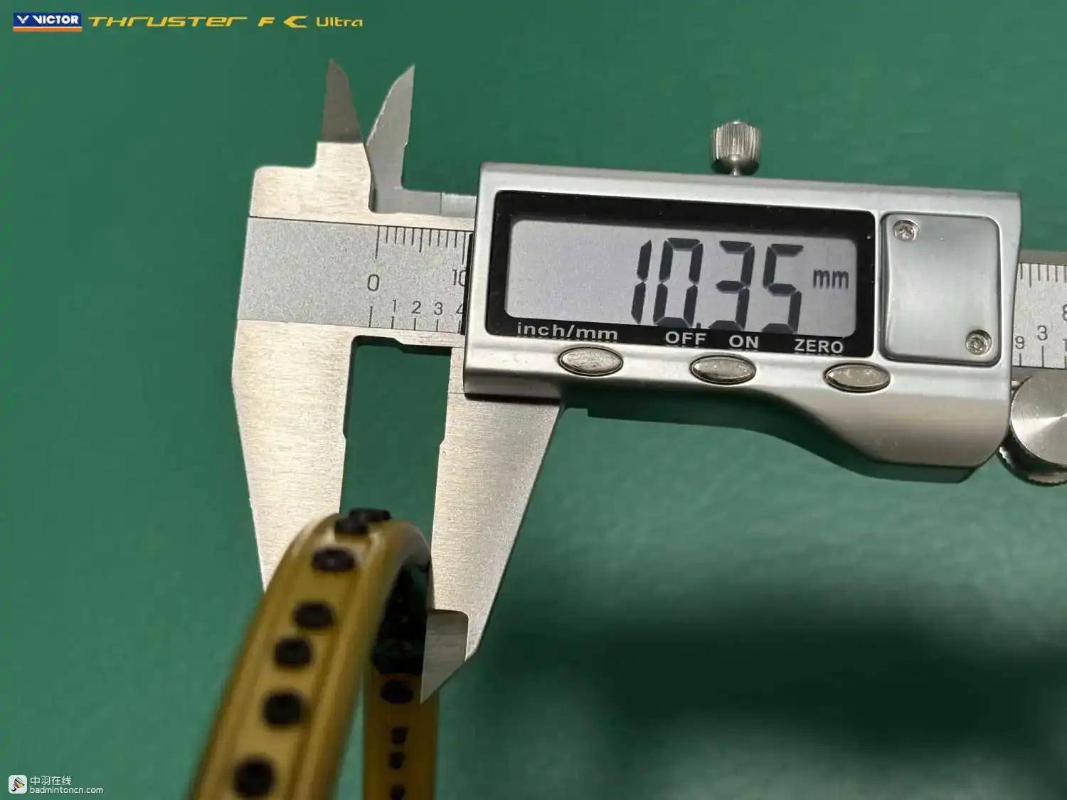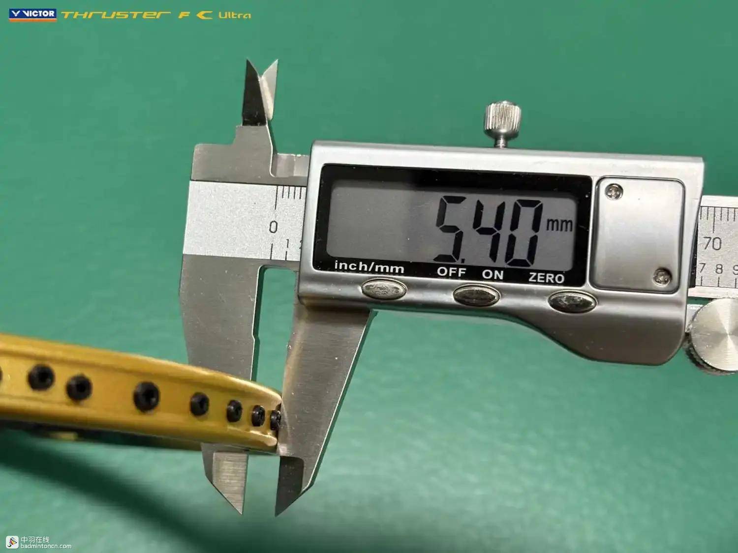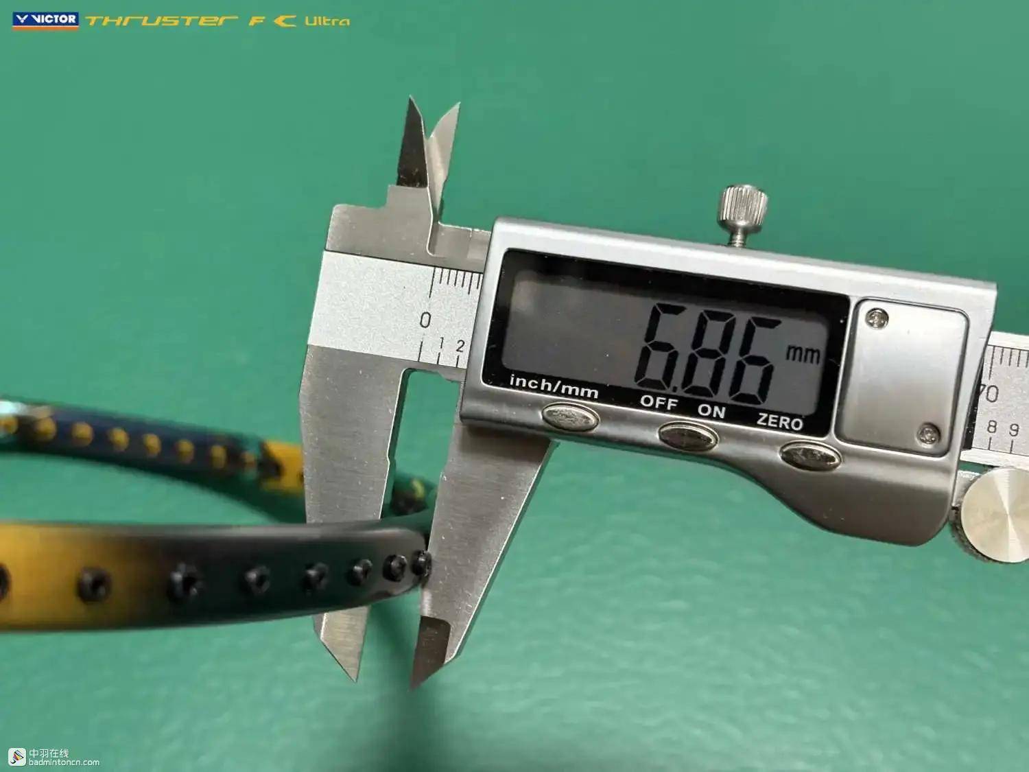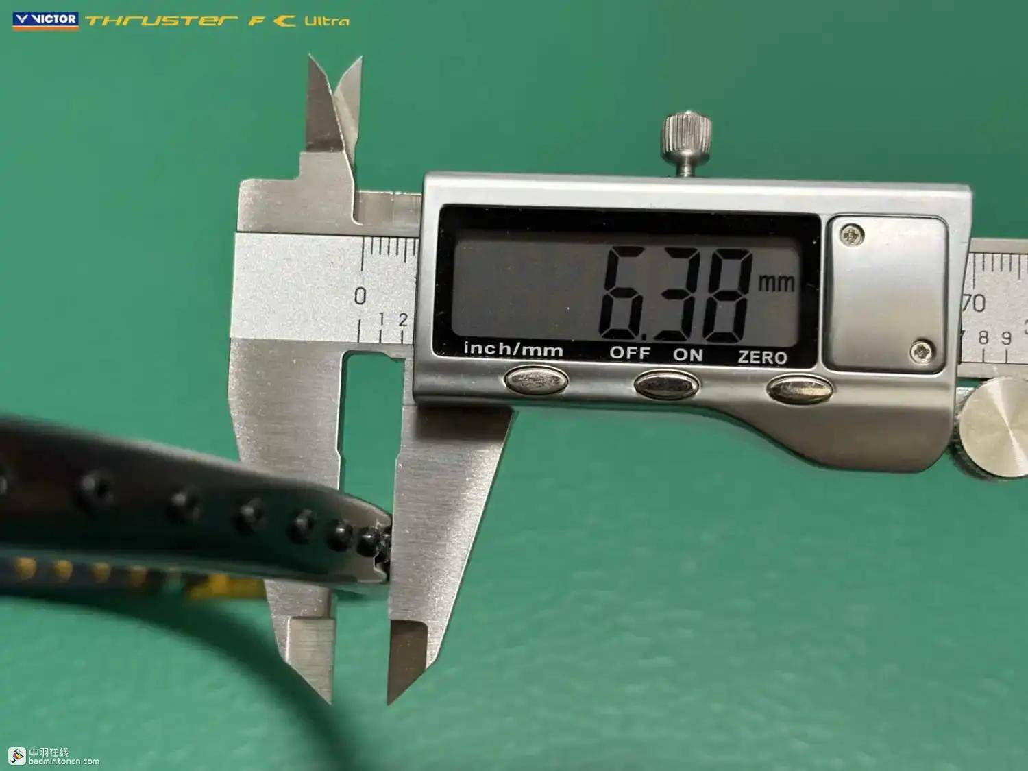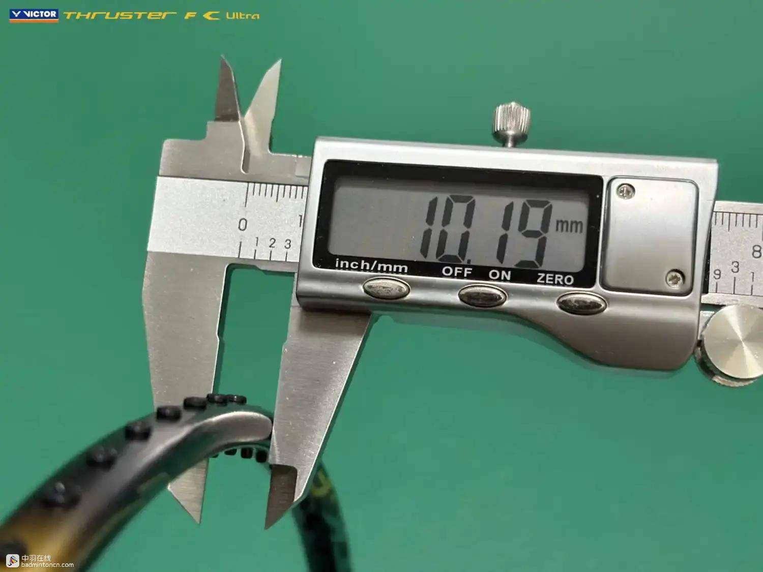 实测下,TK-F C Ultra拍框底部(靠近T头处)宽度实测约为9.98mm,厚度约为7.16mm。