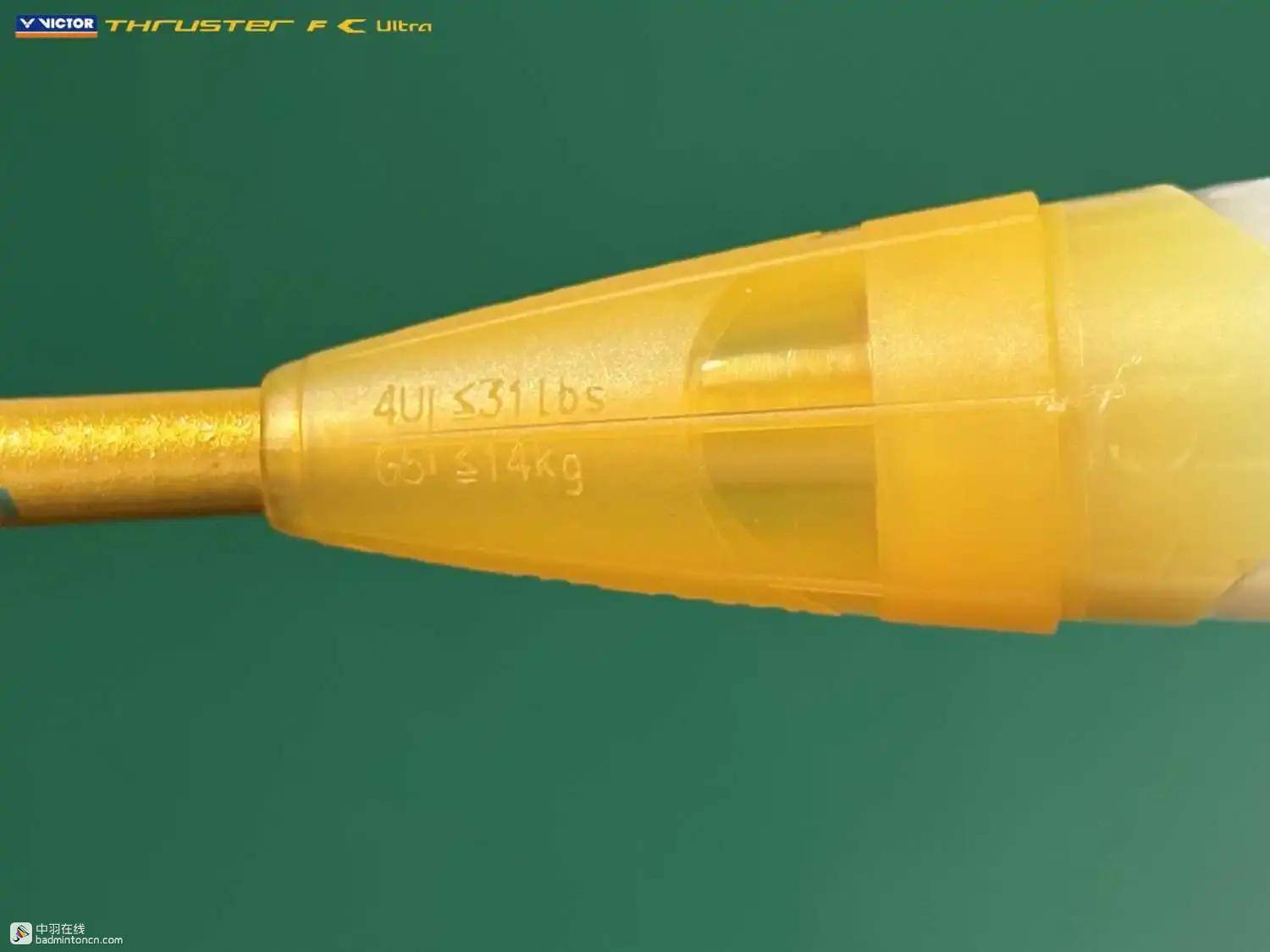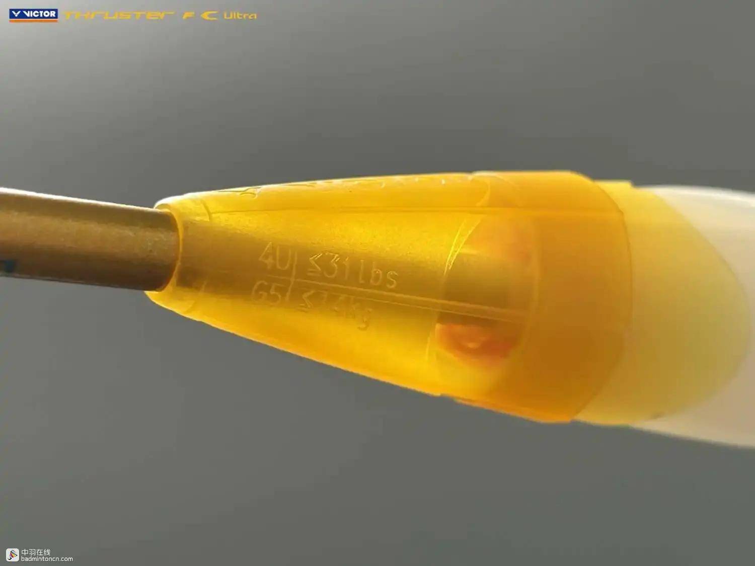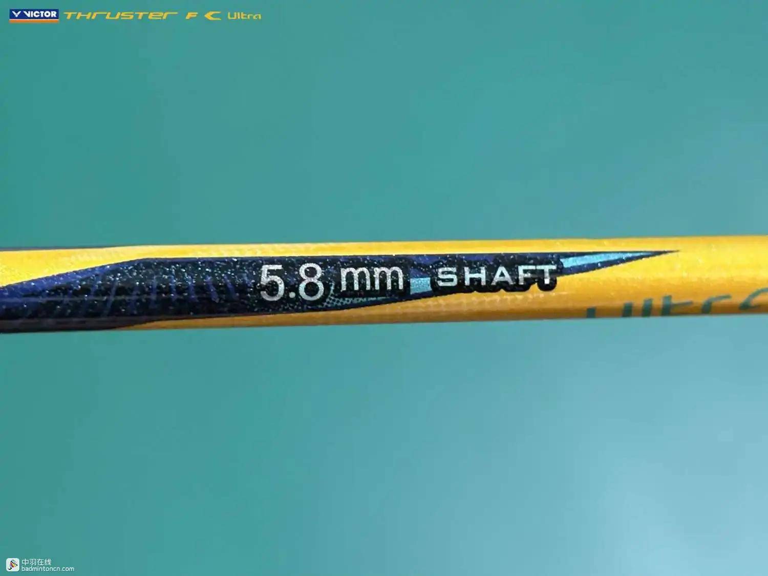3U、4U、5U规格TK-F C Ultra的中杆外径分别被设置为6.0mm、5.8mm、5.6mm。其中5U的5.6mm中杆是首次在威克多球拍中出现,而4U所采用的5.8mm中杆则是继TK-F 隼 Ultra、ARS-100X Ultra和ARS-LJH香蕉黄之后第四款运用该尺寸外径中杆的威克多球拍。实测下,笔者手中的这支4U中杆外径约为6.10mm(测量点位于中杆中点处)。