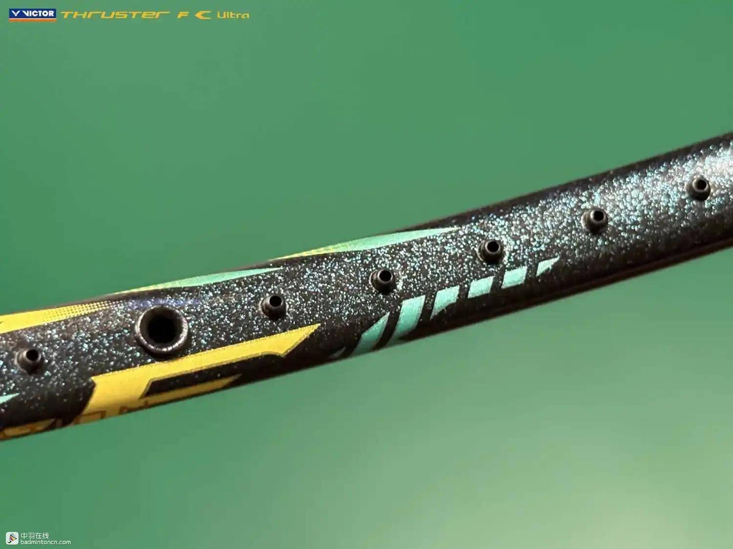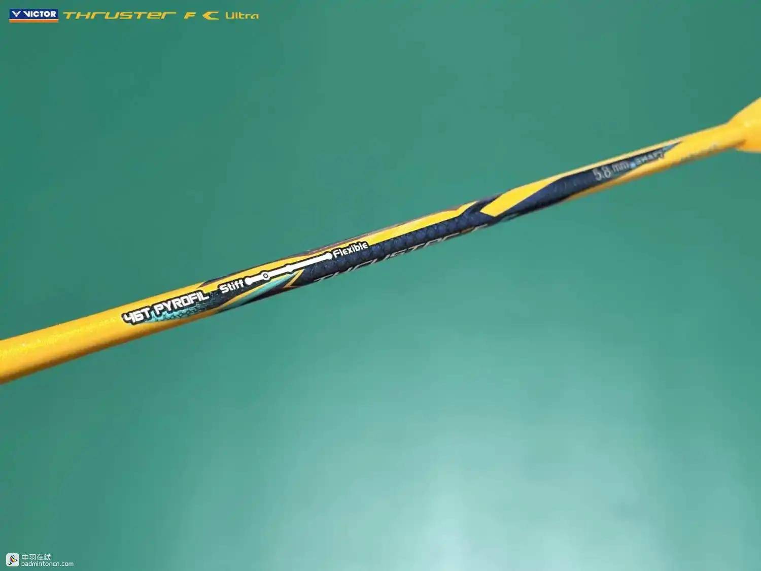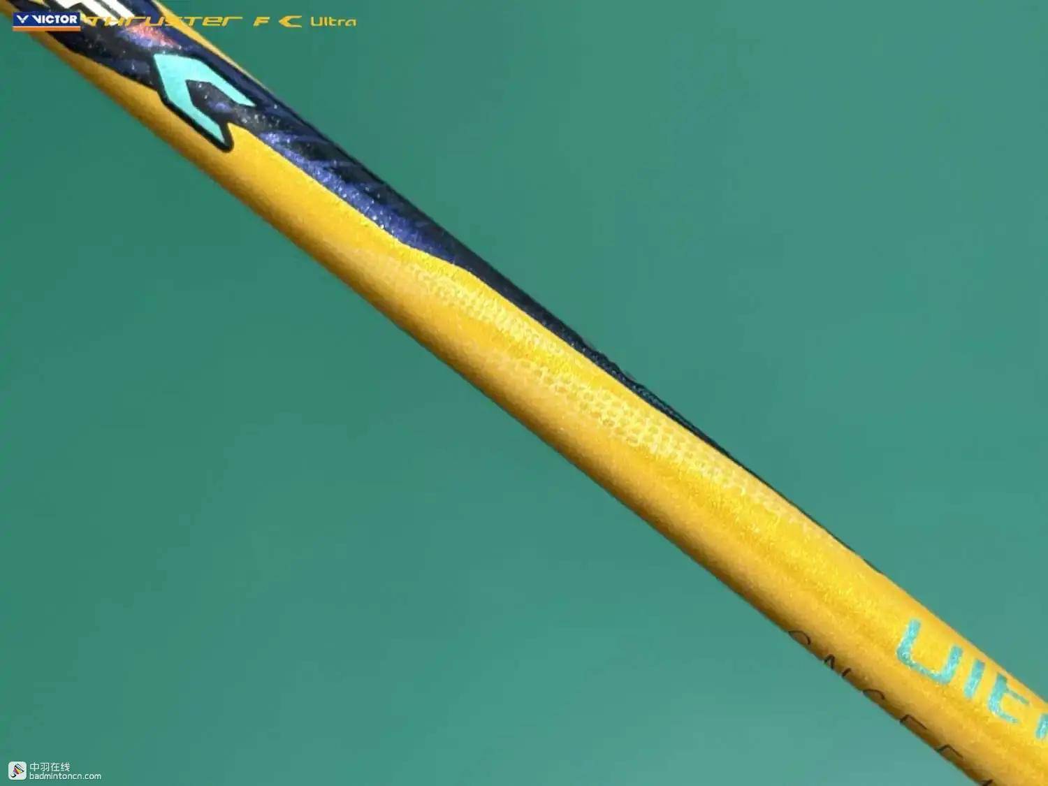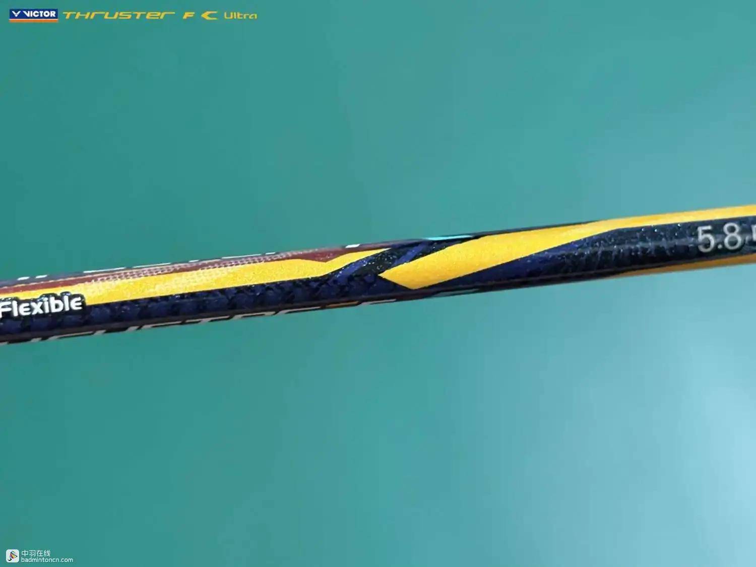 3U、4U、5U规格TK-F C Ultra的中杆外径分别被设置为6.0mm、5.8mm、5.6mm。其中5U的5.6mm中杆是首次在威克多球拍中出现,而4U所采用的5.8mm中杆则是继TK-F 隼 Ultra、ARS-100X Ultra和ARS-LJH香蕉黄之后第四款运用该尺寸外径中杆的威克多球拍。实测下,笔者手中的这支4U中杆外径约为6.10mm(测量点位于中杆中点处)。