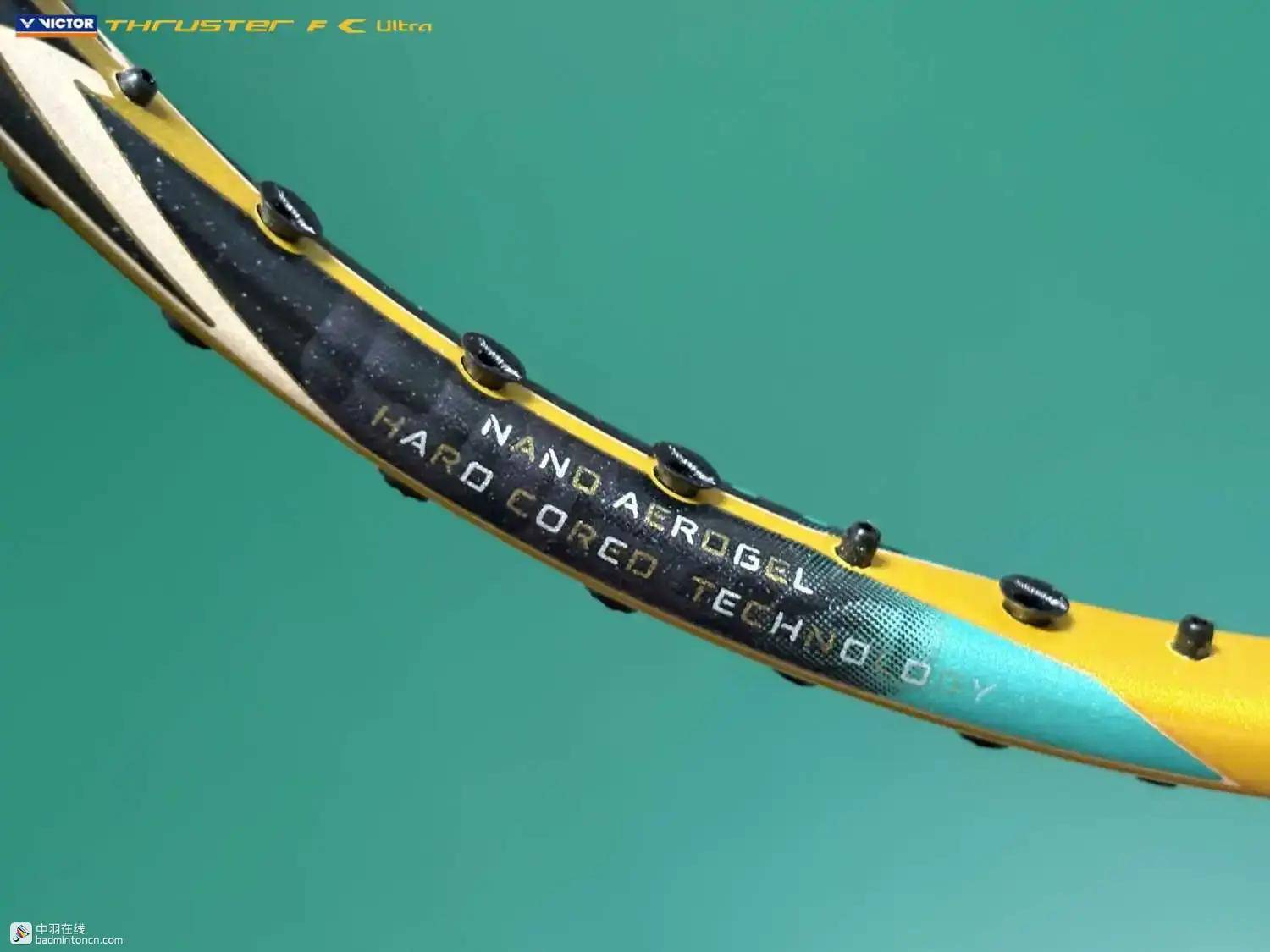 TK-F C Ultra全拍均以高强韧碳纤维加上46T百洛碳素纤维(PYROFIL)打造,拍框搭载TR增韧纳米碳管(NANO FORTIFY TR)及强芯填充科技(HARD CORED TECHNOLOGY),同时在拍框内导入纳米气凝胶(NANO AEROGEL)代替传统内发泡材料,更轻的重量让球拍配重空间得到释放,因此能够提升碳纤维的用量,以提升拍框的强度,带来更为扎实的手感。
