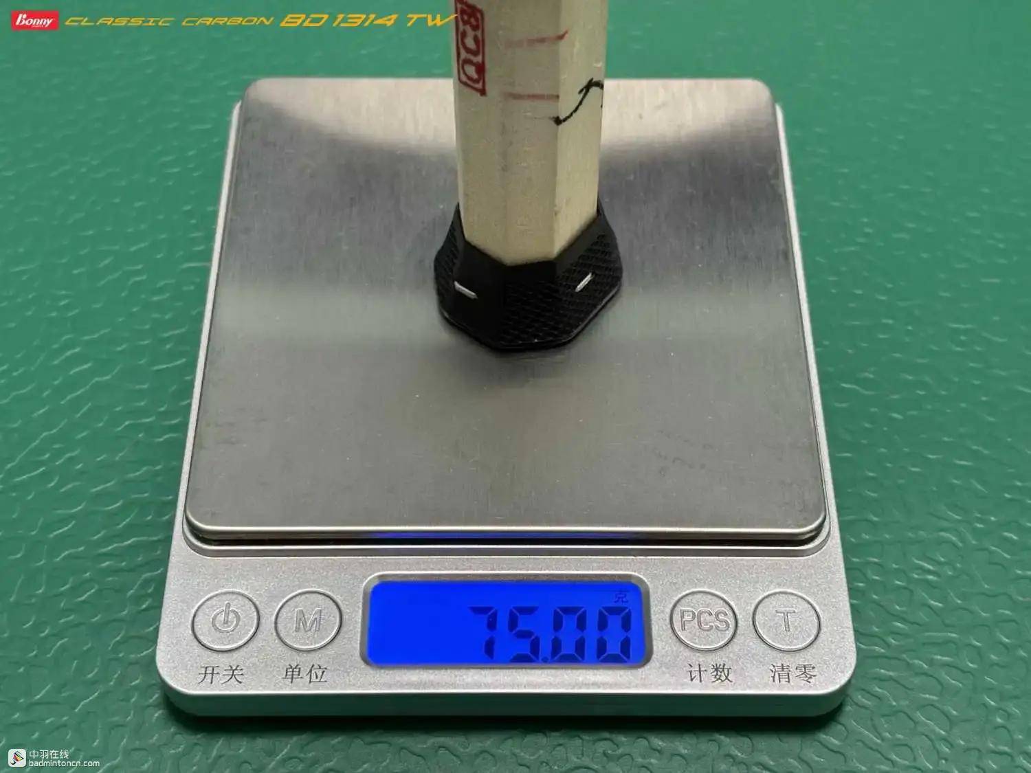 空拍去底胶后,重约75.00g,平衡点约为320mm。
