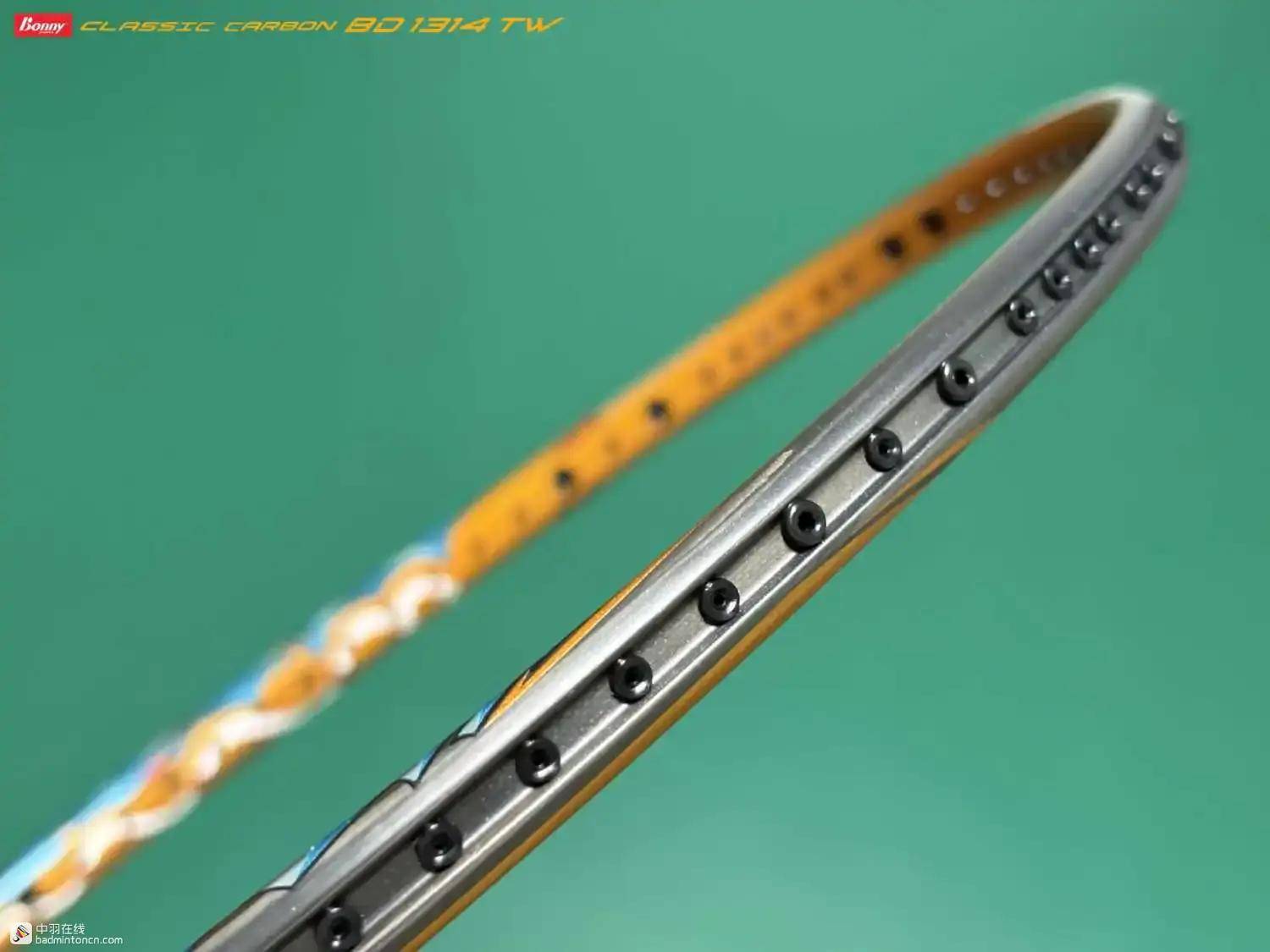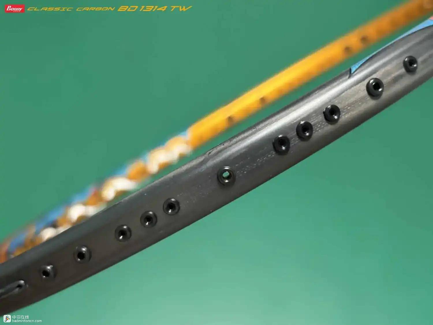 乌缺虎翼采用中边小平头拍框,搭配80孔穿线模式,在维持较大甜区的同时又保证了较高的网压。而乌缺虎翼的建议穿线磅数为最高30磅。