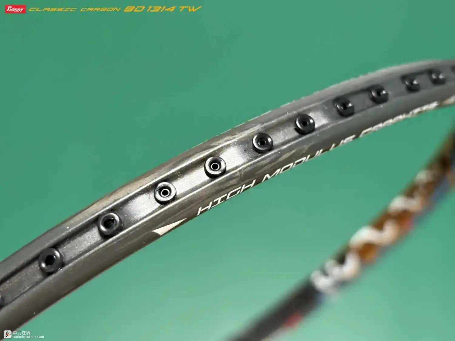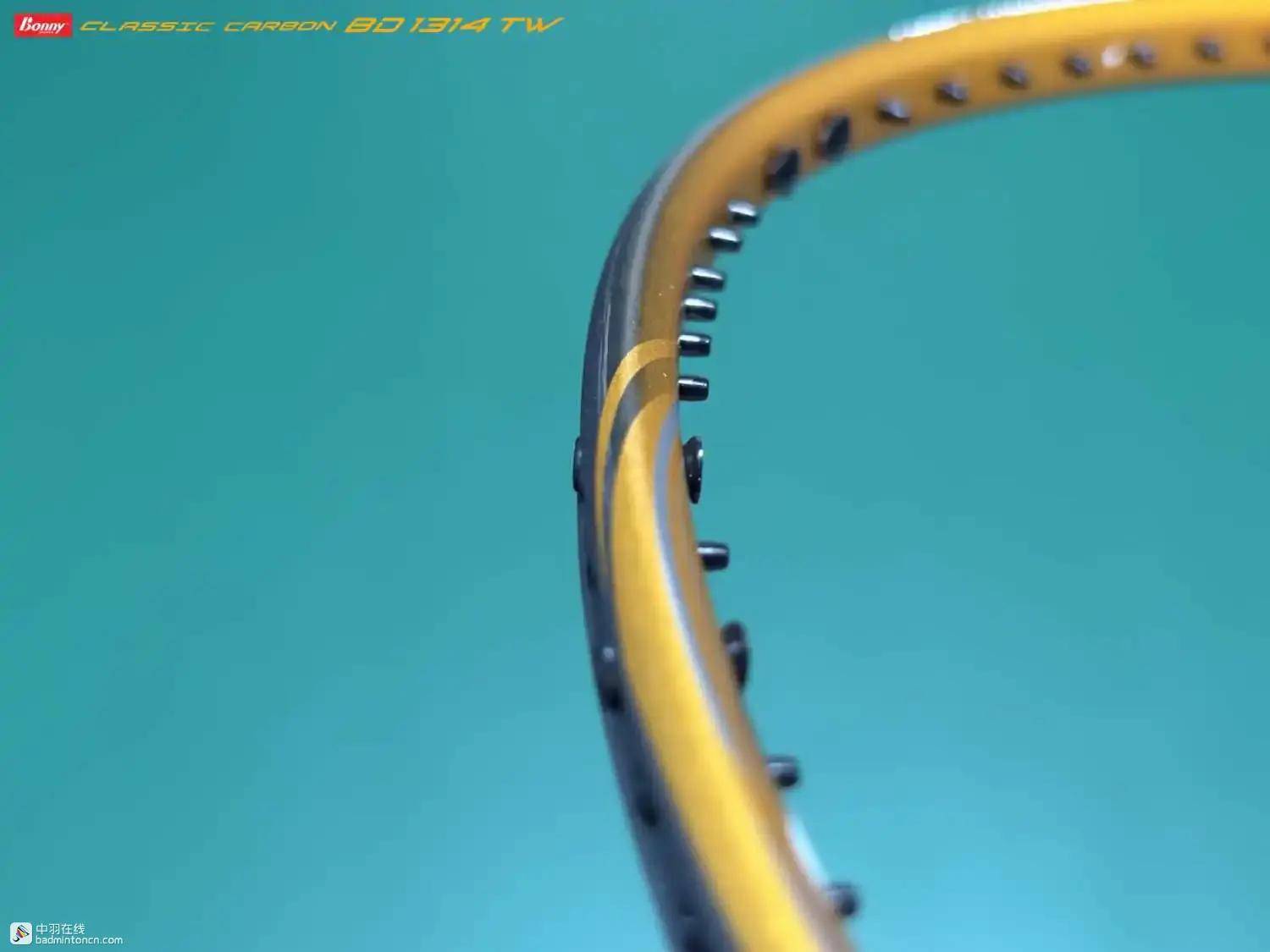 拍框外侧采用了长线槽的设计,线槽起始位置在侧面3点、9点略偏下的位置,比一般的半线槽设计要更长。