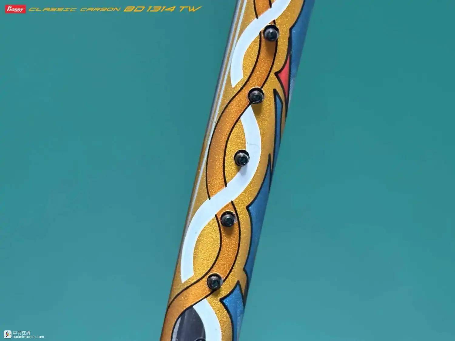 乌缺虎翼的拍框涂装颇有意思,采用的是两面不同色的设计,一面以金色为主,搭配白色。
