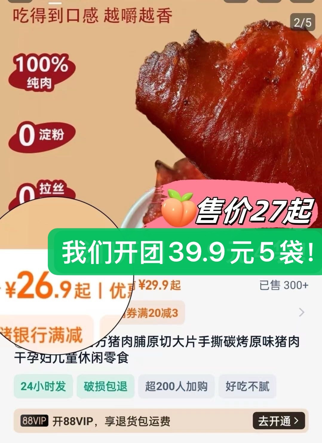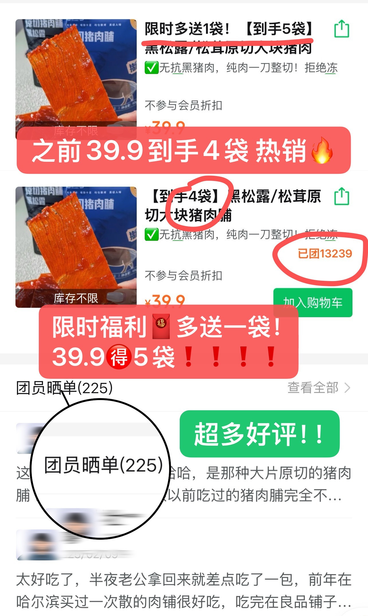 【黑松露/松茸原切猪肉脯】山姆同款在售!一袋就要💰19.9小贵!!价格我到工厂帮大家砍下来了🥬👉🏻线下价格就比不了咱家团购价了🎊🎊🎊❌差不多的品质,某线上平台一袋💰27元起了✅我们团购价相当优惠~只需💰39.9元就能到手4袋限时双十一多活动还多送一袋,39.9直接到手5袋💰平均一袋不到💰8元,划算到爆炸!活动随时关停!先到先得!