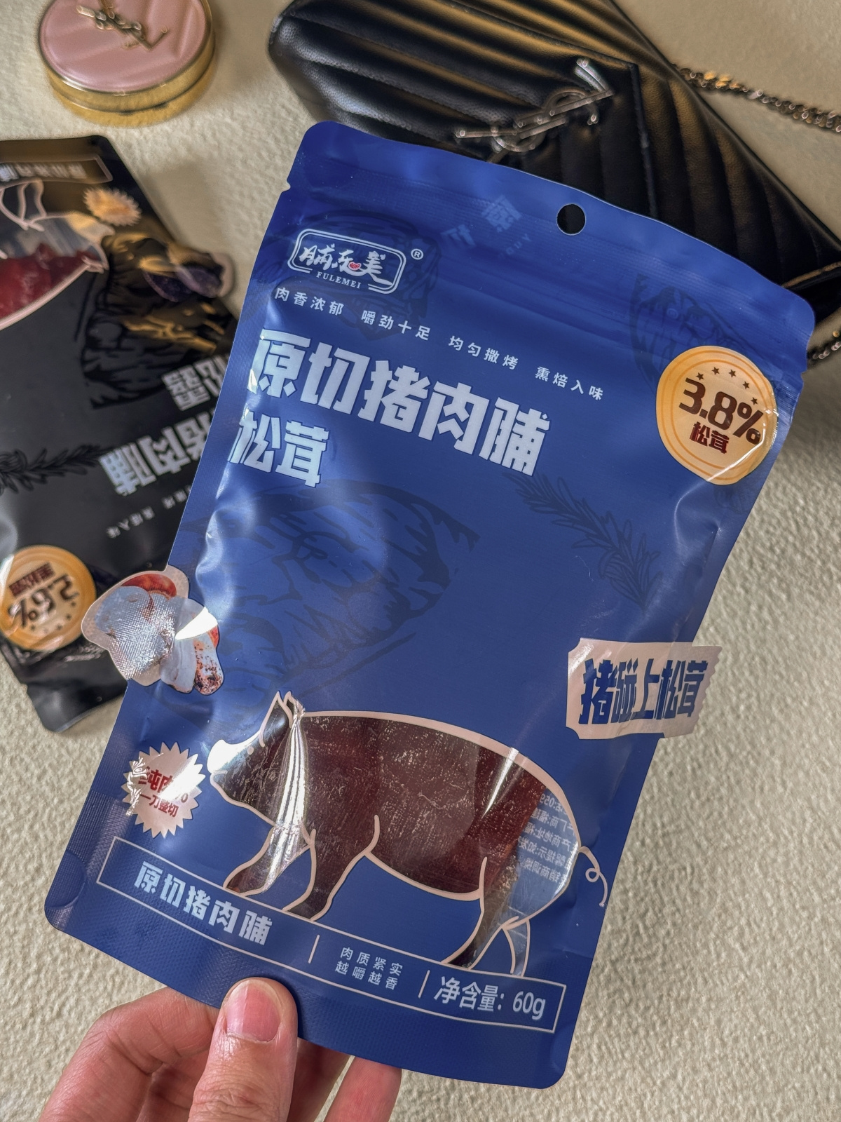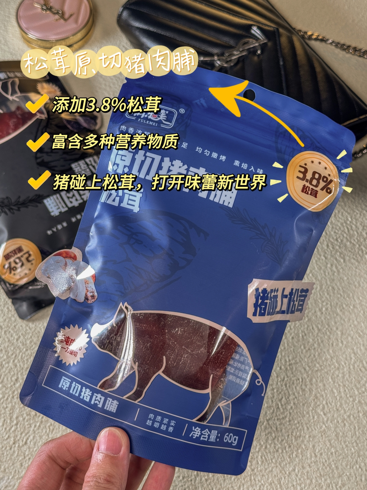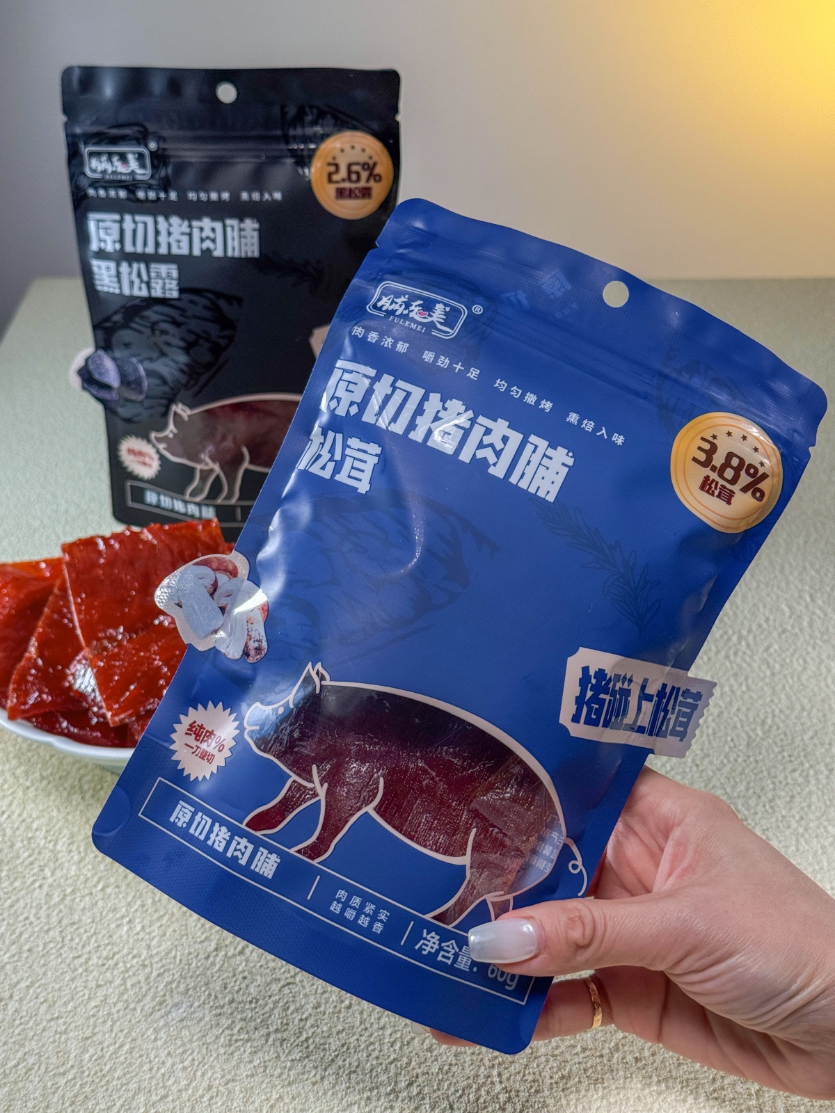 【品牌】脯乐美【产品名称】黑松露/松茸原切猪肉脯