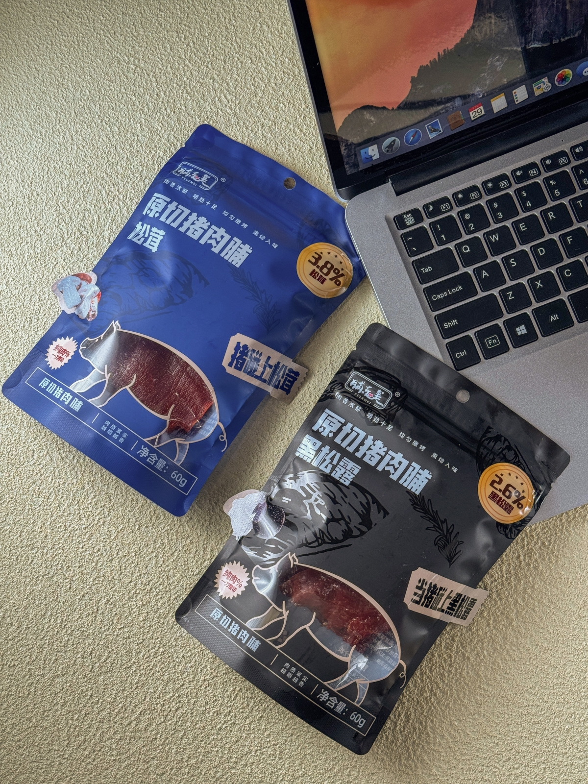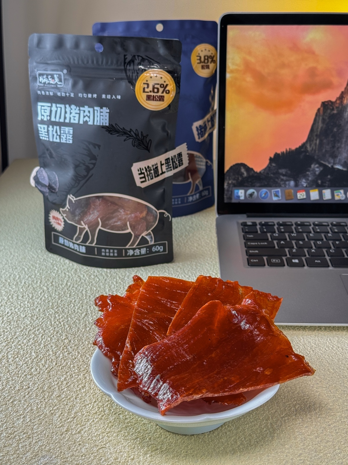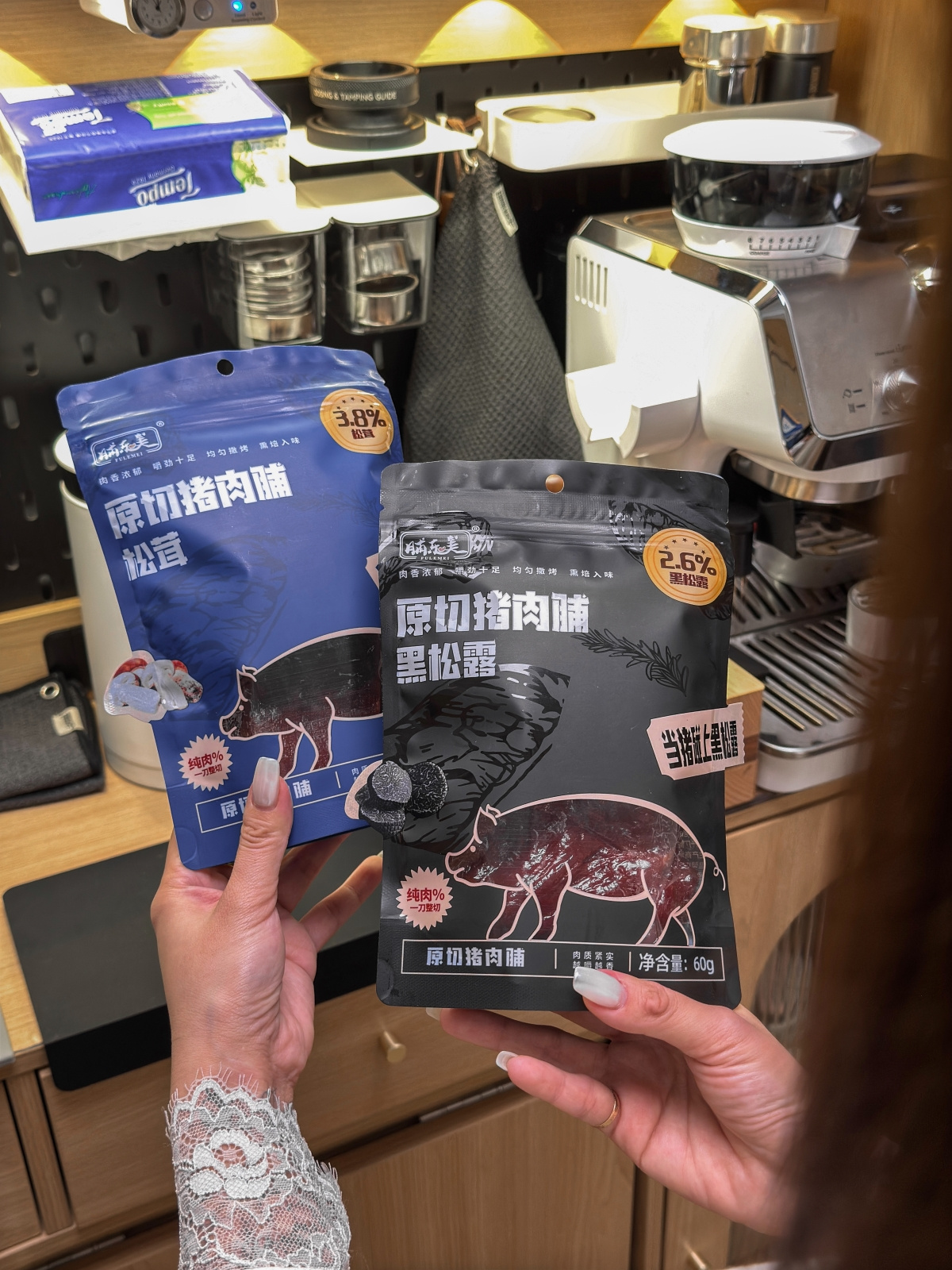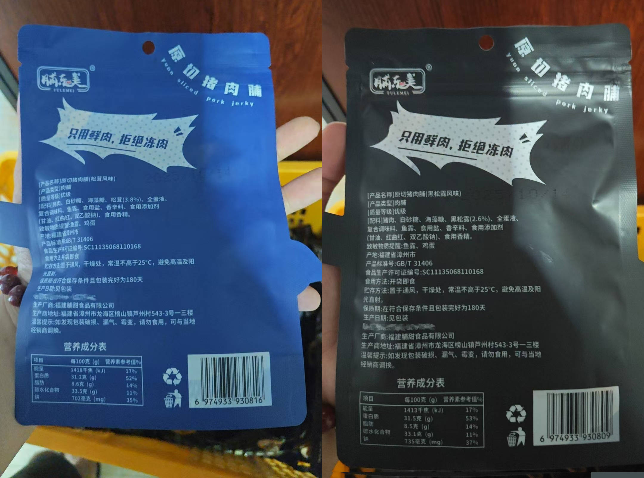 【品牌】脯乐美【产品名称】黑松露/松茸原切猪肉脯