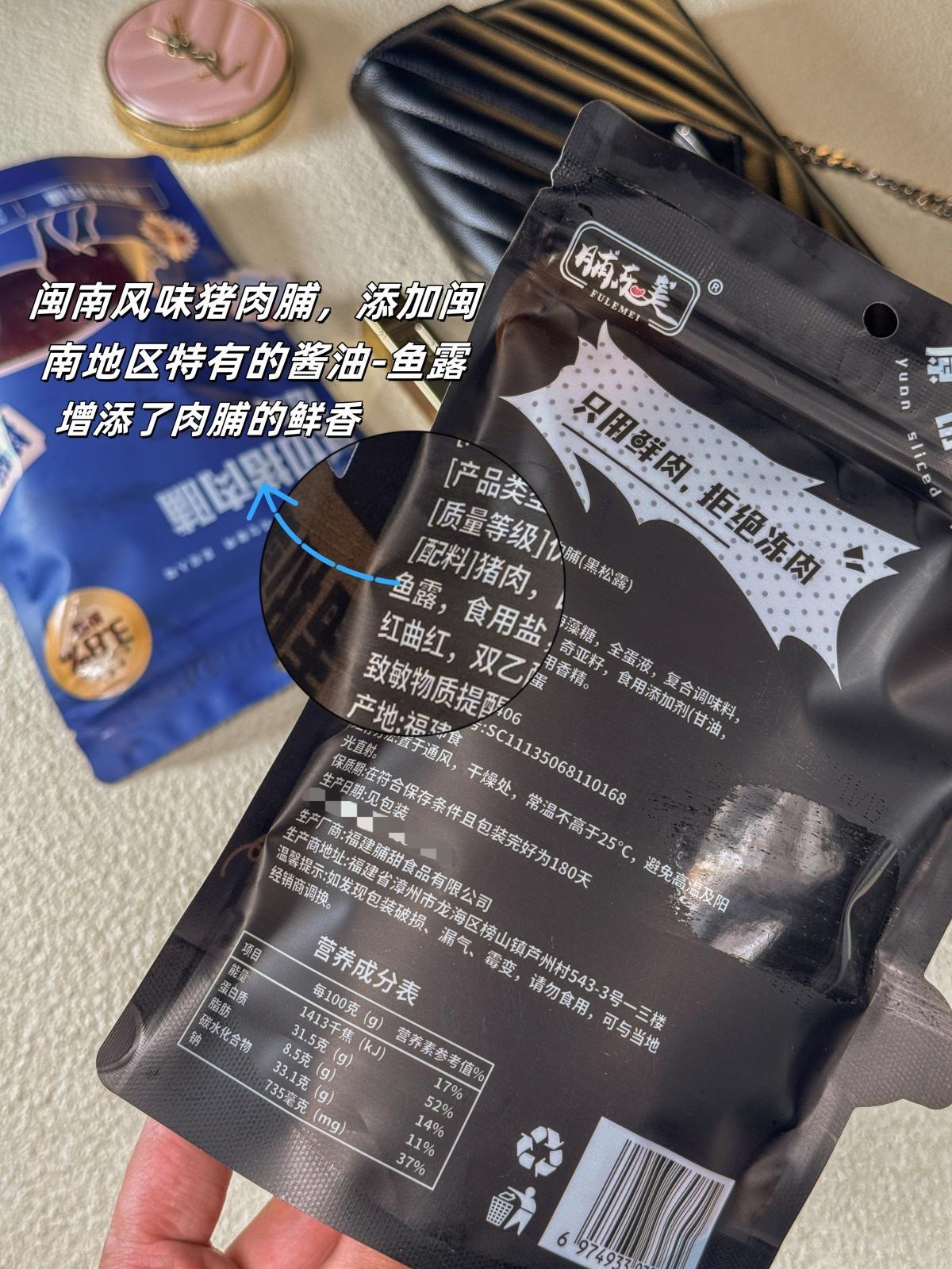 这款原切猪肉脯,就是地地道道的闽南风味。👏精选肉质紧实的猪后腿肉,被切成厚度约2毫米的肉片👏👏再加入沿海地区特有的酱油——鱼露,以及白砂糖调味。鱼露增添了肉的鲜香它能够中和肉类的腥味,使肉脯更加美味可口鱼露中的酶类物质能够促进蛋白质分解使猪肉🥩肉脯的质地更加柔软多汁。同时白砂糖🍬令肉的咸味变柔和,带来一丝独特的甜味。Tips:鱼露,是广东、福建地区常用的调味汁用小鱼虾🦐为原料发酵后得到,色泽呈琥珀色,带有咸味和鲜味。
