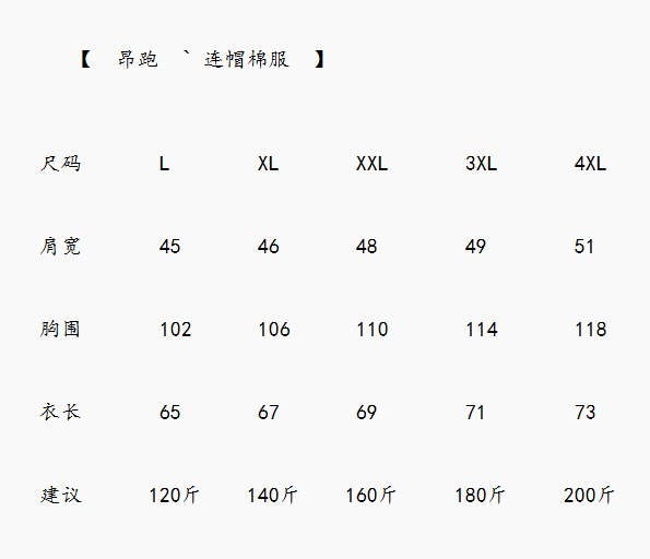 L(100-120斤)XL(120-140斤)2XL(140-160斤)3XL(160-180斤)4XL(180-200斤)推荐尺码仅供参考,请根据个人穿衣习惯,自由选择!